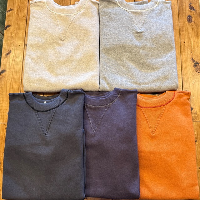 WAREHOUSE ウエアハウス 「"Lot 403 C.G."」 20年以上仕様を変更していない定番の吊り編みスウェットです。二本ステッチの間から粗めのロック糸が見える仕様はヴィンテージでしか見られないディテールですが、ミシンを改良することで実現させました。かつてコットンフリースラインドと呼ばれた裏起毛も、筒状のまま起毛をかけて再現しています。 スミクロ、ダークネイビーはムララバープリント ダークオレンジ、杢グレーは染み込みプリント LOT:403 C.G. 素材:COTTON 100% カラー:スミクロ、ダークネイビー、ダークオレンジ、杢グレー プライス:¥19,800 サイズ:38(S),40(M),42(L),44(XL) SIZE:38 肩幅43.5cm 身幅53cm 着丈61.5cm 袖丈58.5cm SIZE:40 肩幅47cm 身幅56.5cm 着丈62.5cm 袖丈60.5cm SIZE:42 肩幅48cm 身幅58.5cm 着丈64.5cm 袖丈61.5cm SIZE:44 肩幅52.5cm 身幅62cm 着丈65cm 袖丈62.5cm *多少の誤差はご了承ください。 *洗いにより縮みが生じます