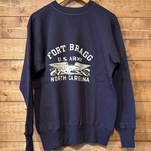 WAREHOUSE ウエアハウス 「"Lot 403 FORT BRAGG"」 20年以上仕様を変更していない定番の吊り編みスウェットです。二本ステッチの間から粗めのロック糸が見える仕様はヴィンテージでしか見られないディテールですが、ミシンを改良することで実現させました。かつてコットンフリースラインドと呼ばれた裏起毛も、筒状のまま起毛をかけて再現しています。 フロッキープリント LOT:403 FORT BRAGG 素材:COTTON 100% カラー:ダークネイビー プライス:¥20,900 サイズ:40(M),42(L),44(XL) SIZE:40 肩幅47.5cm 身幅55.5cm 着丈62cm 袖丈58cm SIZE:42 肩幅48cm 身幅57cm 着丈64.5cm 袖丈60cm SIZE:44 肩幅51cm 身幅62cm 着丈64.5cm 袖丈61cm *多少の誤差はご了承ください