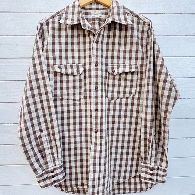 WAREHOUSE ウエアハウス 「"Lot 3052 LONG HORN TYPE FLANNEL WESTERN SHIRTS" O/W」 元ネタはアーキュエートステッチで有名なブランド。 ウエスタンシャツデザインでボタンホール仕様、小ぶりで丸みのあるナットボタン。 マチ付き、裏起毛のネルチェック。 なかなか出会えないヴィンテージの再現ではないでしょうか。 オリジナルナットボタン LOT:3052 LONG HORN TYPE FLANNEL WESTERN SHIRTS O/W 素材:COTTON 100% (WASH) カラー:ブラウン、ブラック プライス:¥30,800 サイズ:36,38,40,42 <ONE-WASH計測> SIZE:36 肩幅41cm 身幅52.5cm 着丈72.5cm 袖丈59.5cm SIZE:38 肩幅43cm 身幅54.5cm 着丈74cm 袖丈60.5cm SIZE:40 肩幅45cm 身幅56.5cm 着丈76cm 袖丈62cm SIZE:42 肩幅46.5cm 身幅58.5cm 着丈78cm 袖丈64cm *多少の誤差はご了承ください