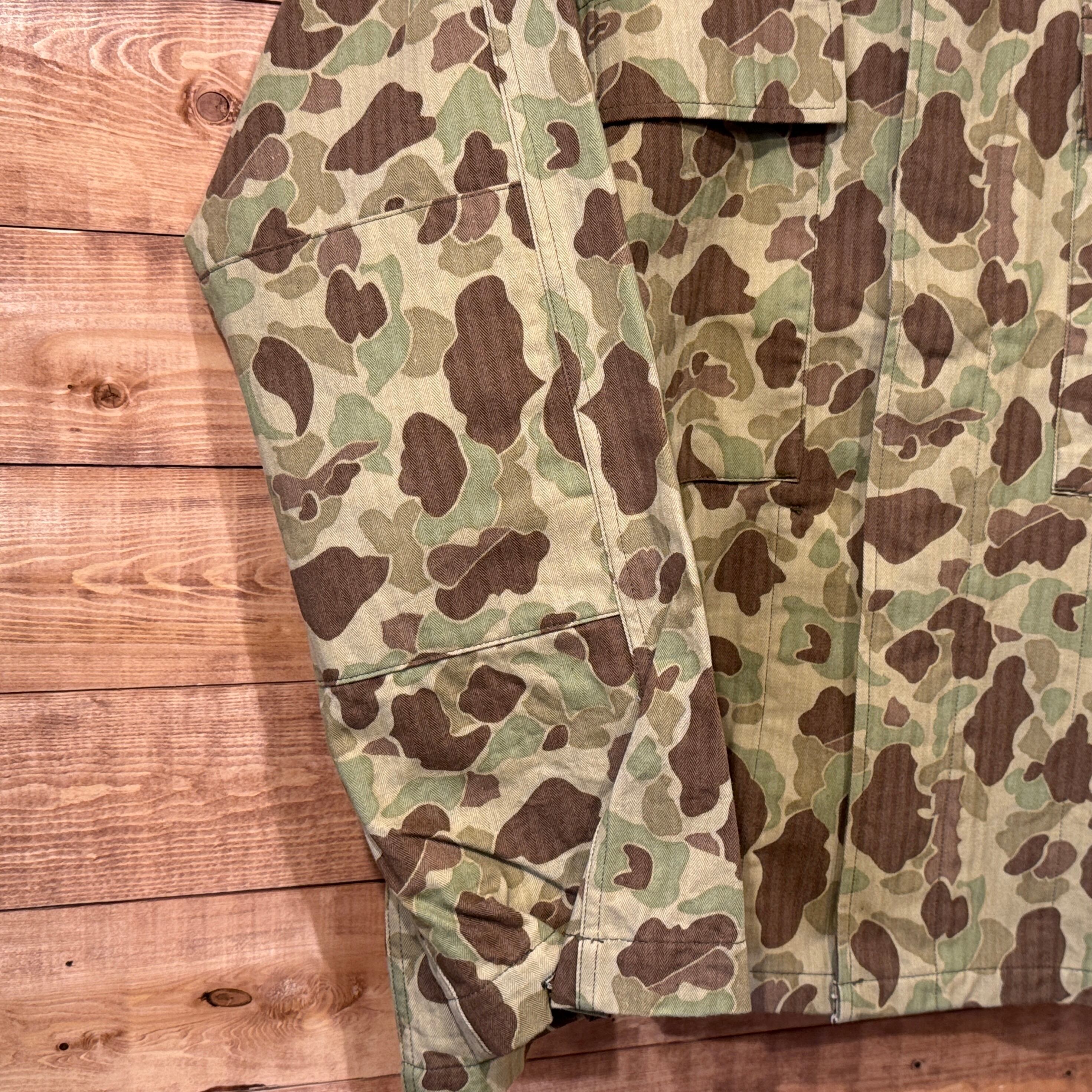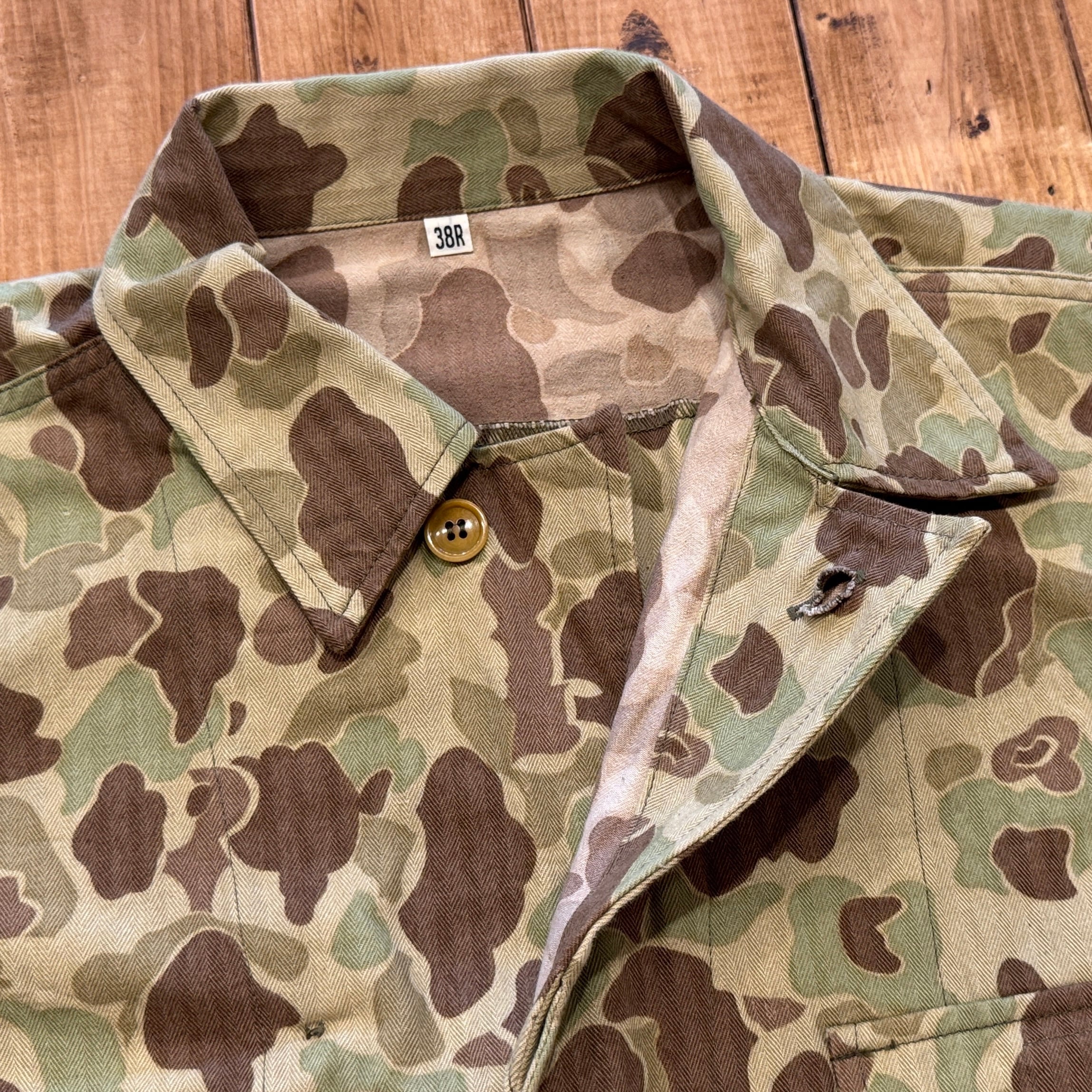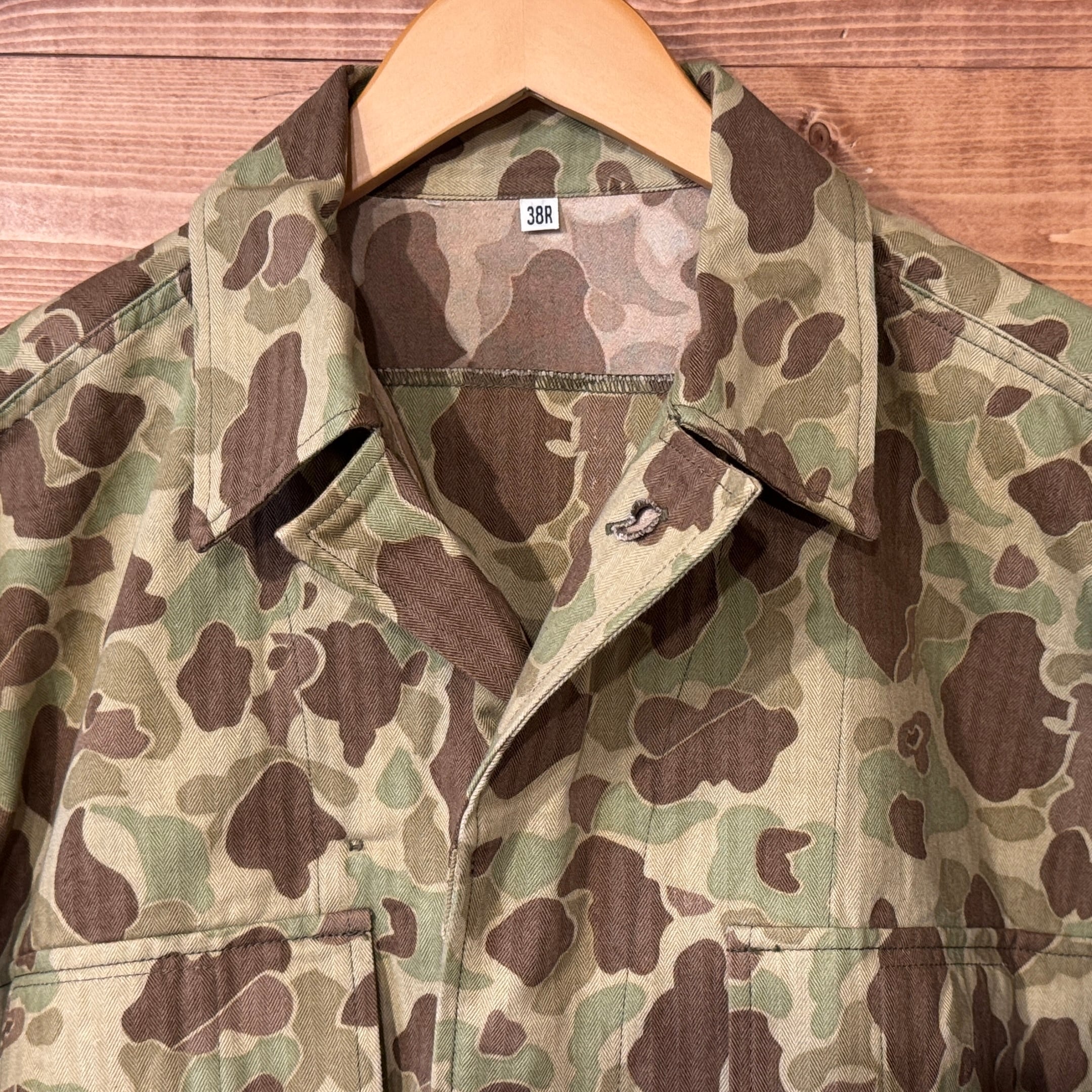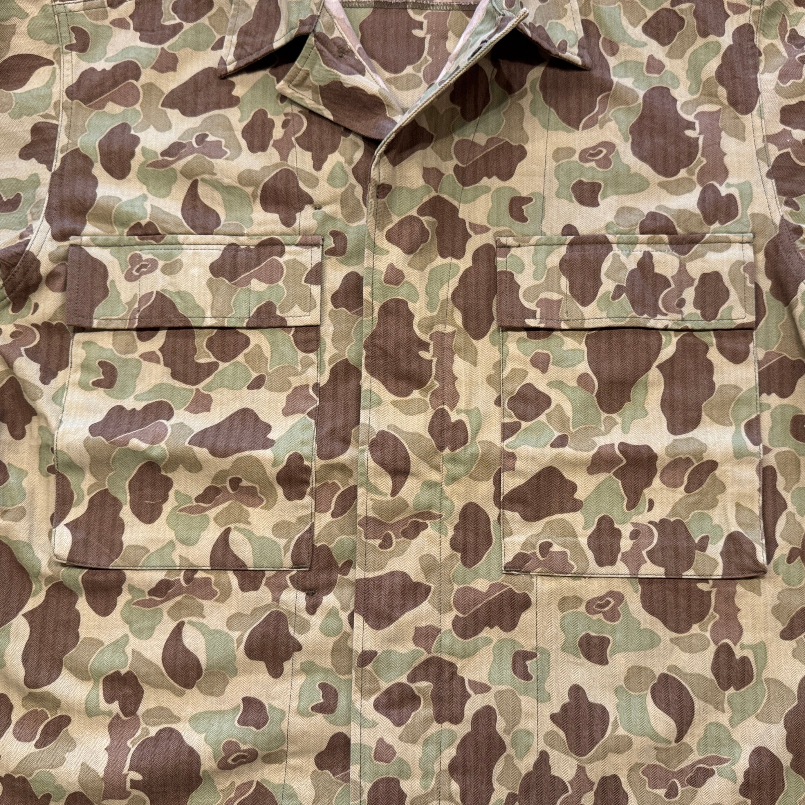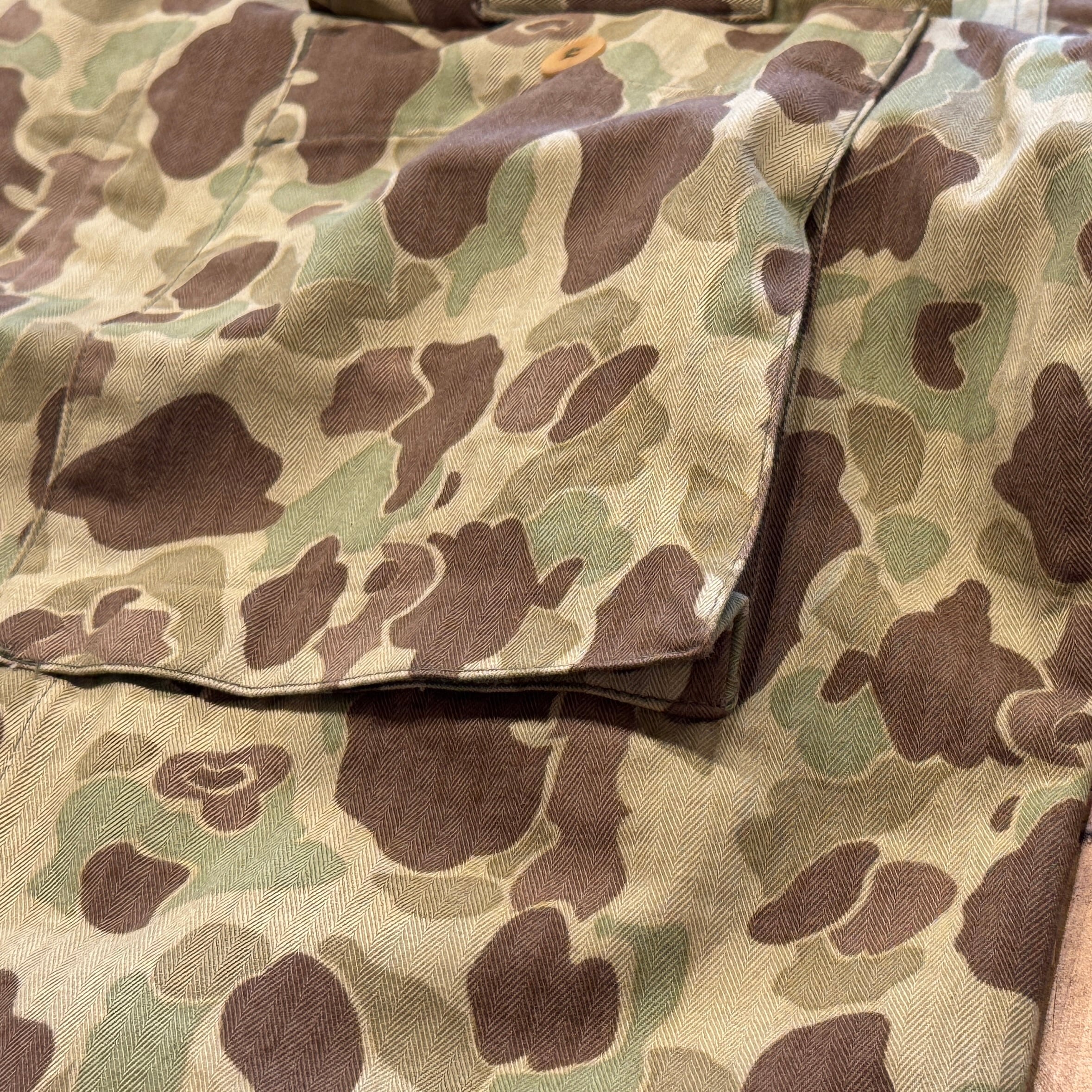 高密度が故に強度のあるヘリンボーンツイルは戦闘服や対ガス防護服に適していた。そのヘリンボーンツイルに迷彩効果を高めるため採用した米陸軍はカモフラージュ柄を1942年に採用した。その生地にはグリーンサイドとタンカラーサイドと両面にプリントしているが、リバーシブルで着用する仕様にはなっていない。胸には容量の大きい縦長のマチ付きポケットが付き、肘は補強として二重になっている。また、前立て裏には毒ガスを侵入させない防護として密閉性を高めるためのガスフラップが設けてある。いずれもグリーンサイドに設置され、タンカラーサイドはプレーンな状態である。型はこの頃採用されたオリーブドラブ色のM-43とほぼ同じ外観だが、装備品の引っ掛かりや地上を這うことを想定してボタンは隠しボタン仕様となっている。