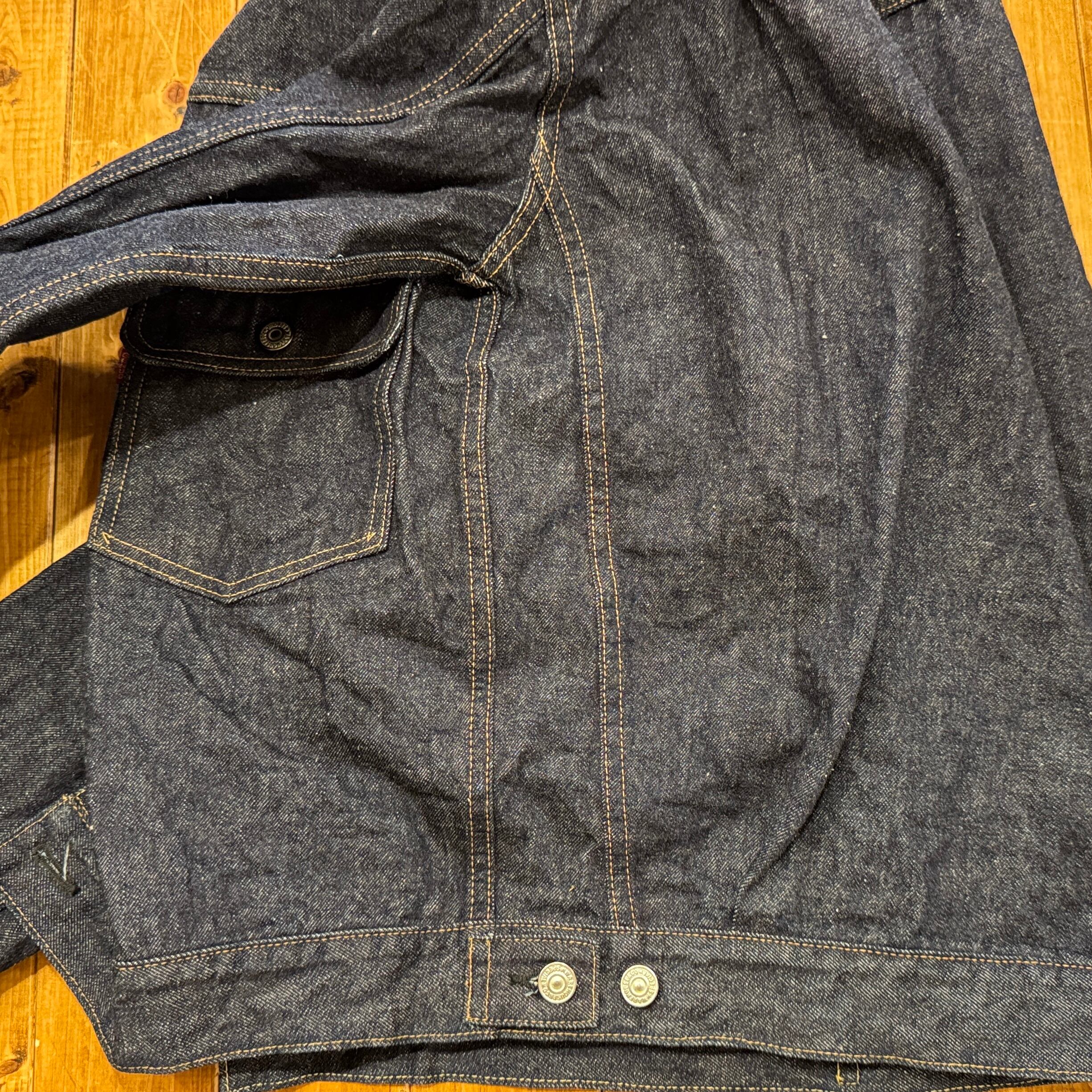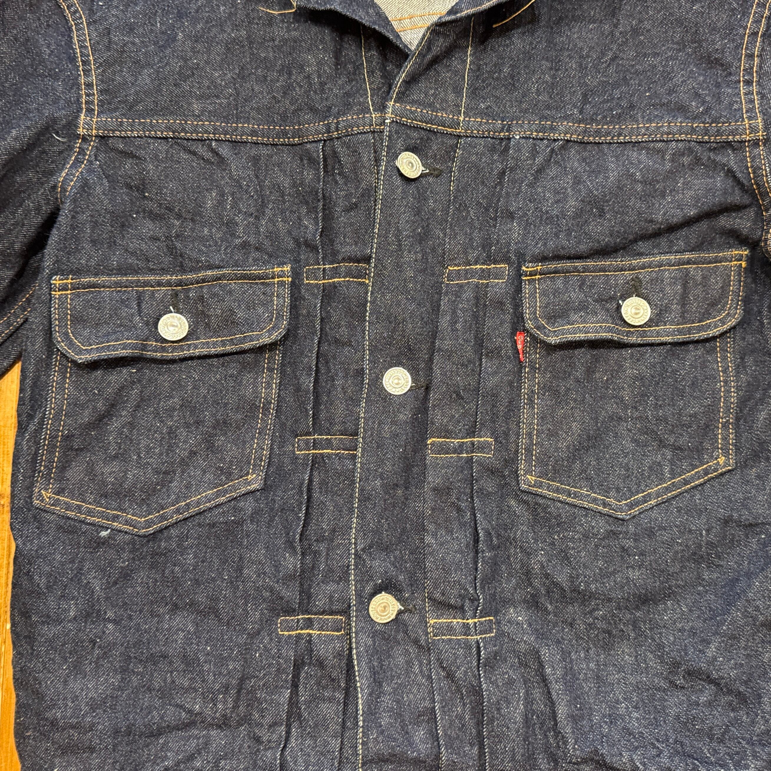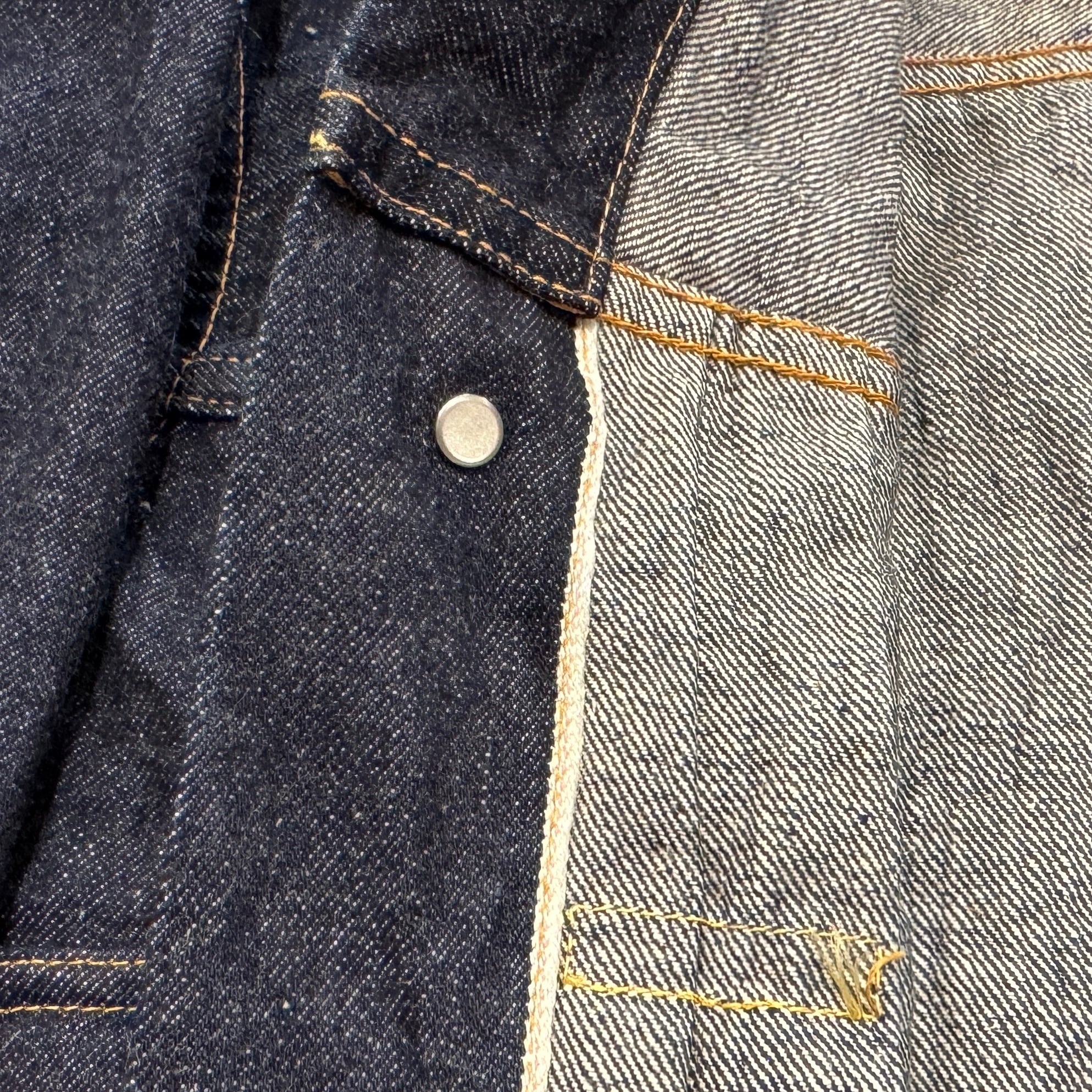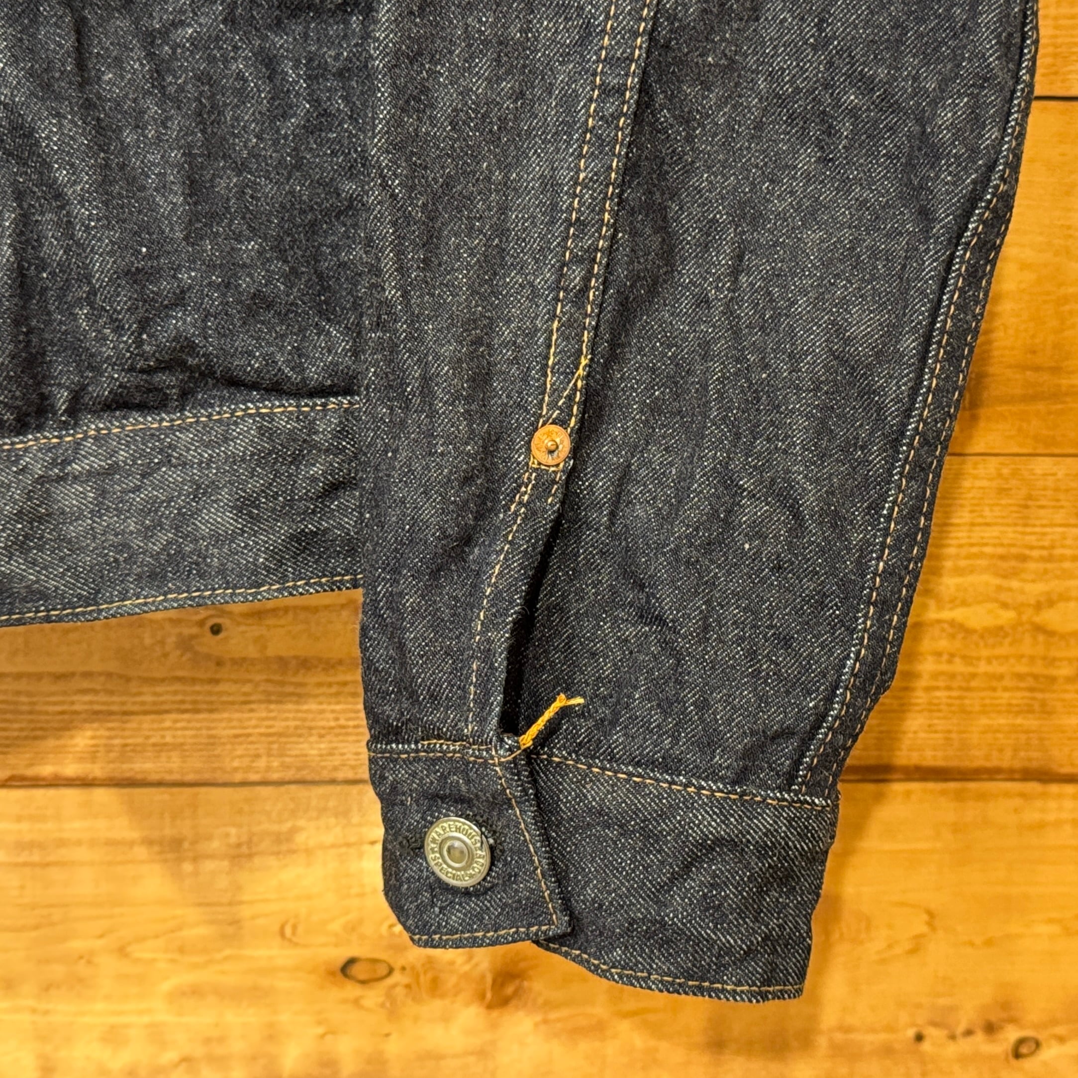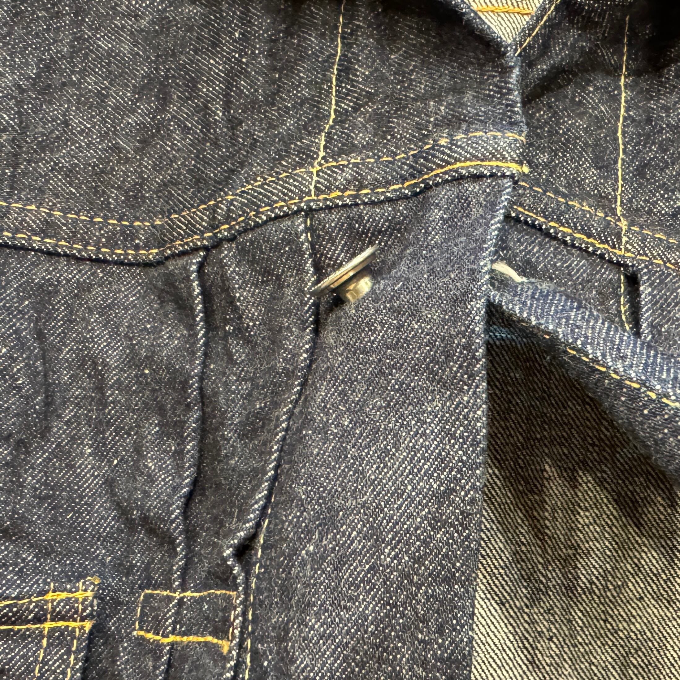 Gジャンの最もオーセンティックなモデルといわれるものがこの通称「セカンド」モデル。それまでの片ポケットであったものが、左右に均等に配されるようになり、ワーク色がとれ、ファッションとしてのバランスの良い衣料の第一歩を踏み出したモデルといえます。とはいえ、初期のモデルはまだどこか牧歌的で、レザーパッチやリベットによる補強は健在。その後にさらにブラッシュアップされるタイプと比べると、「ファーストモデル」の印象がまだ残っている点も興味深い特徴です。