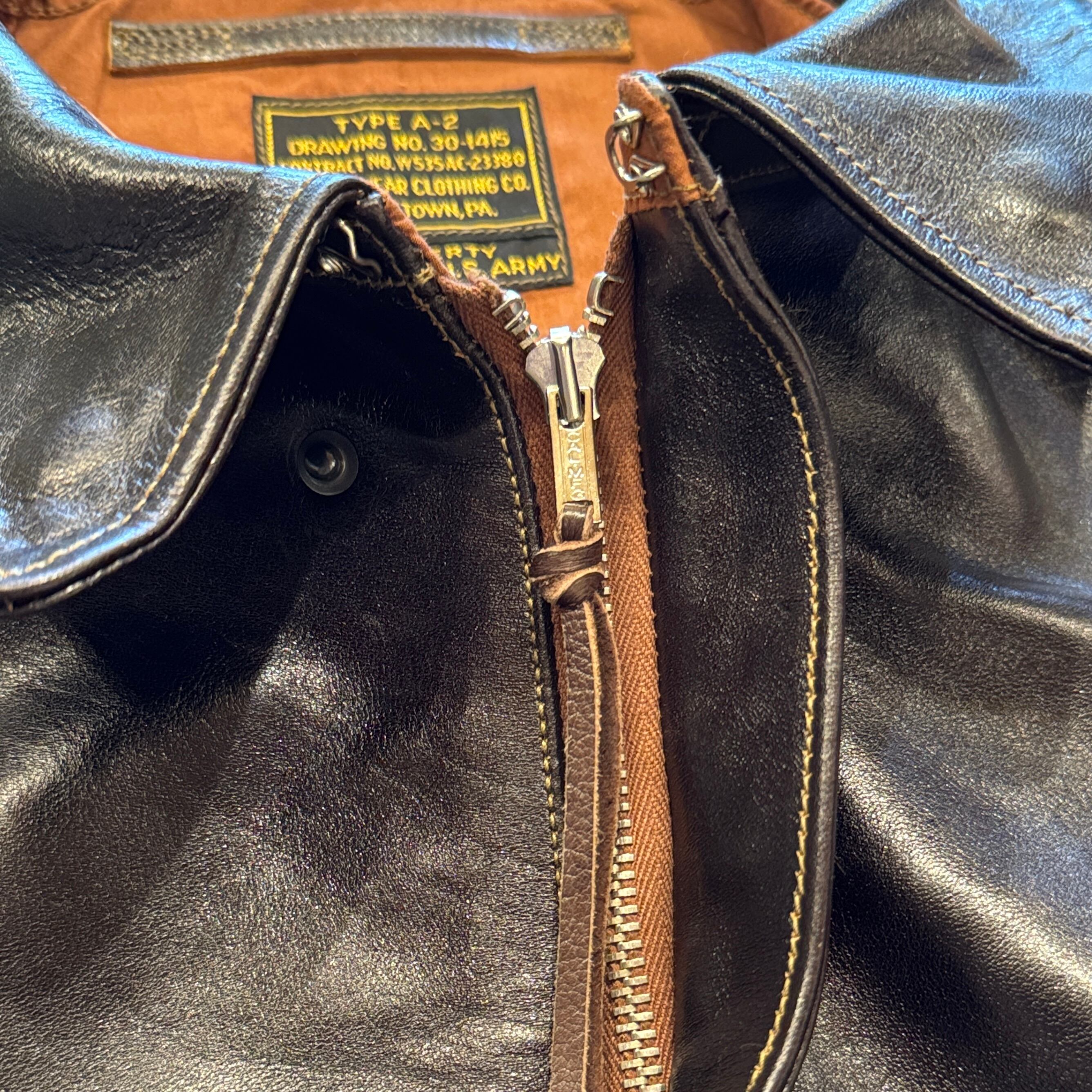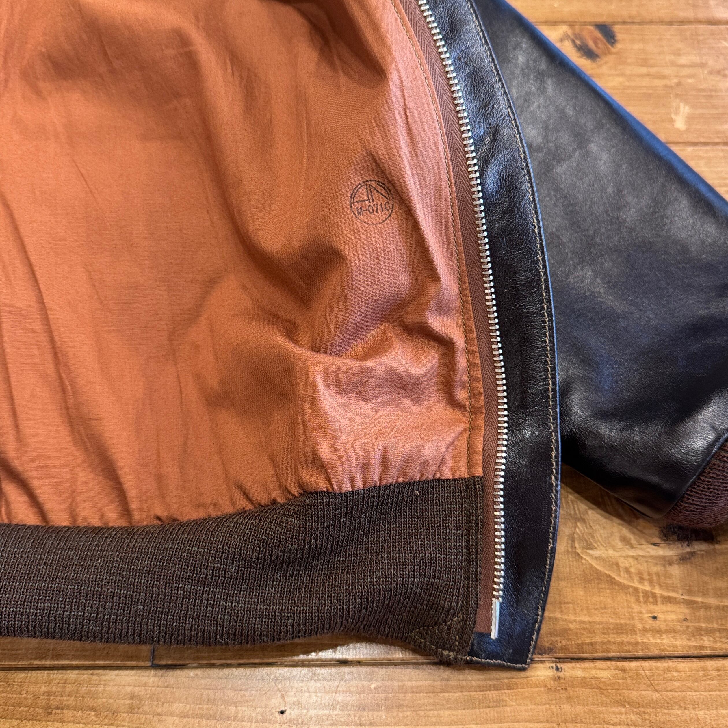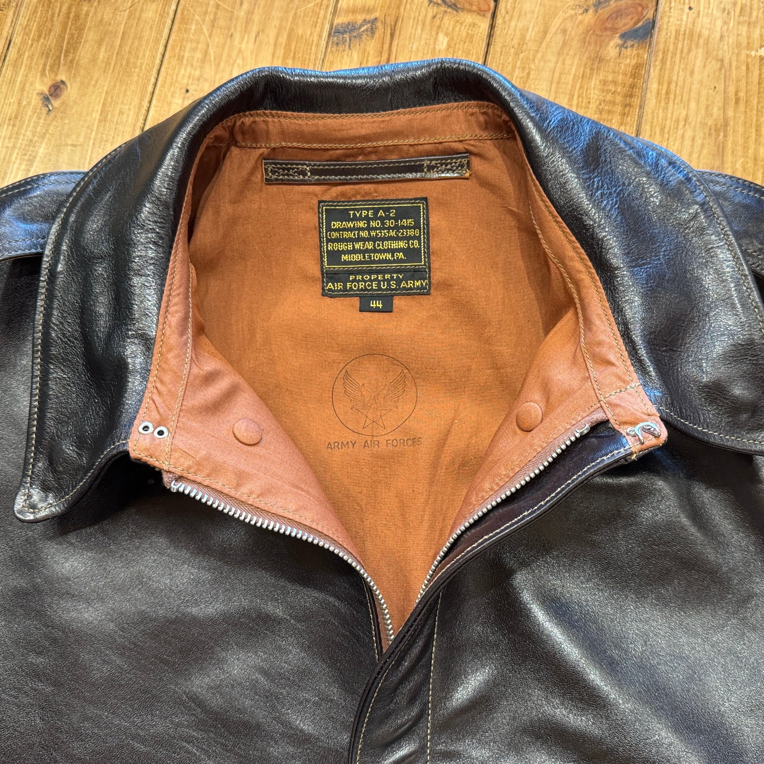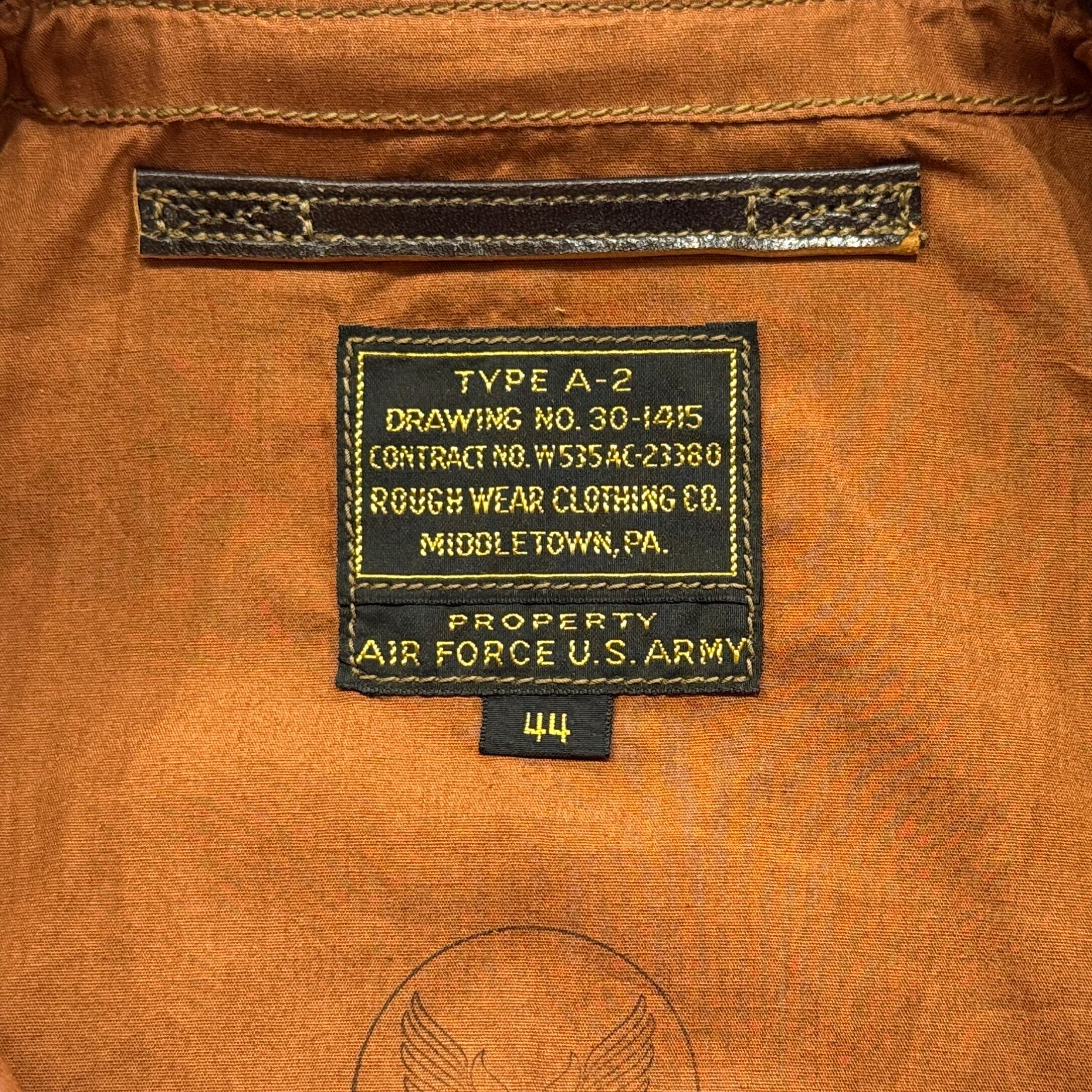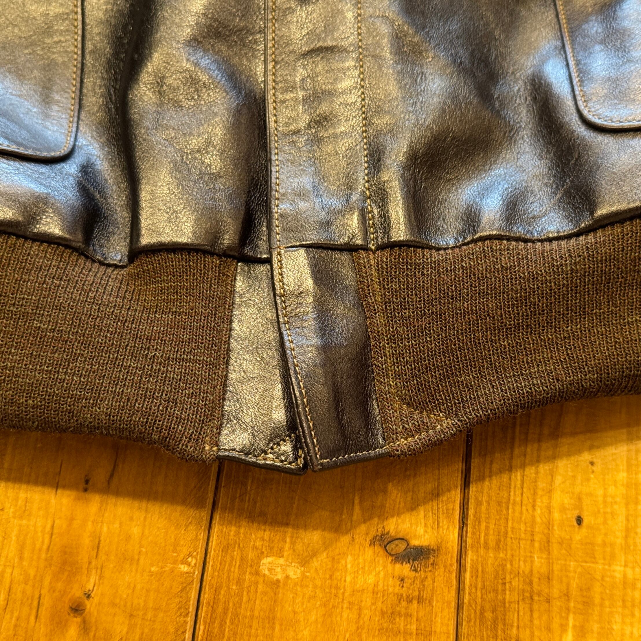 「California Manufacturing Company JACKET FLYING SUMMER TYPE A-2 ROUGH WEAR CLOTHING CO. CONTRACT NO. W535AC-23380 DARK SEAL BROWN SIZE 42~46」