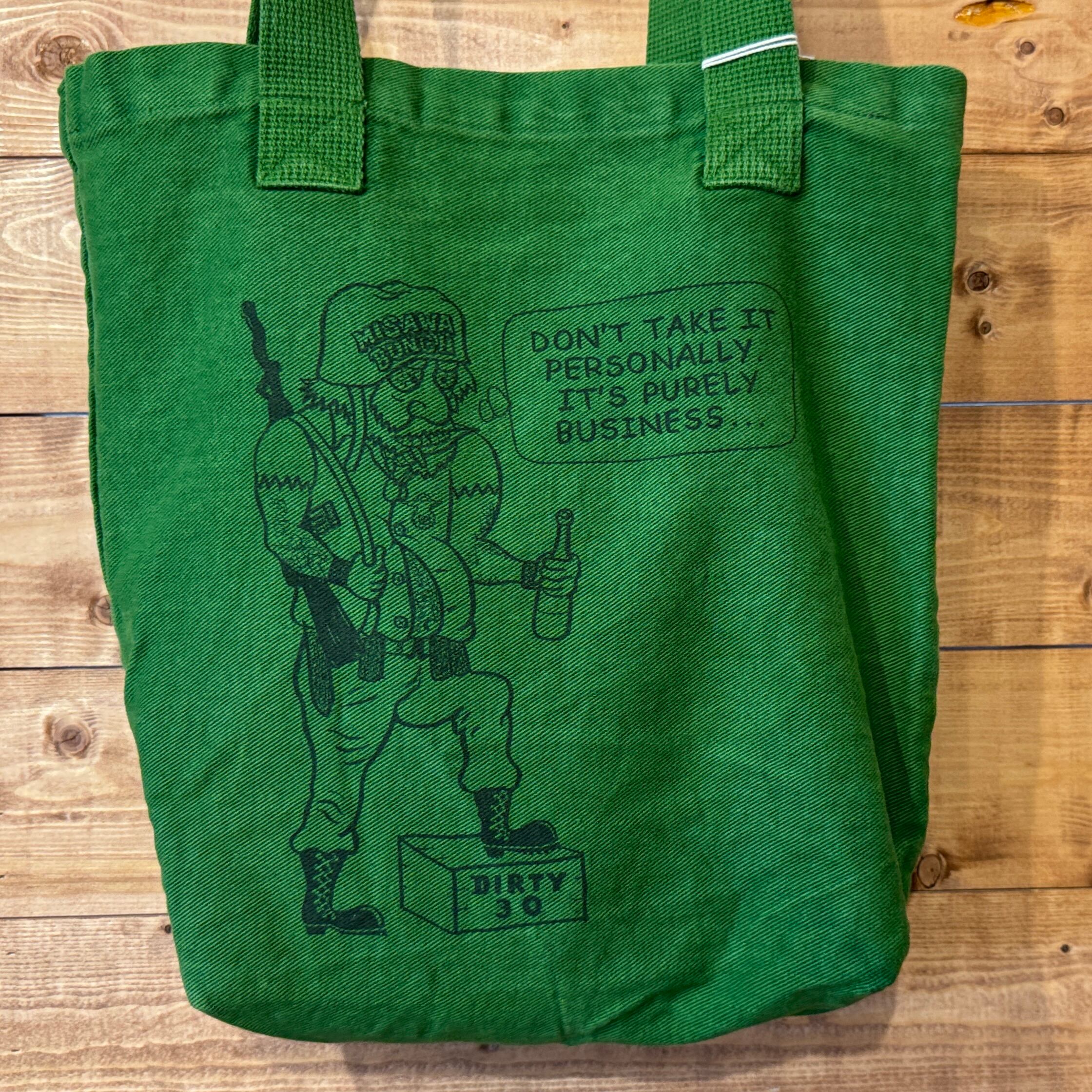 アメリカの図書館や資料館などではお馴染みのライトトートバッグ。ベースをアメリカよりインポートしたオーバーダイドタイプにプリントを施している。