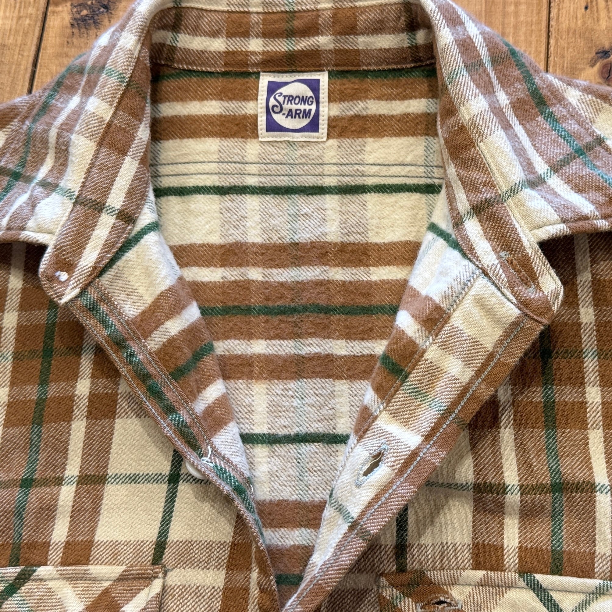 今シーズンのストロングアーム・フランネルは4つのチェック柄です。どの格子柄もユニークなチェック柄で、彩度が高く深みのある色なので、色落ちがとても綺麗です。ウエアハウスの生地に対する素晴らしい手腕は、このフランネルでも存分に発揮されている!エンシェント・フランネルは少しシェイプされた古いスタイルの襟と、丸みを帯びたポケットとフラップが特徴。モダン・フランネルは襟の縁がよりフラットで、ポケットの角とフラップには切り込みが入っています。どれを選んでも間違いありません。