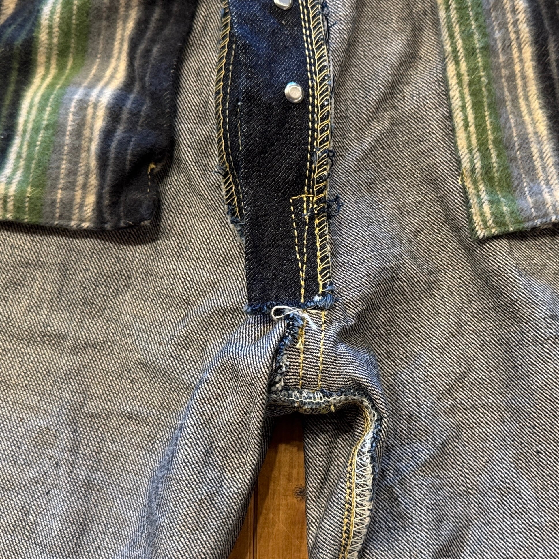 「WPA」の労働者プロジェクトは、軍需の拡大にともない1943年に消滅したが、余剰在庫となった生地や資材は、当時貴重な民生用に転用されたに違いない。なぜなら、デニムの繊維でさえ、軍用生地のために変更が強いられた時代である。大戦時に、様々な生地が使用されたポケットスレキの代用には、このような残布使用が推奨されたのだろう。