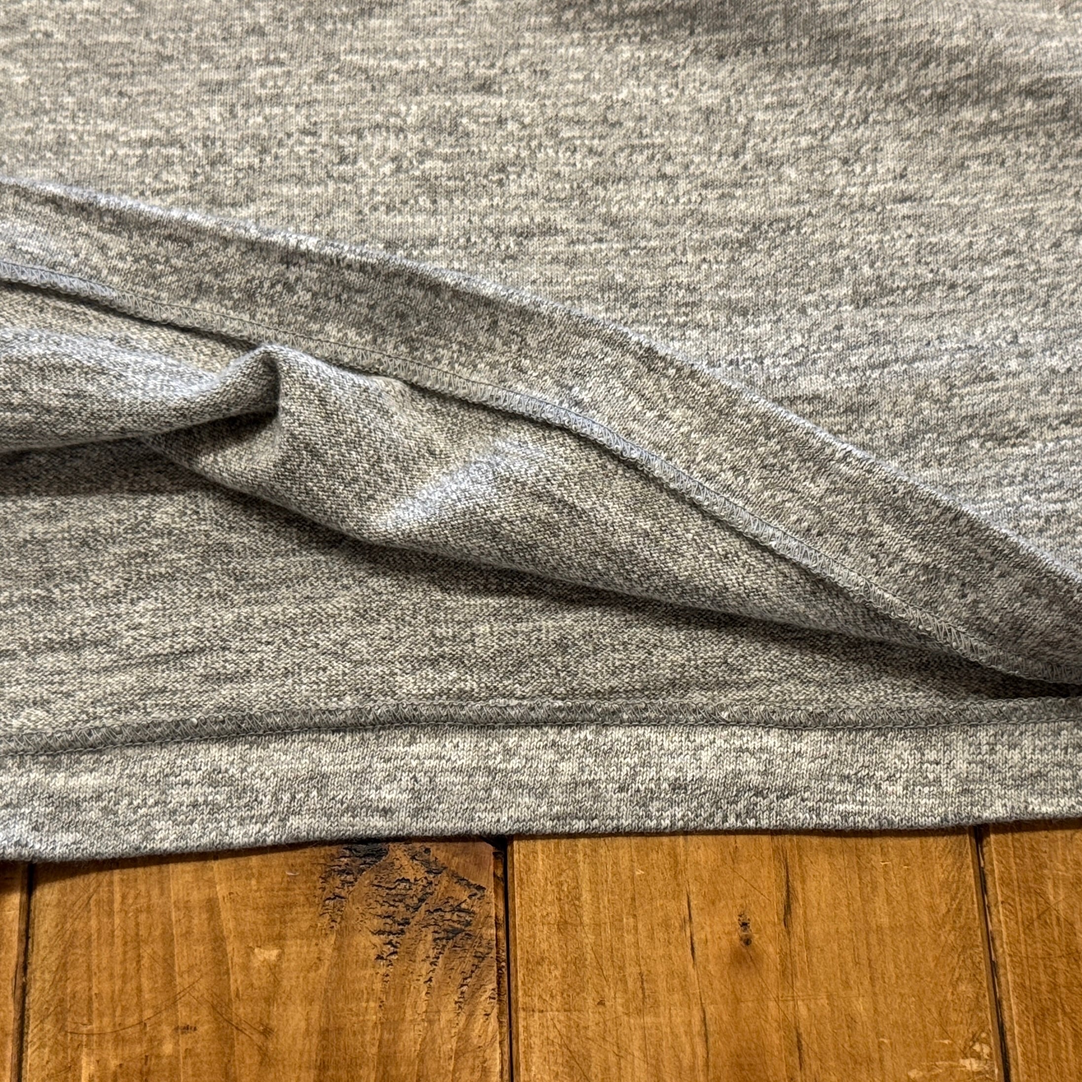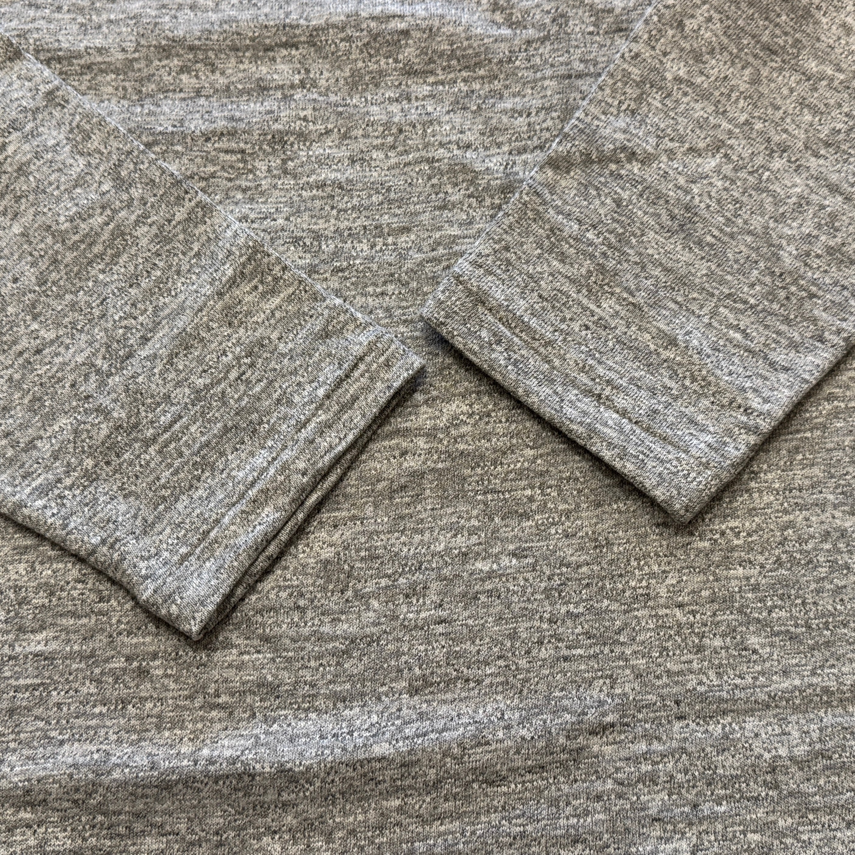 「吊り編み機より希少」といわれる旧式のローゲージ編み機で編まれたウエアハウスの定番ボディです。12番のムラ糸で独特の陰影が出るように編まれたこの生地はシャドウボーダーと呼ばれており、無地でありながらうっすらと横段のようなムラが浮かびます。