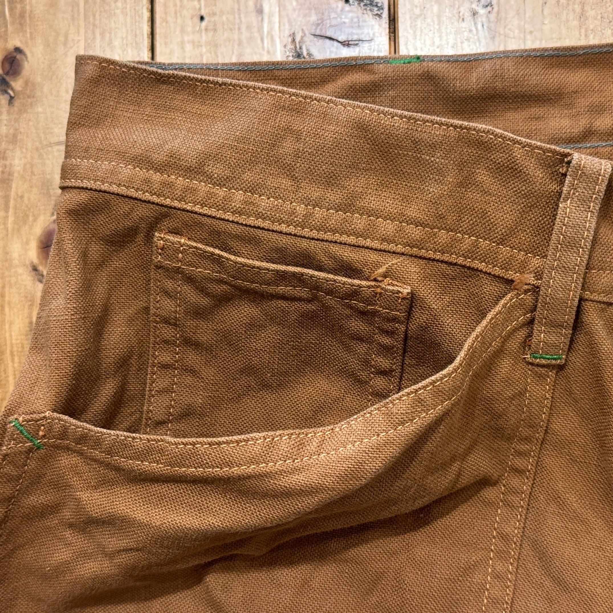 1930年代後期~40年代初期の一時期に実在した滅多にお目にかかれないL社4シリーズのPainter Pantsをベースにして3シリーズとしての特徴でもあるダブルステッチ縫製にてDURA-BILTの解釈として作り上げたペインターパンツ。