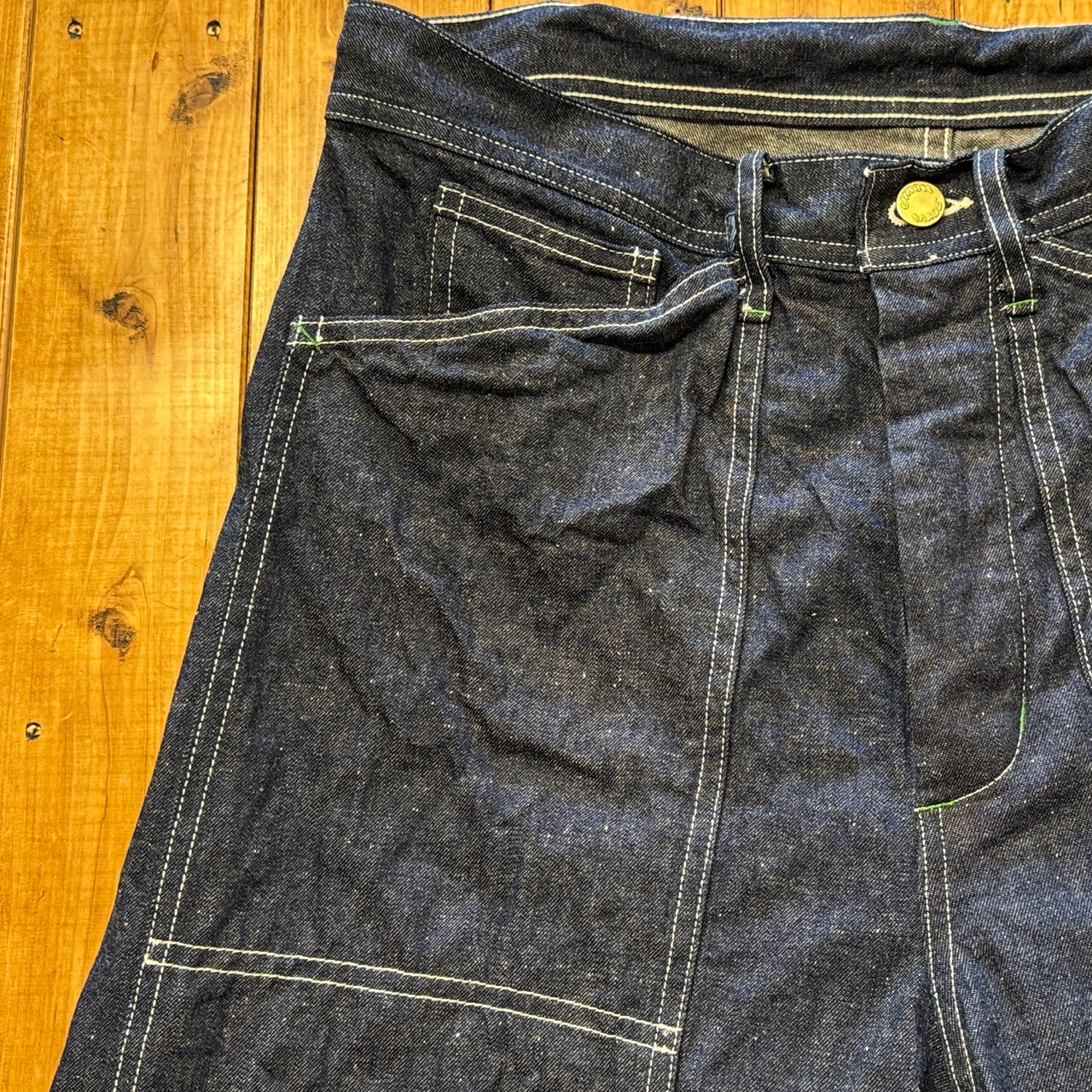 3シリーズ初期型の特徴でもある角形ポケット、そして初期型のみに備わる緑カンヌキ、16.8mmのUINON MADEボタン。