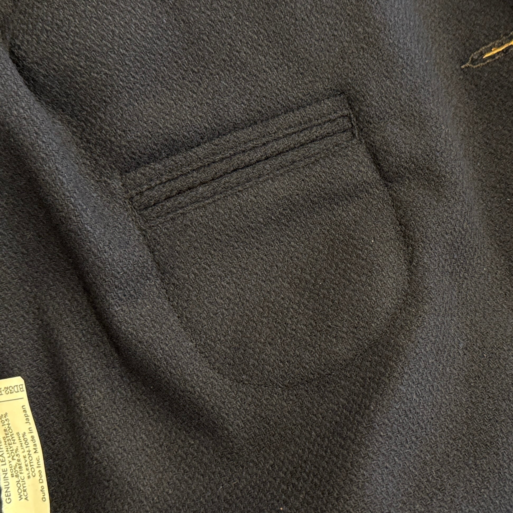 1920~30年代にポピュラーだったシングルブレストの革製ハーフコートは、元々はデニムやダック製のカバーオールをより厳しい環境下での着用を考慮して開発されました経緯がある生粋のワークウエアであったと言われている。当時は市場に潤沢なストックがあった馬革をふんだんに使用し、更には保温性を担保するライニングと組み合わせることにより他に類を見ない耐久性と防風性、そして防寒製を高次元で満足させた。過度なデコレーションの無い質実剛健なディティールながらウエストに設けたアジャストタブや丁寧且つ強靭な作りの両玉縁ポケットなどこの時代ならではのパーツが光る。また、見返しを持たない見頃によりボタンホール裏側はライニング上に直接施されるのも同時代のレザーコートの特徴である。