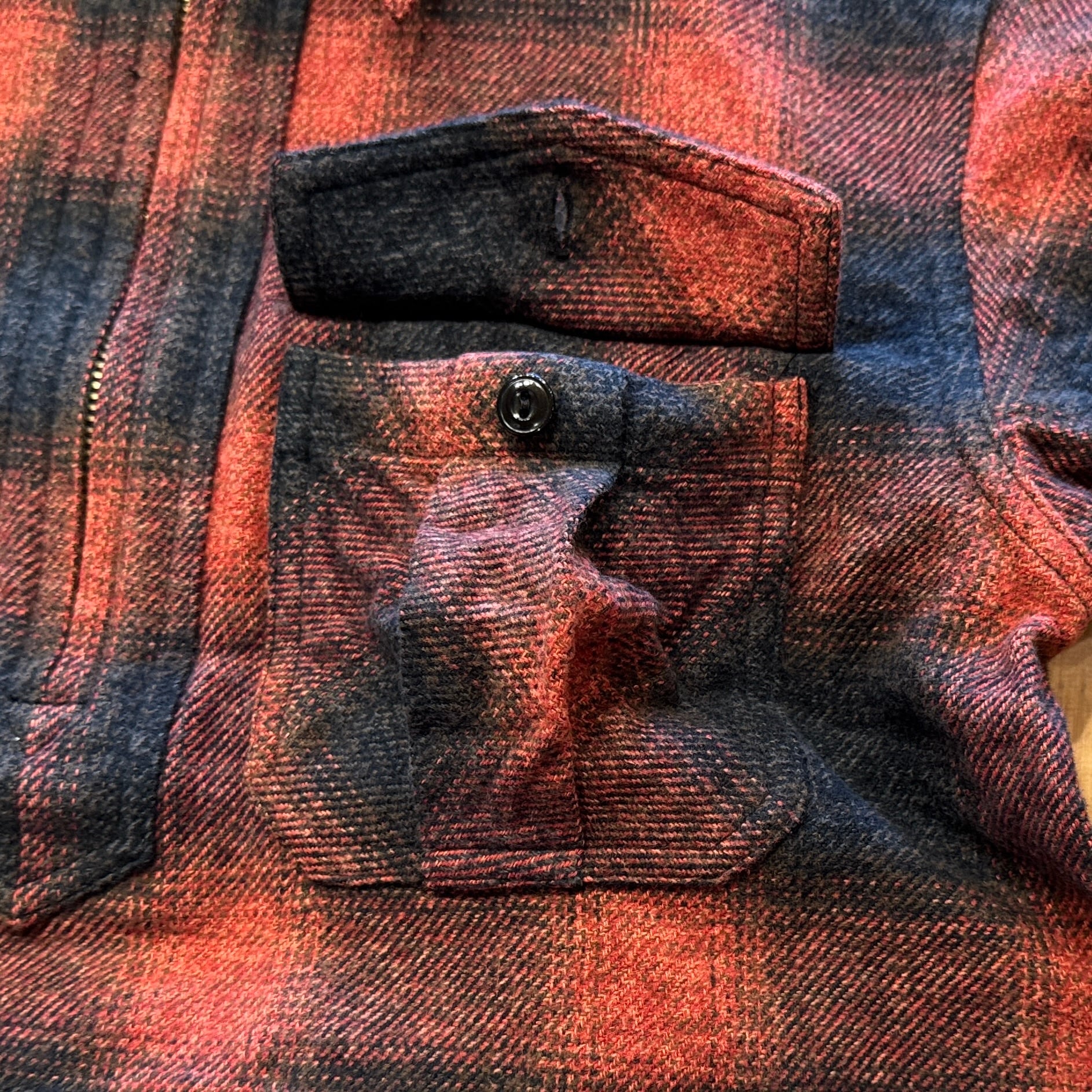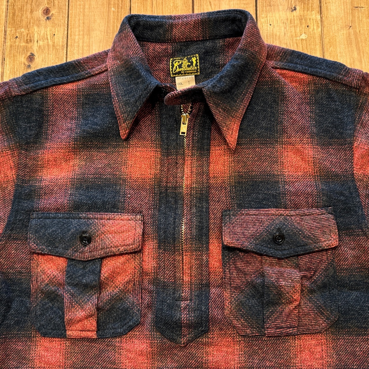 「"COTTON TWEED CHECK HALF ZIP WORK SHIRT"」