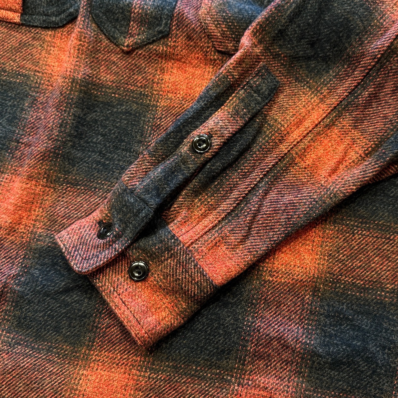 肉厚なコットンツイード裏起毛のオンブレチェック生地を採用。裾のサイドには別布マチ付き。