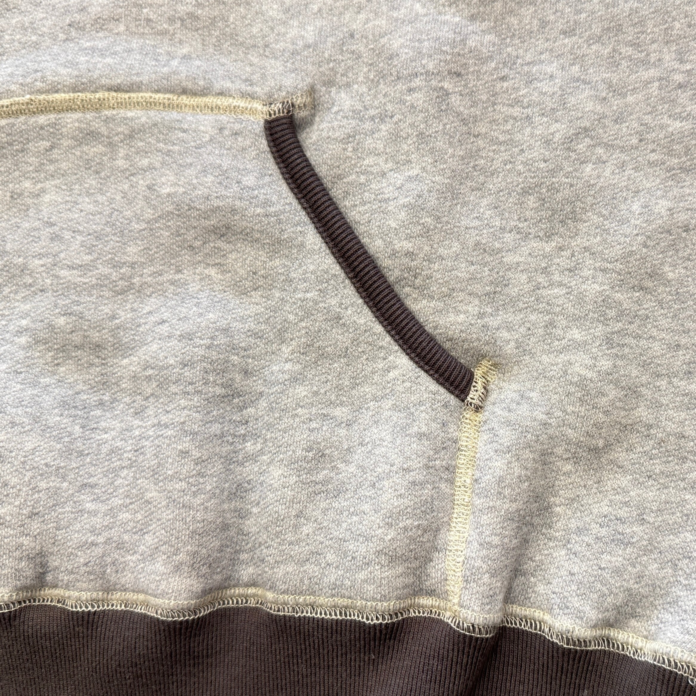 形は、60sのラグラン後付けパーカーモチーフ。肩、腕の可動域が広く、運動性、着心地、着脱に優れた直線状のラグランスリーブ、後付けされたフード、4本針で縫い付けられたポケット、耐久性を持つ 3本針 1本またぎバインダーネック、熟練技術者が時間をかけ縫い上げる 4本針フラットシーム縫製、ヨレにくい厚手のリブ仕様、クラシカルかつ保温性の高い特殊な裏起毛等、細かなディテールを手間をかけ再構築し、表裏で糸配色を変えたステッチワークは、全体の雰囲気をさらに引き立てるデザインとなっています。肩線のないラグランは、肩幅、肩形状を気にすることなく着用でき、身幅に程よいゆとりを持たせたシルエットは着やすさを高めながら、レイヤードにも対応できるバランスの良いレギュラーフィットに仕立てています。