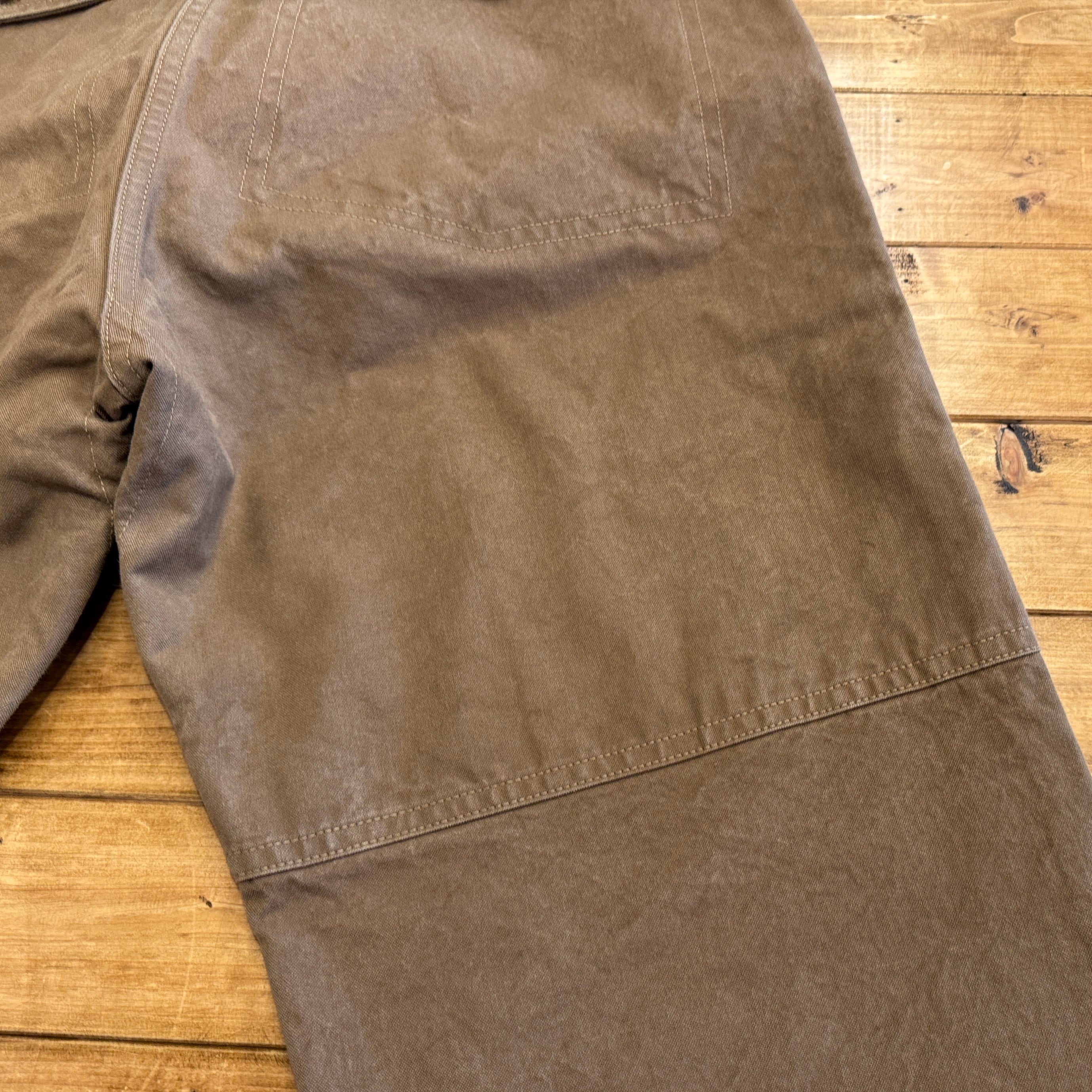 ダブル・デューティー・トラウザーは1910年代から1960年代にかけて、主に林業やアウトドアで働く労働者のために多くのブランドが製造したパンツに似ています。私のヴィンテージ・サンプルは1920年代から30年代前半のものと思われます。そして、いくつかのユニークなディティールがあります。ダブルフロントとダブルシート、バックルバックストラップ、ボタンスルー・フラップ付きの大きなバックポケットがある。穿き慣らしを楽しんでください!