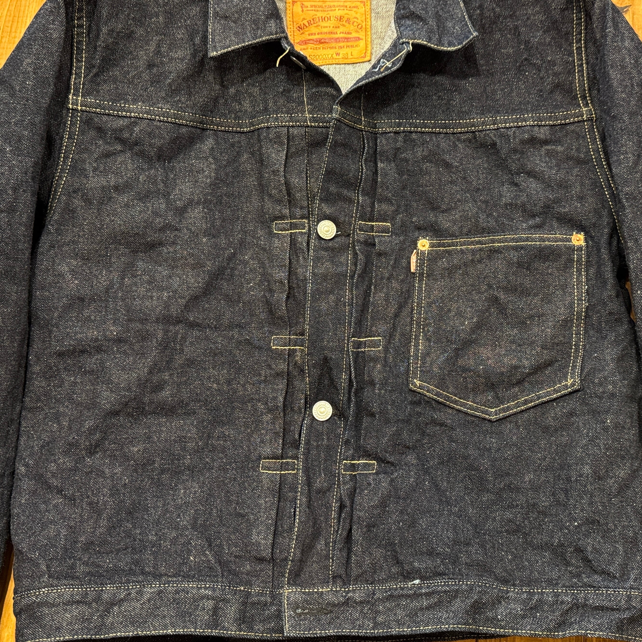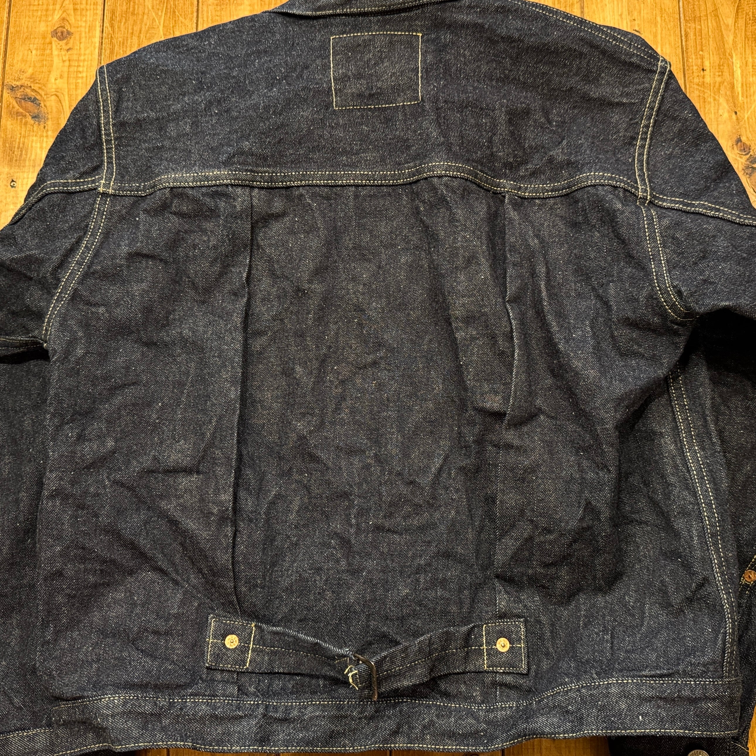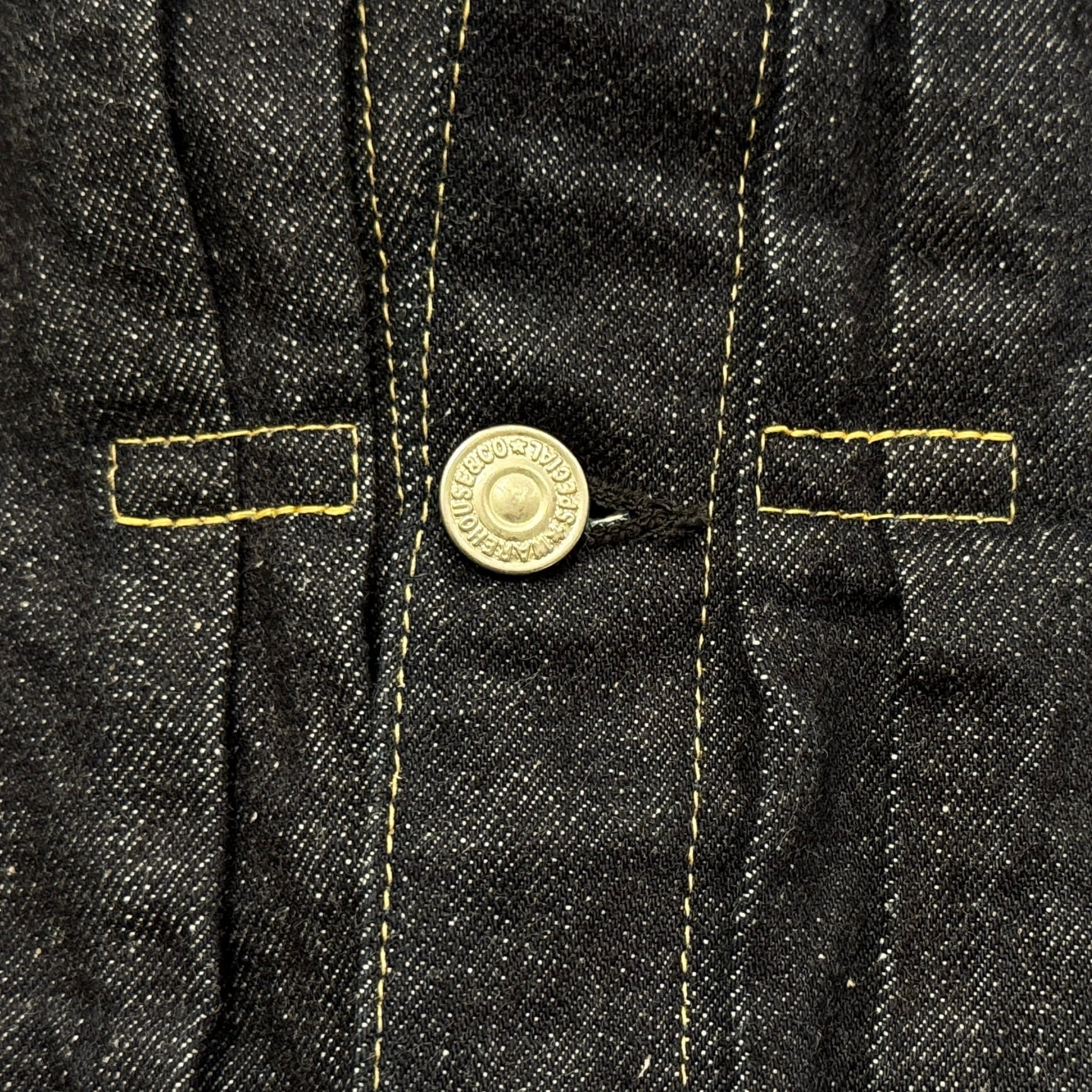 S1000XXとのセットアップとなるS2000XXは、「WW2」の規制を受けてポケットのフラップやボタン数など、デニムジャケットにも簡素化が迫られた時代のモデルです。「WW2」モデルのなかでも「アーリーモデル」と呼ばれる「月桂樹ボタン」を使用しないタイプです。「デッドストックブルー」のレーベルでは大戦モデルのそのやや太い番手が使用されて織られた事実をオリジナルのデッドストックの「WW2モデル」から解析して再現、さらには酸化した風合いをデニムはもちろん、すべての部材にも施しています。