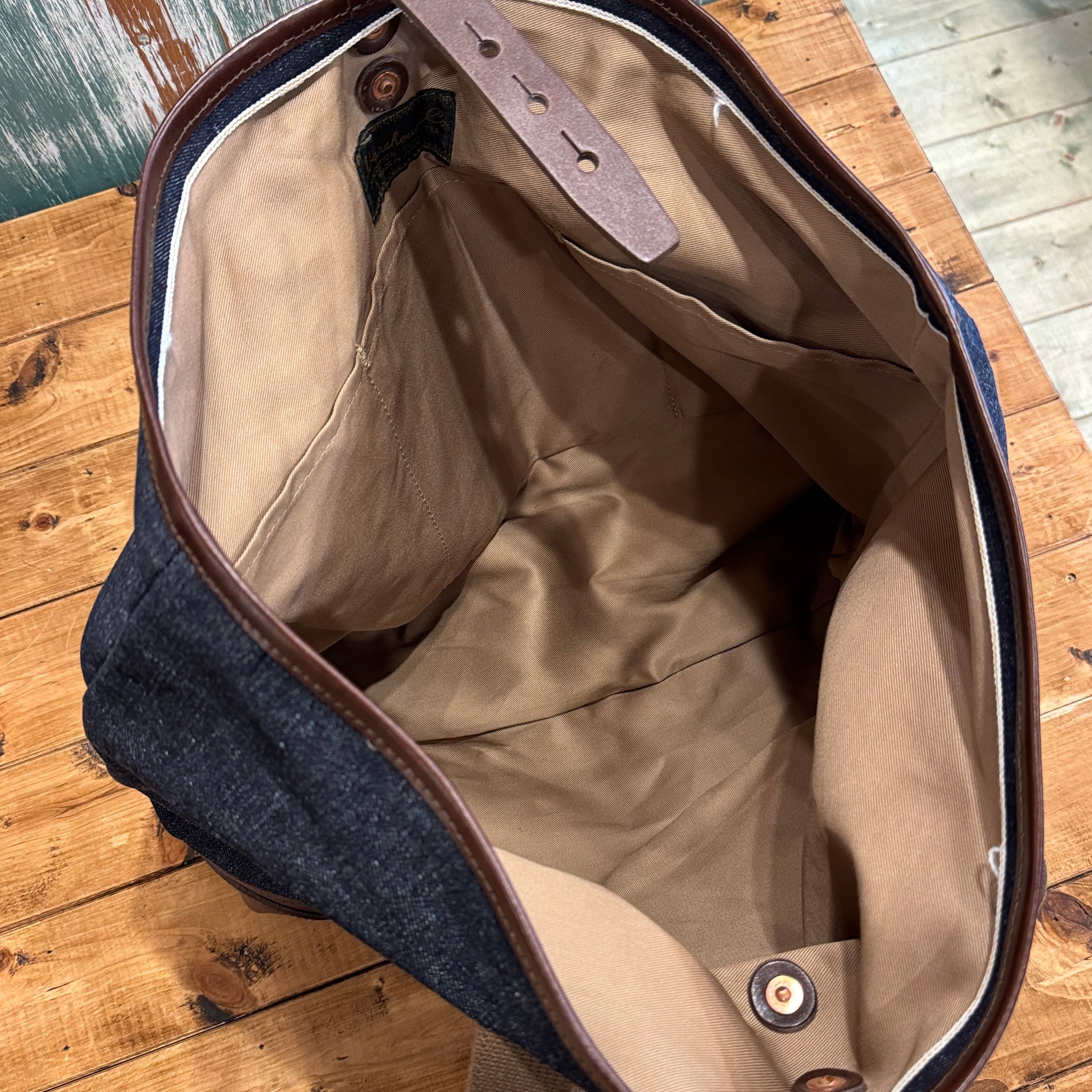 LOT1001と同じ13.5オンスのバナーデニム、ダック、インナーにすべて力織機を使った生地を使っているトートバッグです。