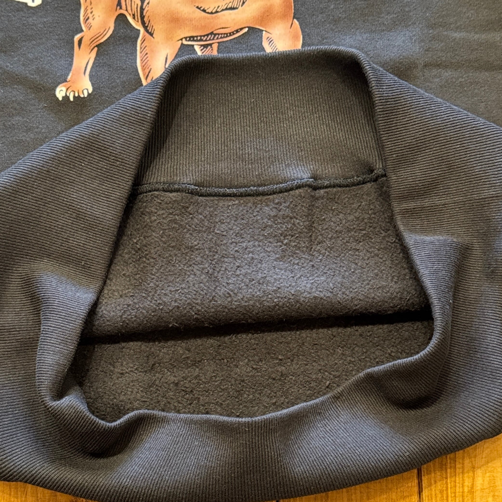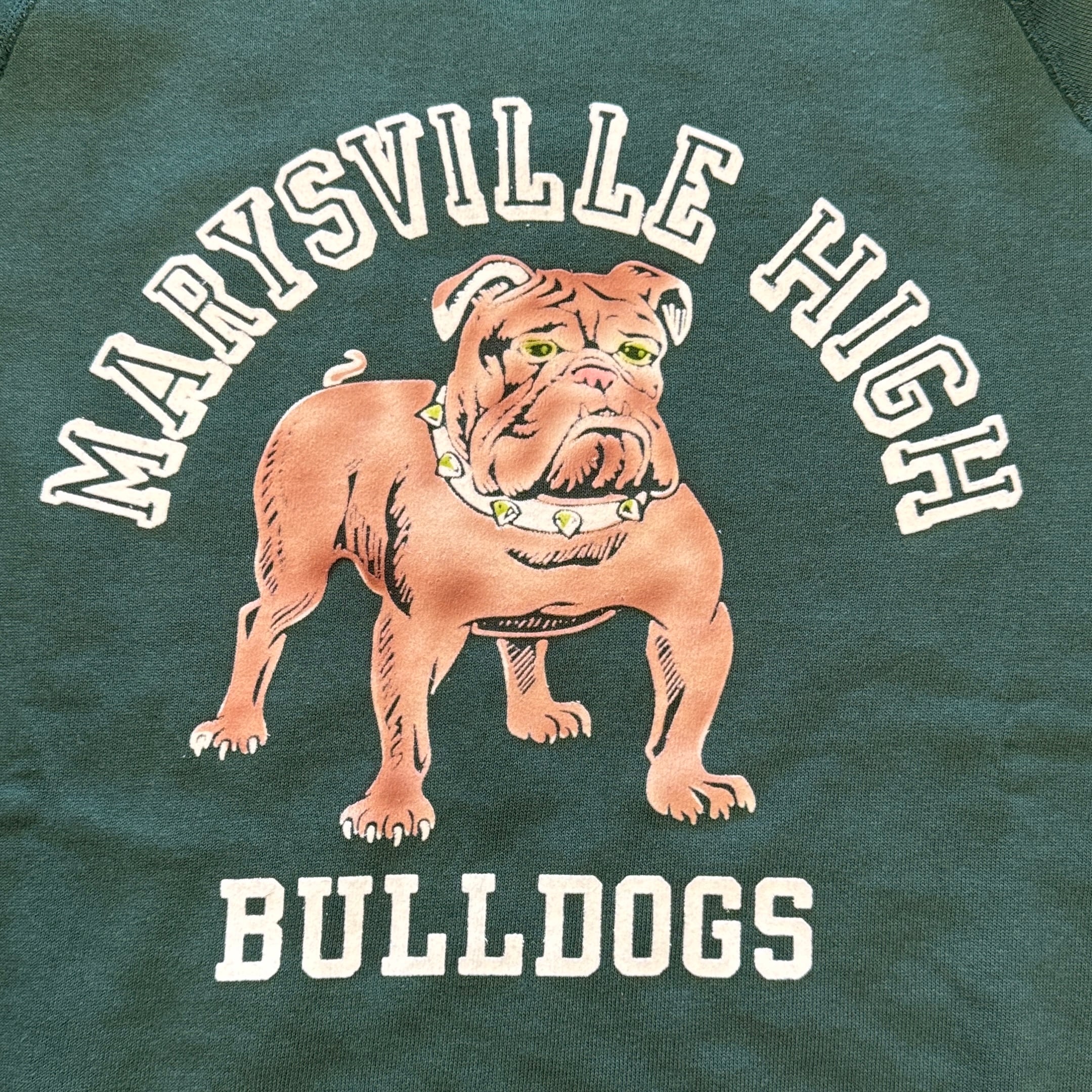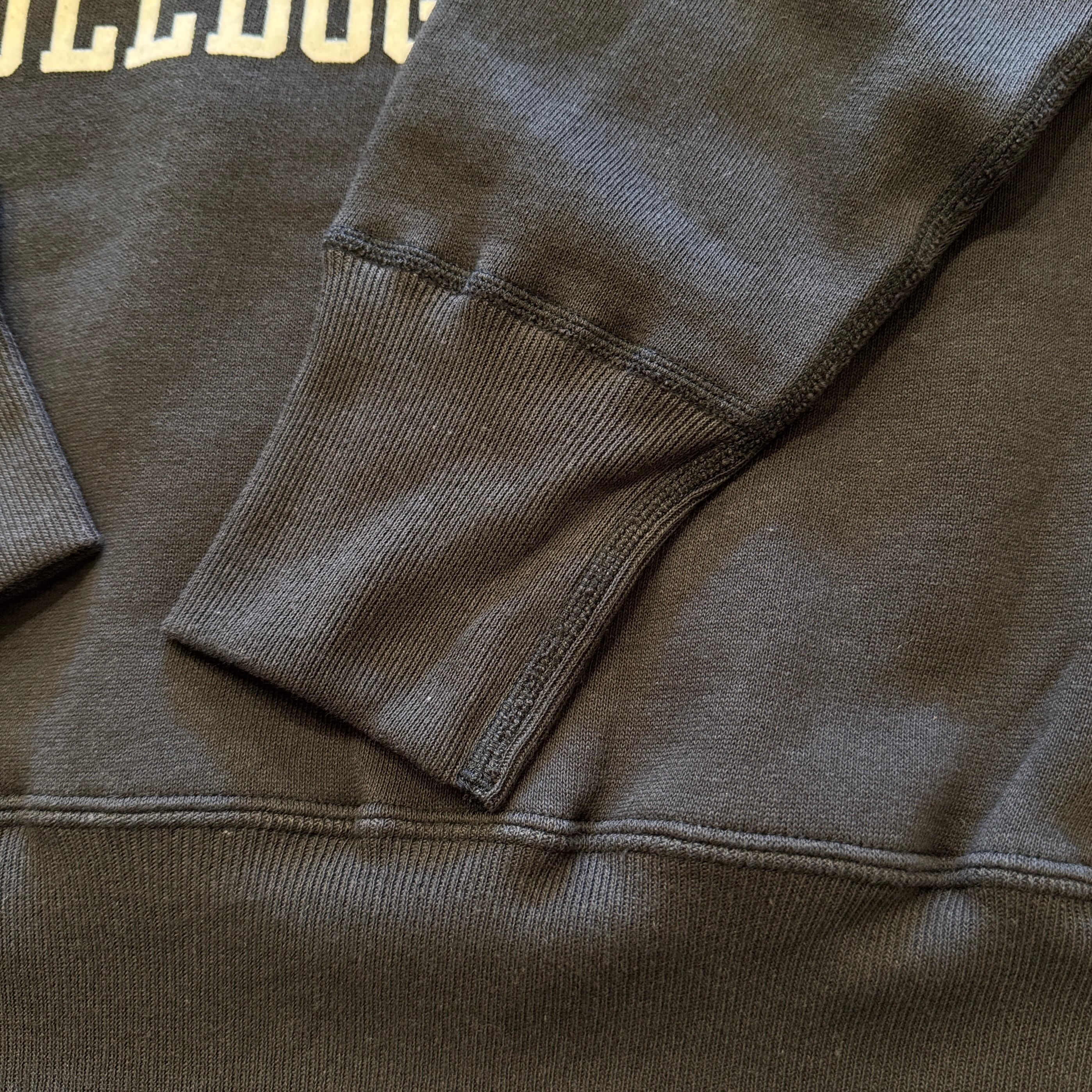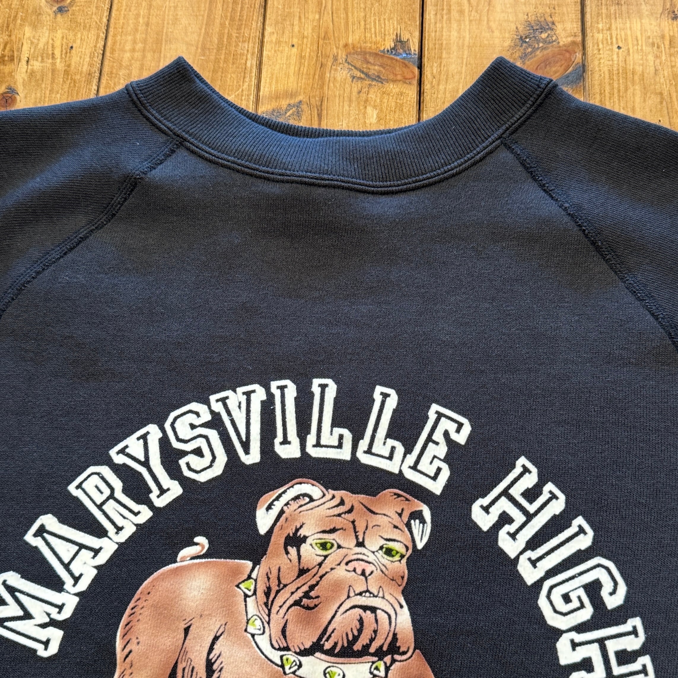 950年代にはスポーツウェアとしてのスウエットシャツがラグランスリーブになり、ガゼットの補強がなくなったシンプルモデルが誕生しました。そして1960年代には様々な技法でこのスウエットにレタリングが描かれます。ラグランスリーブのステッチが効いたオーセンティックなスウエットです。