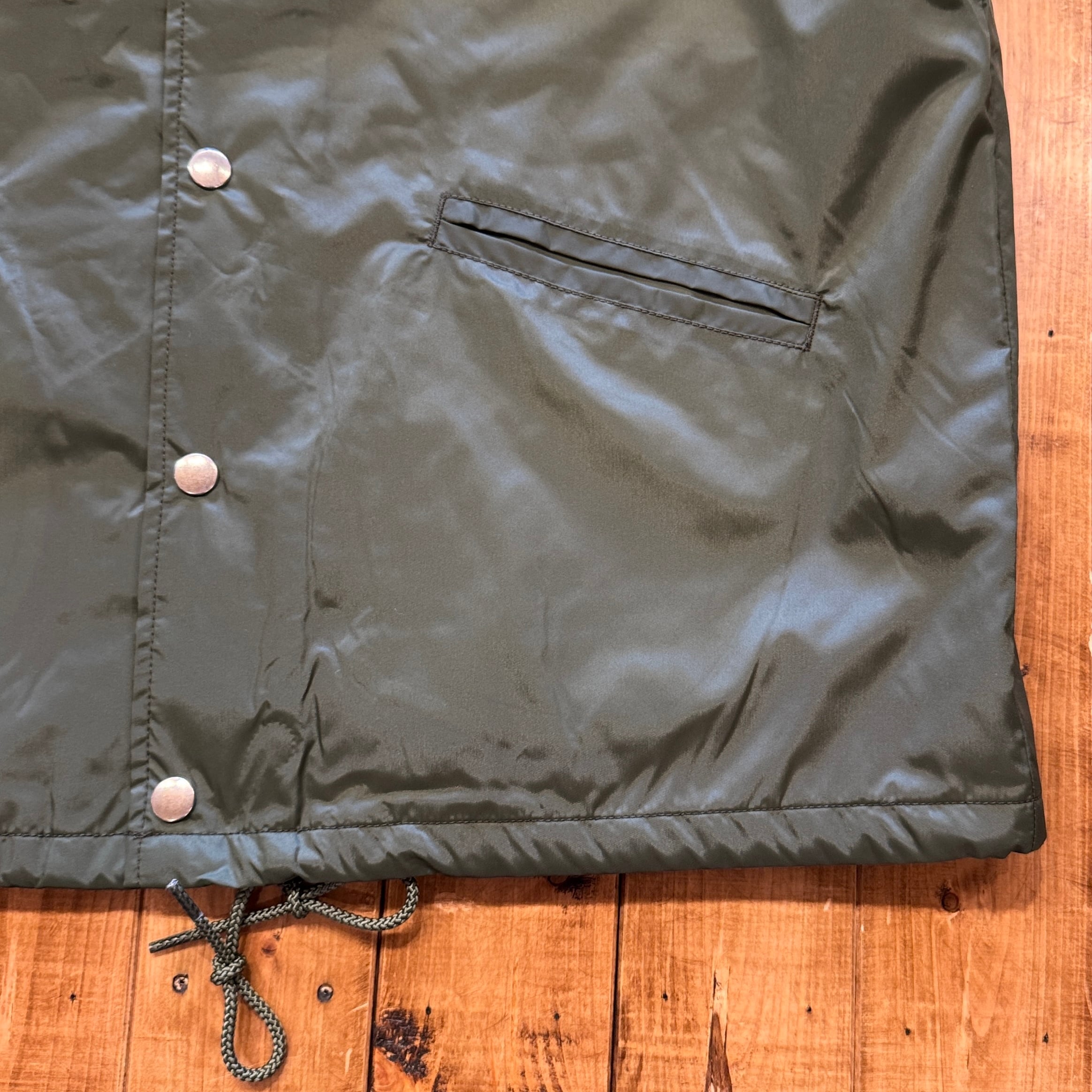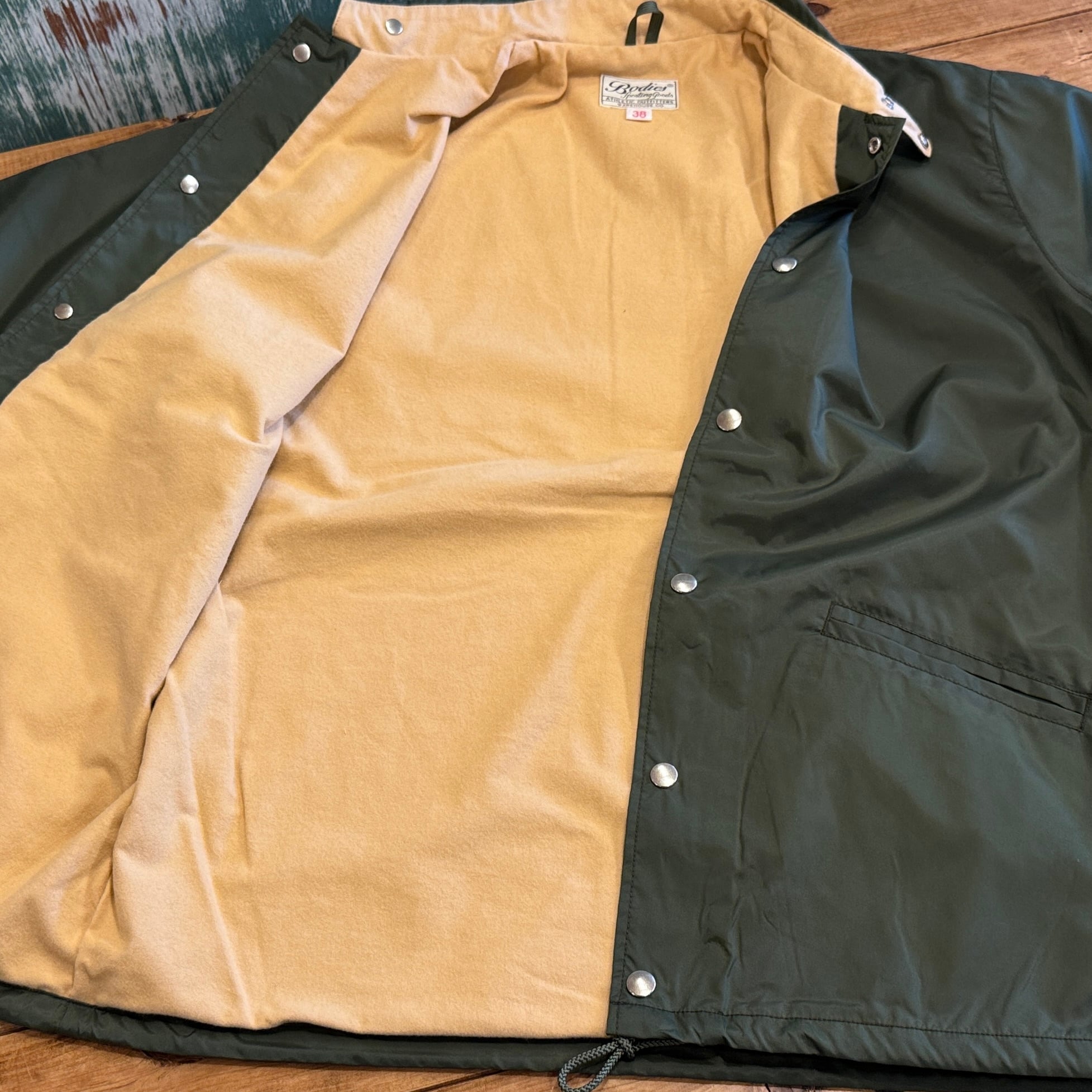 コーチナイロンジャケットの定義はアウトドアとアスレチックに別れます。アウターシェルのナイロンに対して、インナー生地にフランネルが張られていたら、それはアウトドアの用途です。もしも天竺であったらそれはアスレチックウェアです。コーチジャケットとはそれらを総称した品名になっていますが、今回ウエアハウスでは、ナイロンの生地のシャリ感を再現しました。そしてアウトドアのもつ機能性を生かしながら、アスレチックウェアの軽快感を出したもの。