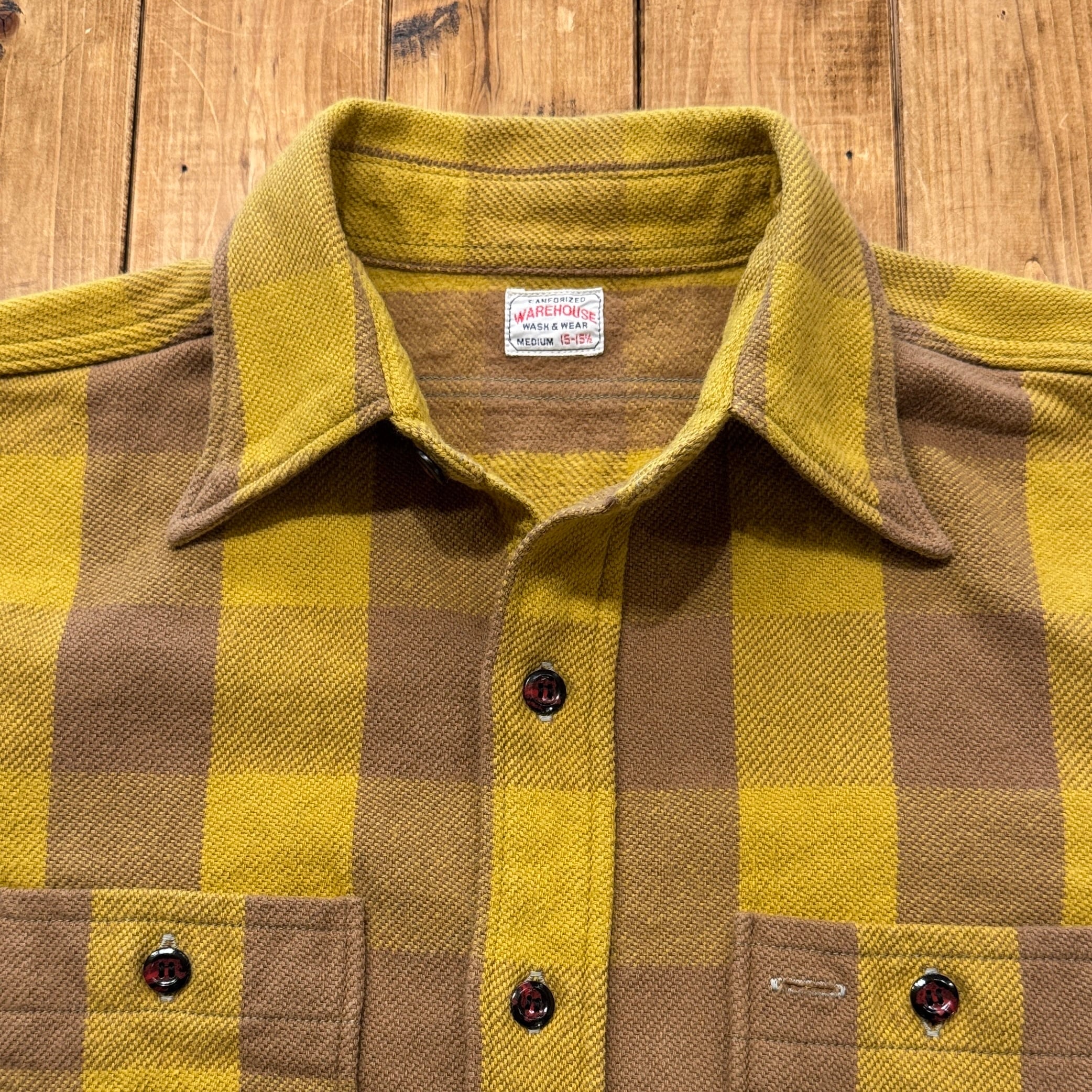 WAREHOUSE "Lot 3104 FLANNEL SHIRTS" ONE-WASH A柄マスタード