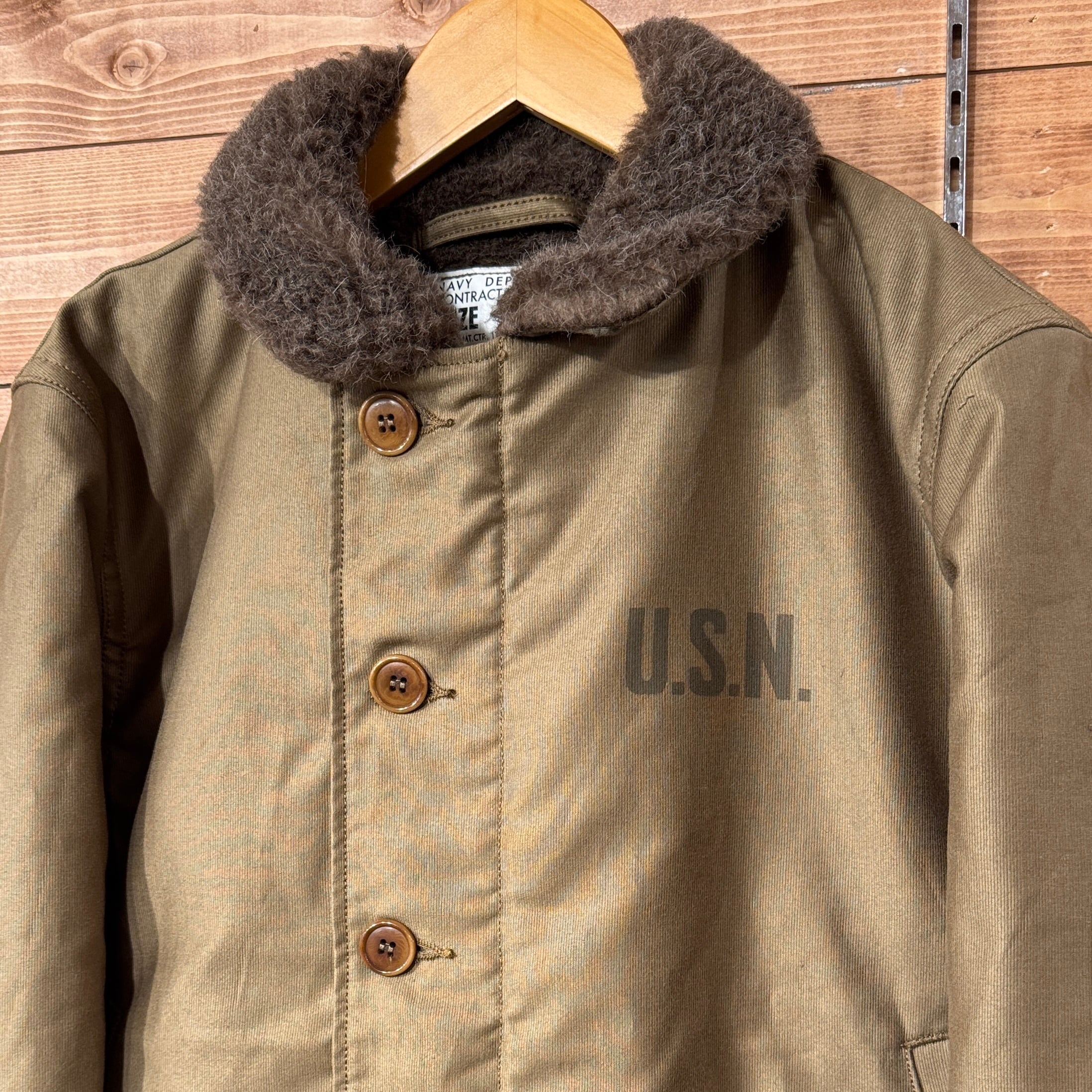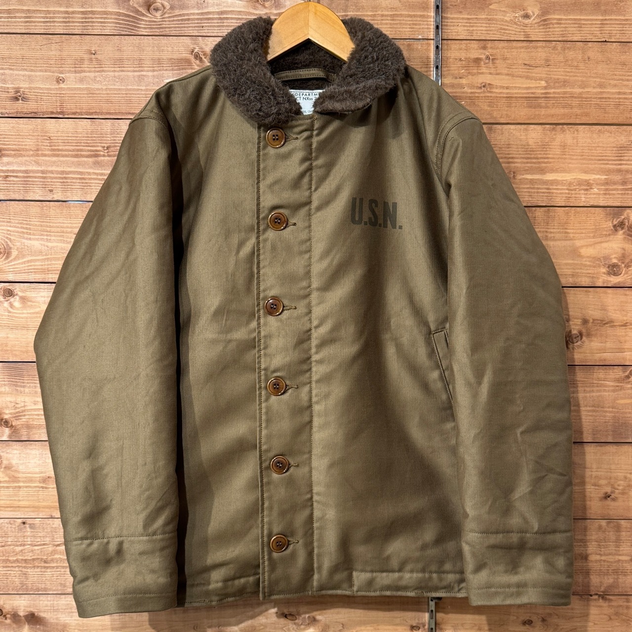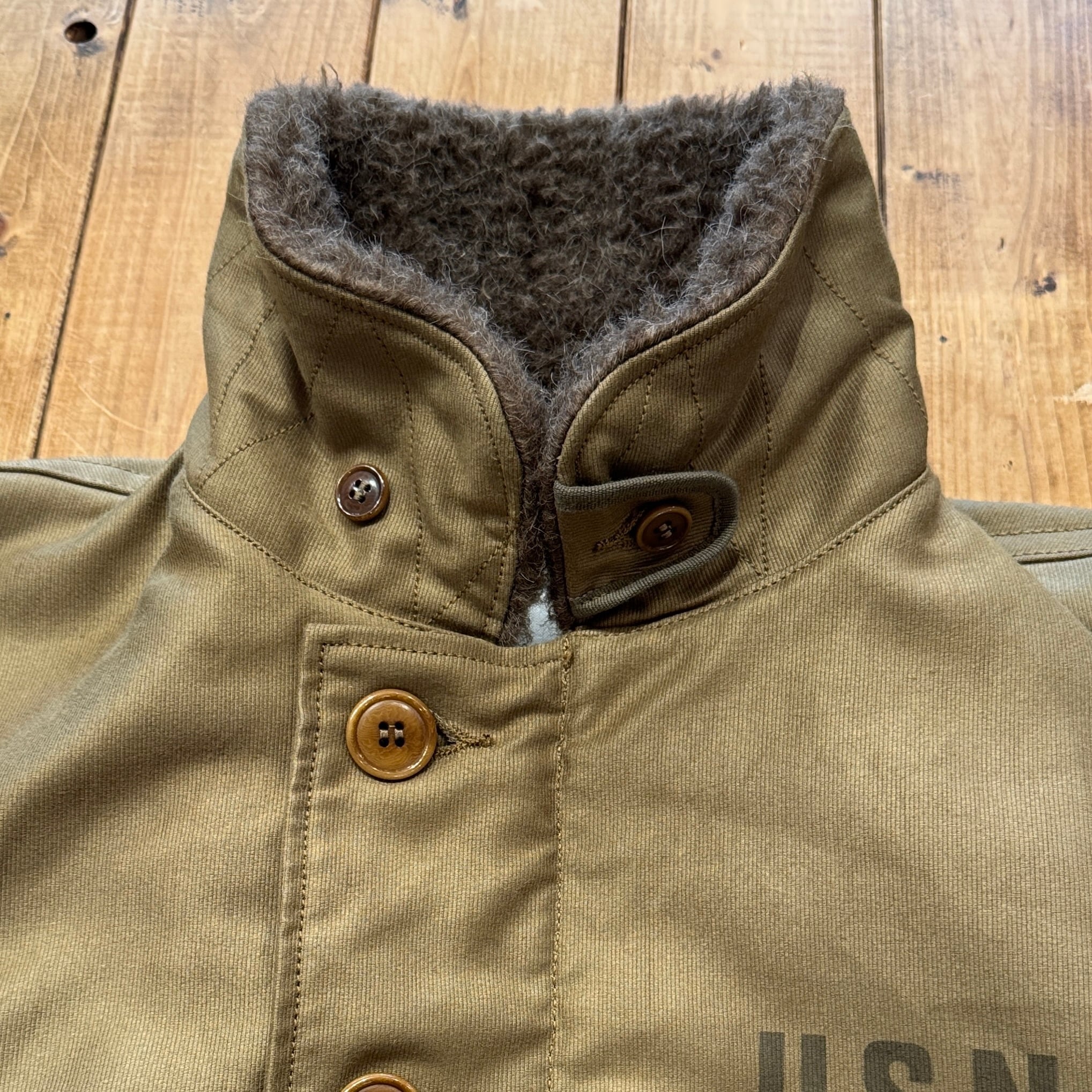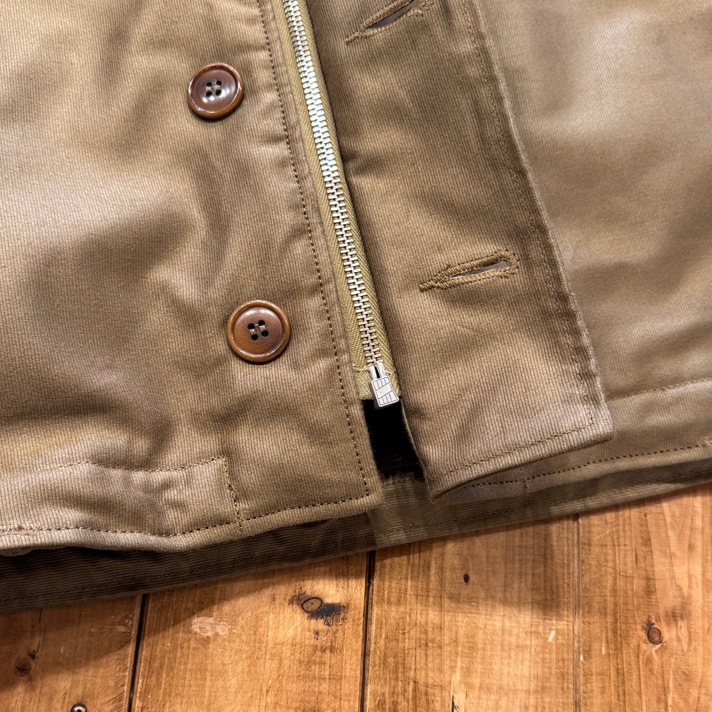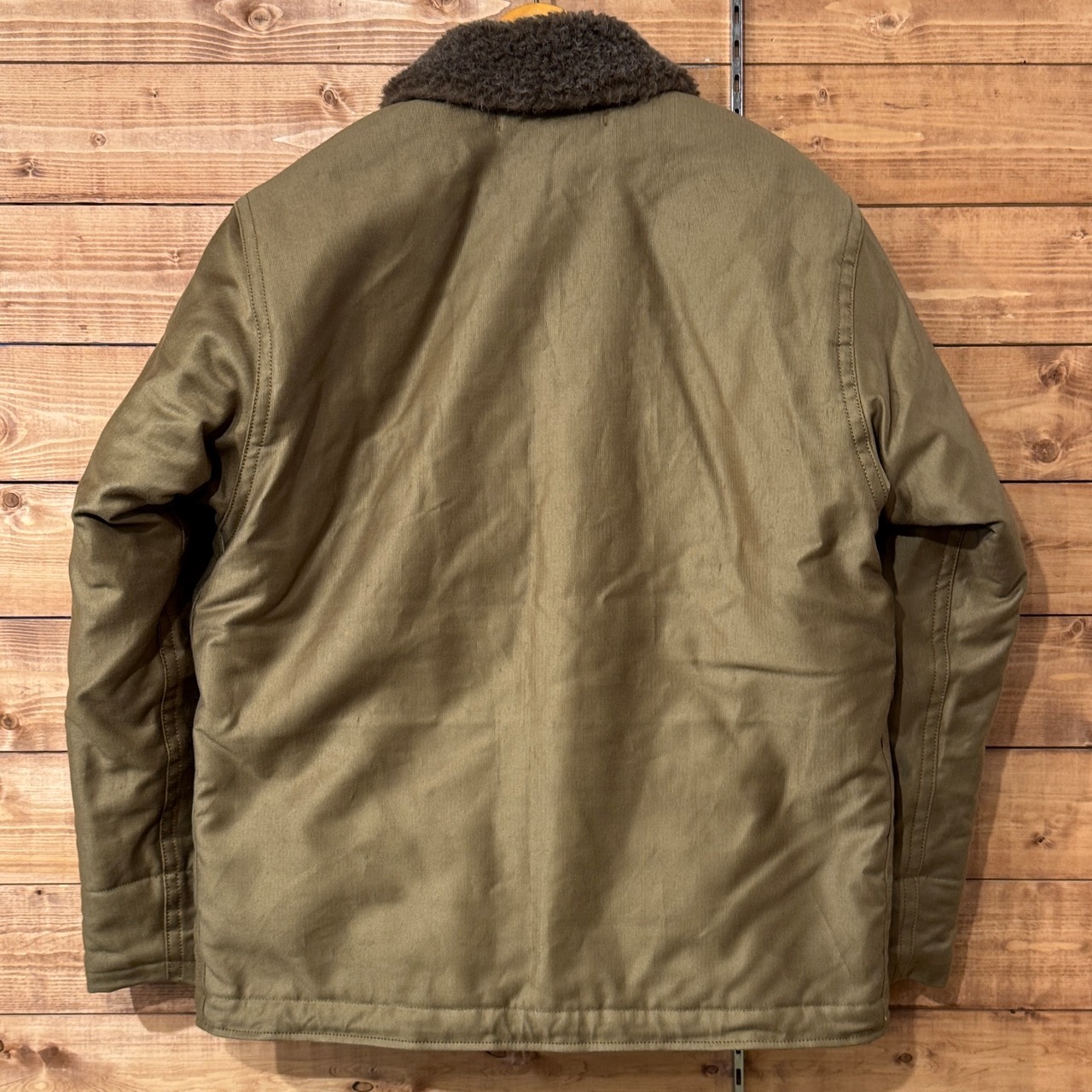 アメリカ海軍艦艇クルー向けに生産された代表的なデッキジャケットの初期型をモデルアップ。大戦末期から急ピッチで大量生産された余剰分がサープラスとして戦後の米国内に出回りモータースポーツに心酔する若者たちに受け入れられた。