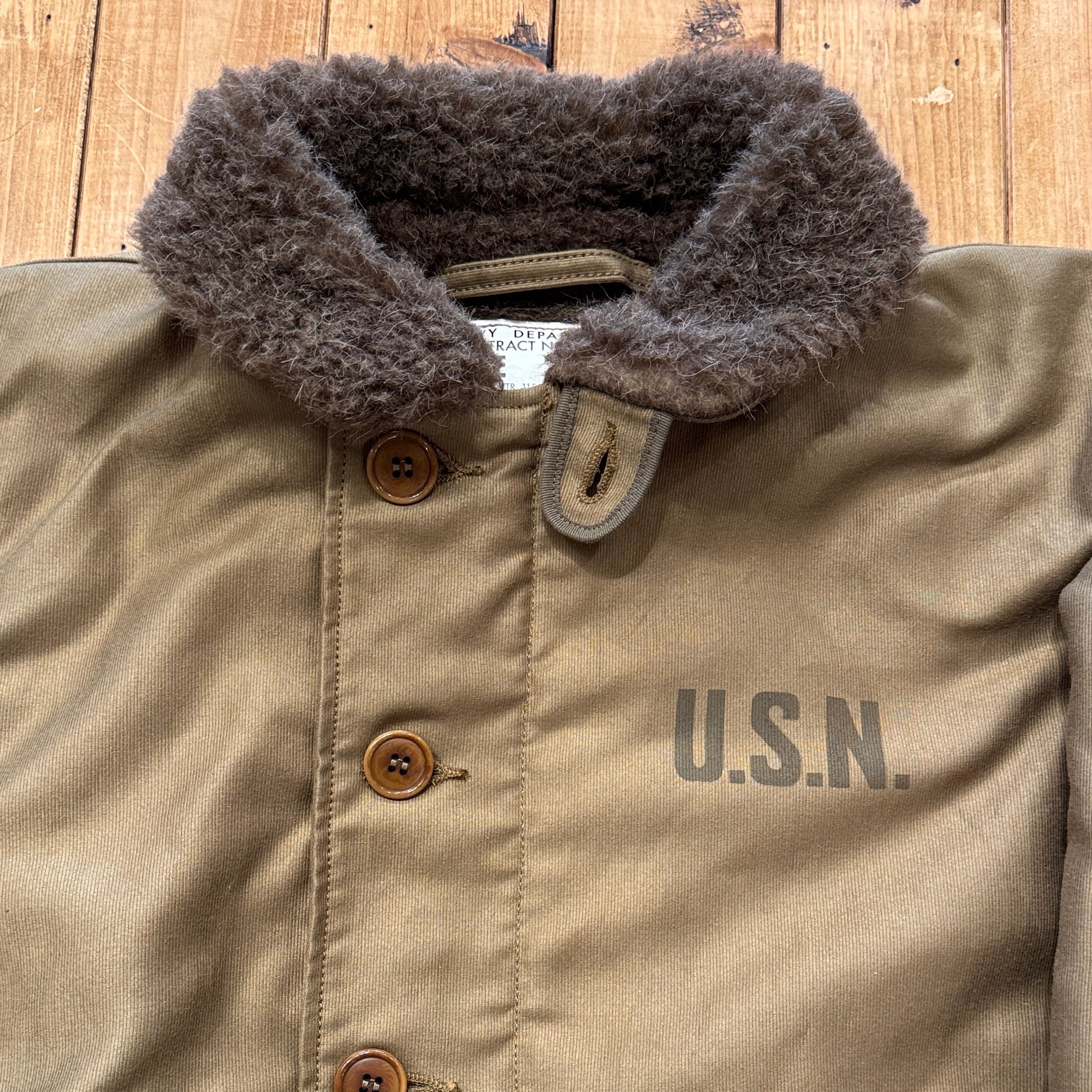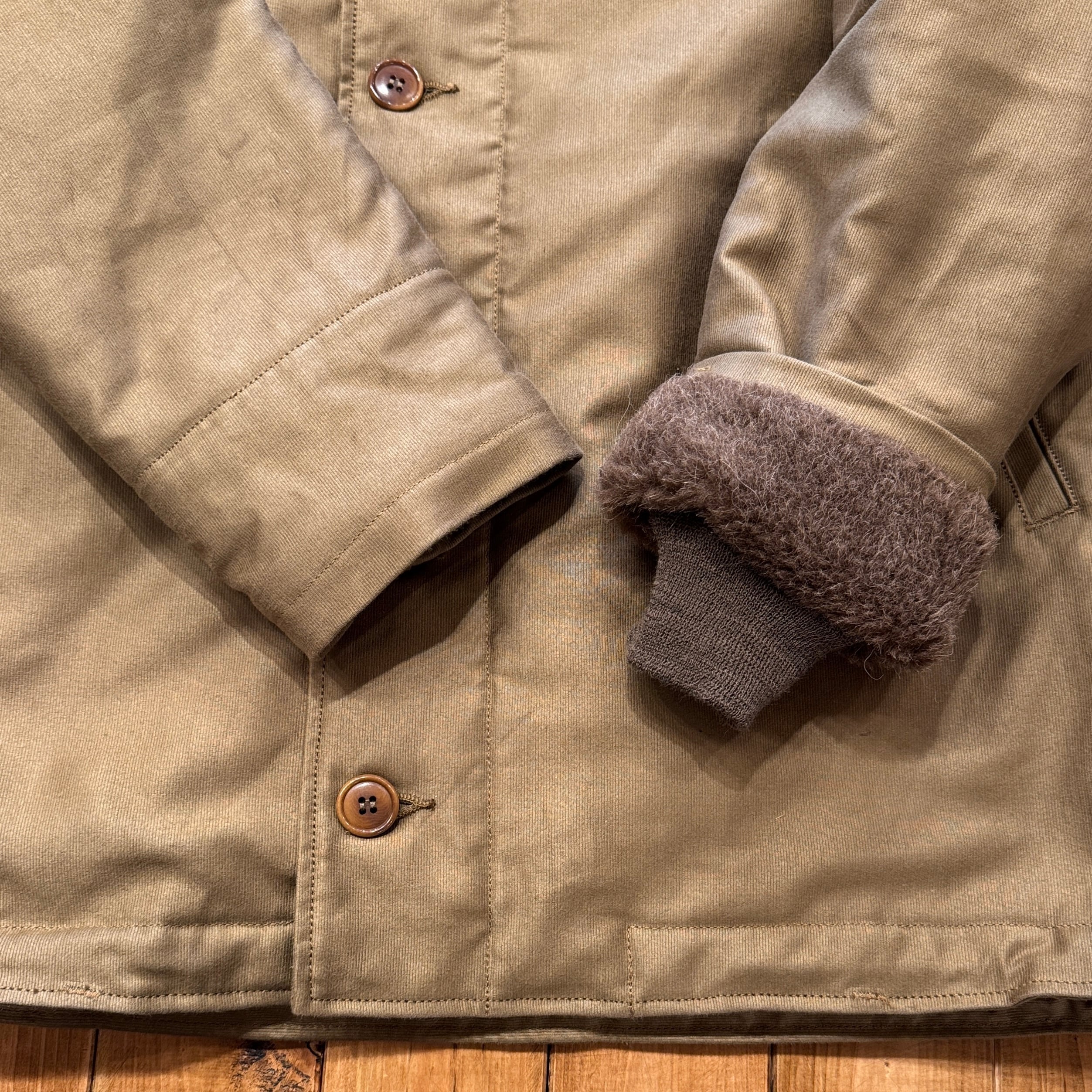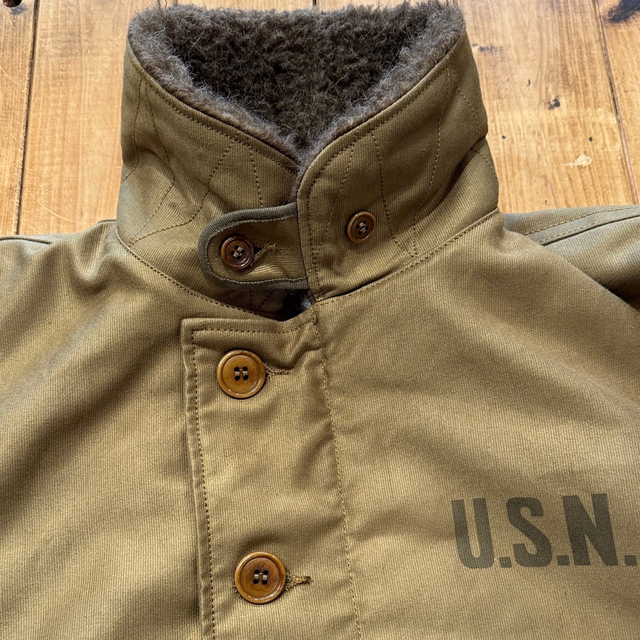 アメリカ海軍艦艇クルー向けに生産された代表的なデッキジャケットの初期型をモデルアップ。大戦末期から急ピッチで大量生産された余剰分がサープラスとして戦後の米国内に出回りモータースポーツに心酔する若者たちに受け入れられた。
