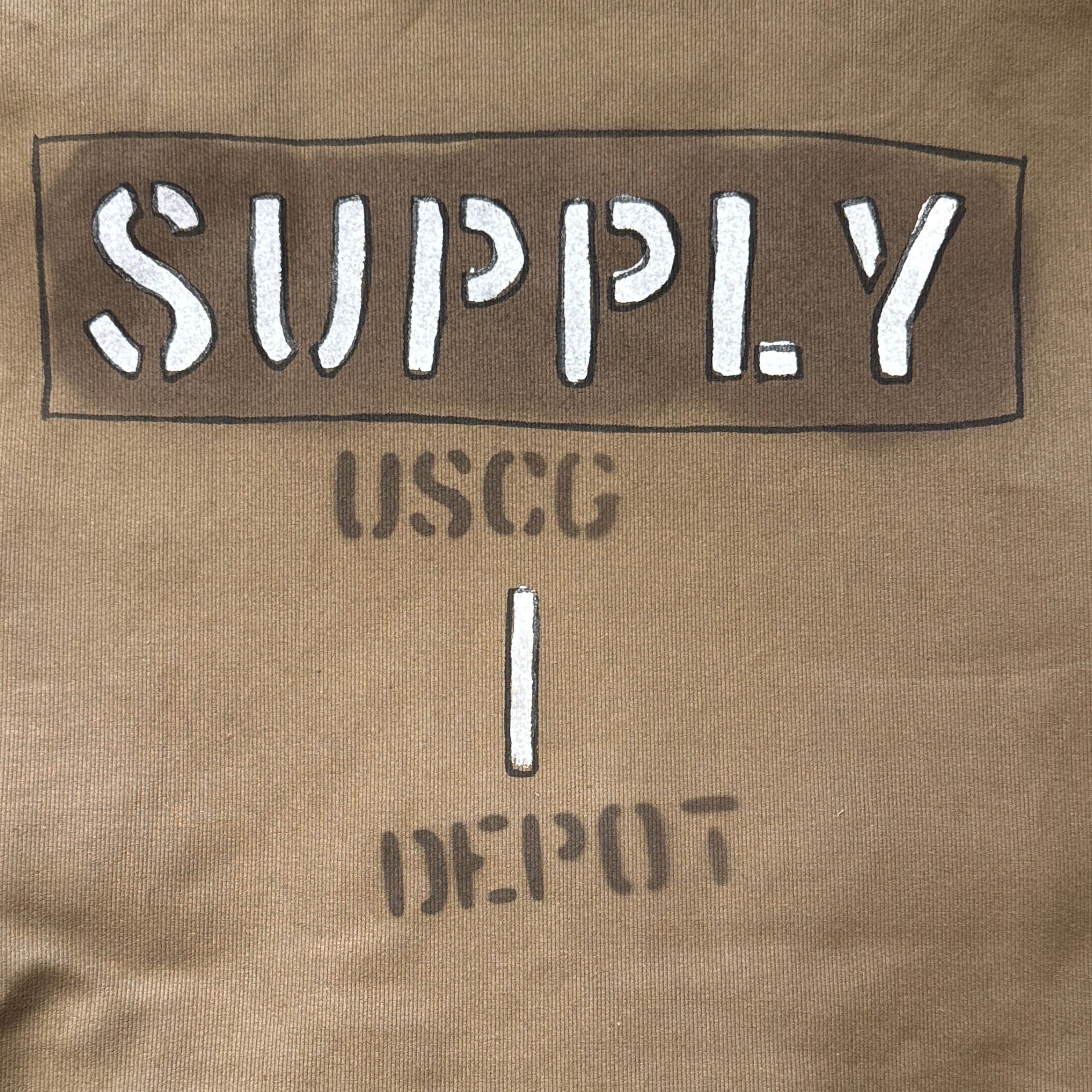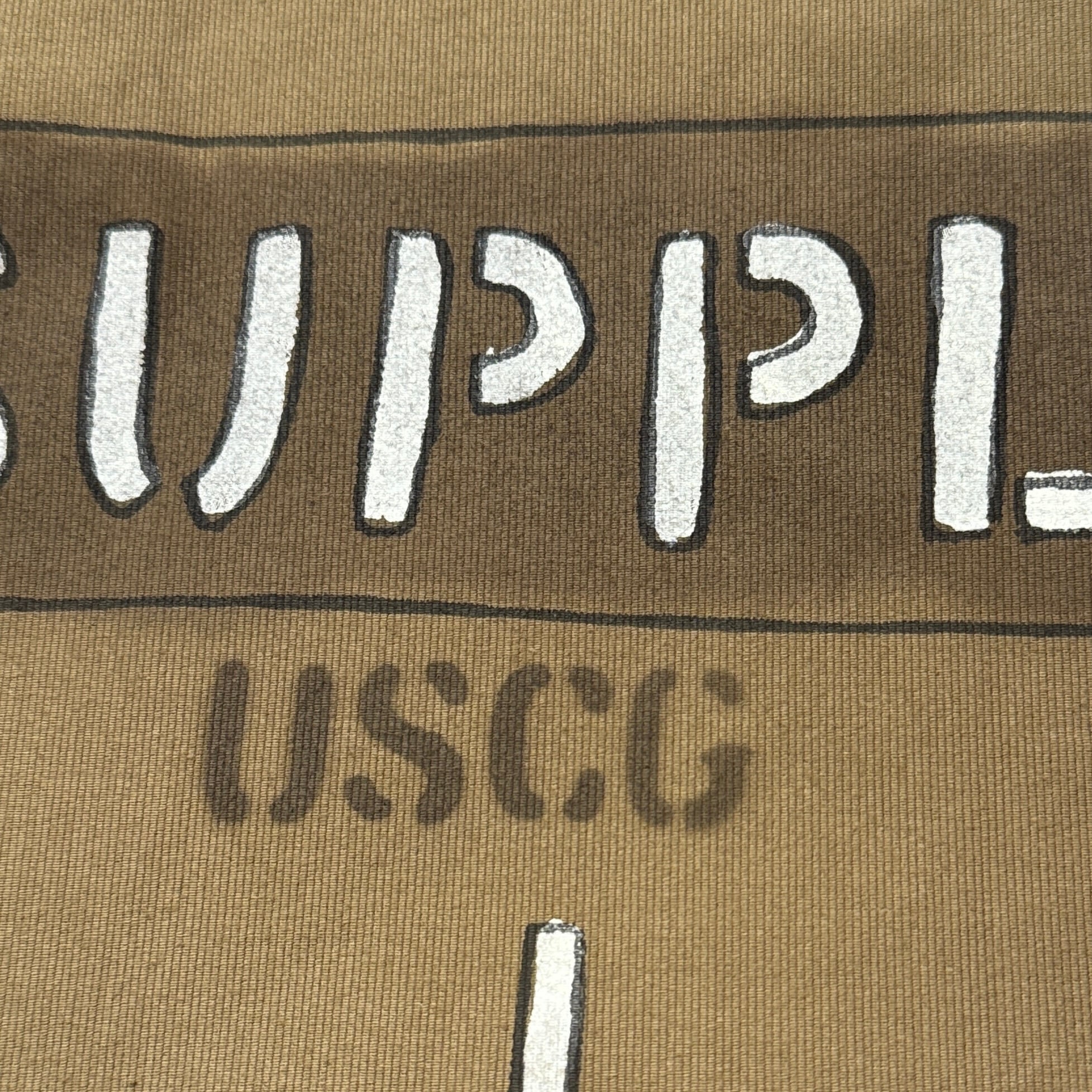 USCG補給部隊で実際に使われていた支給品管理を再現。洗い雰囲気のステンシルは物資分けや再支給時の実用本位なマーキングを感じさせる仕上がりです。
