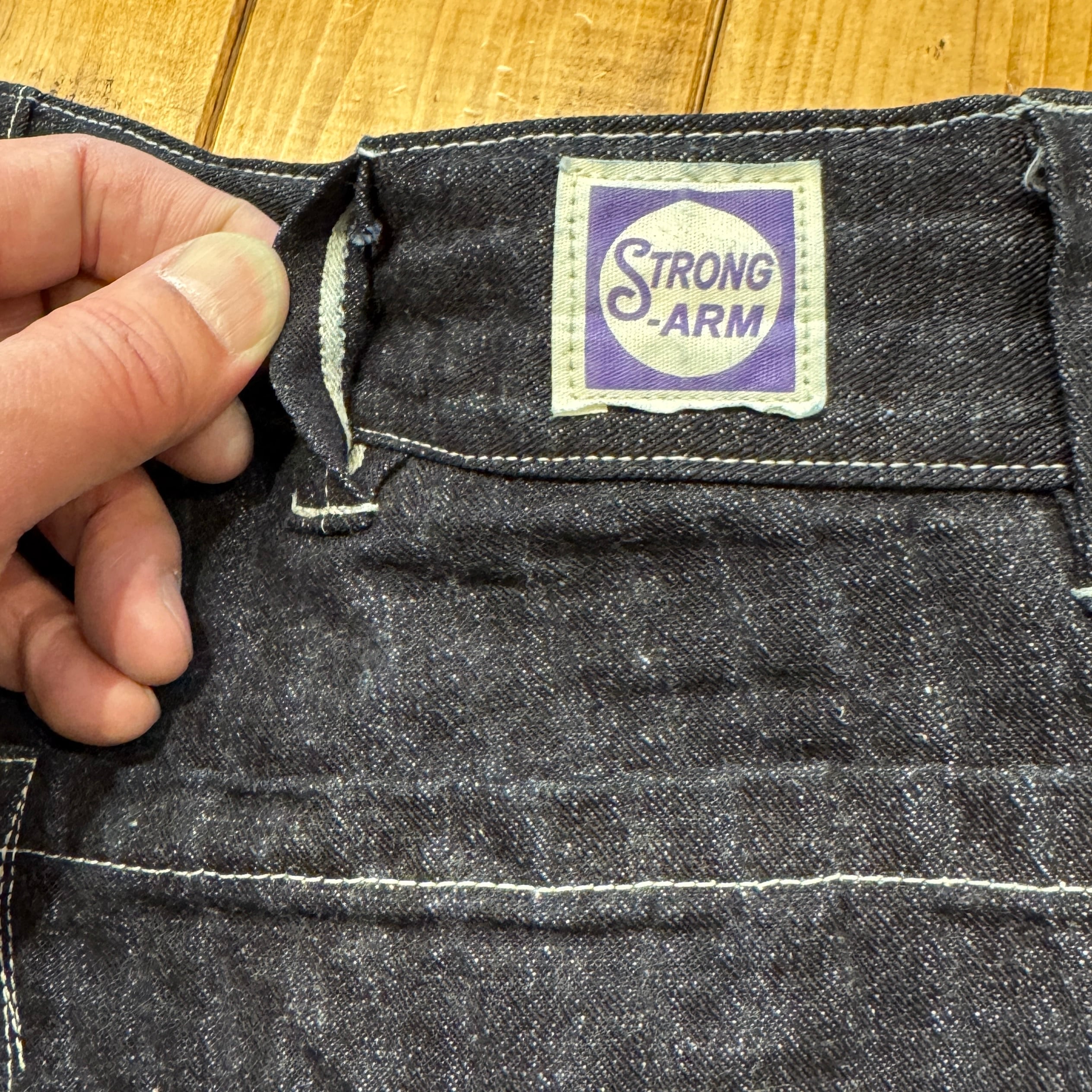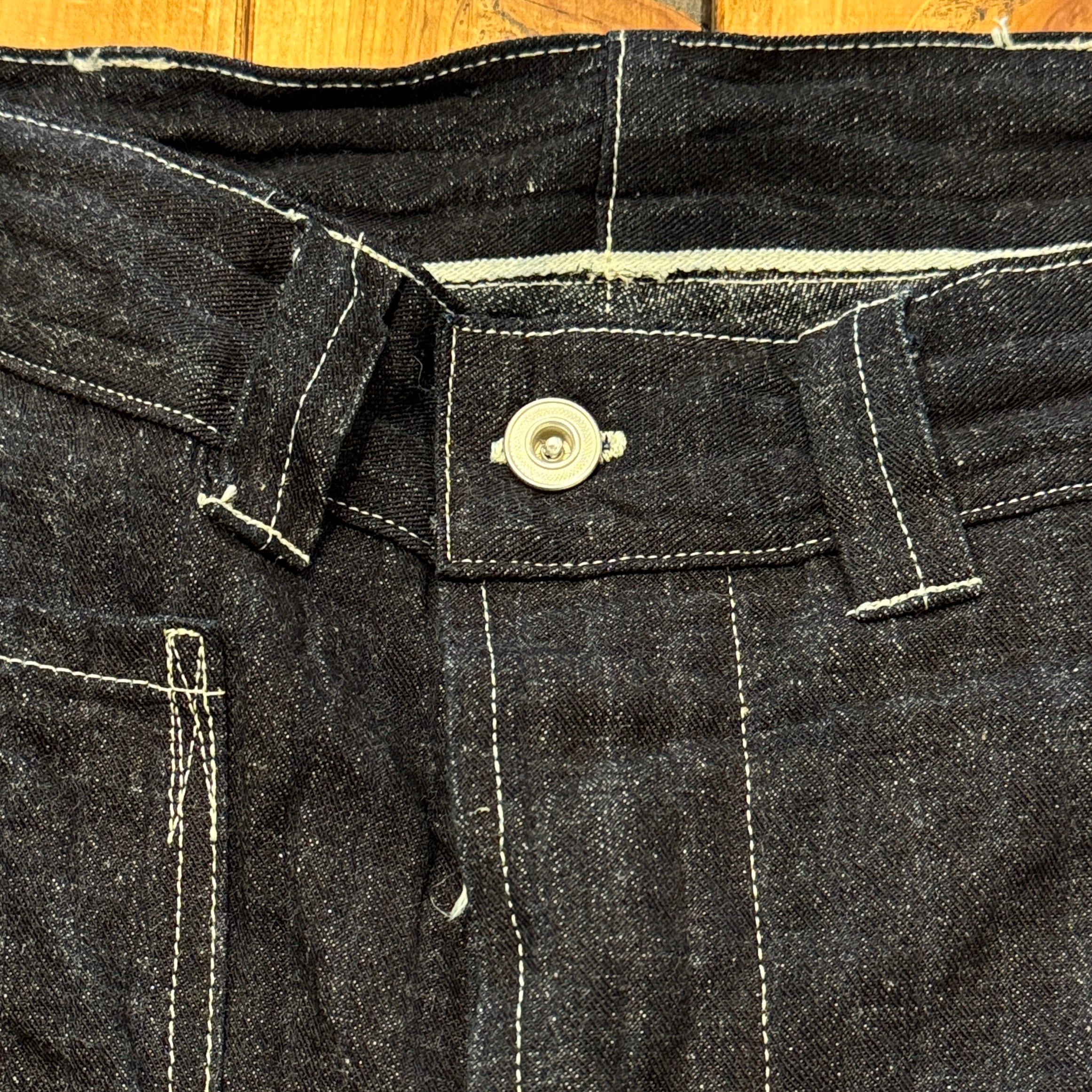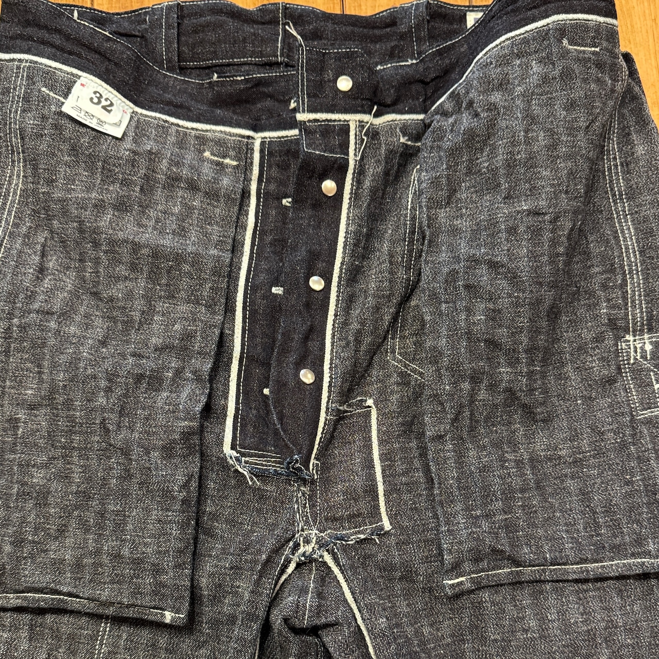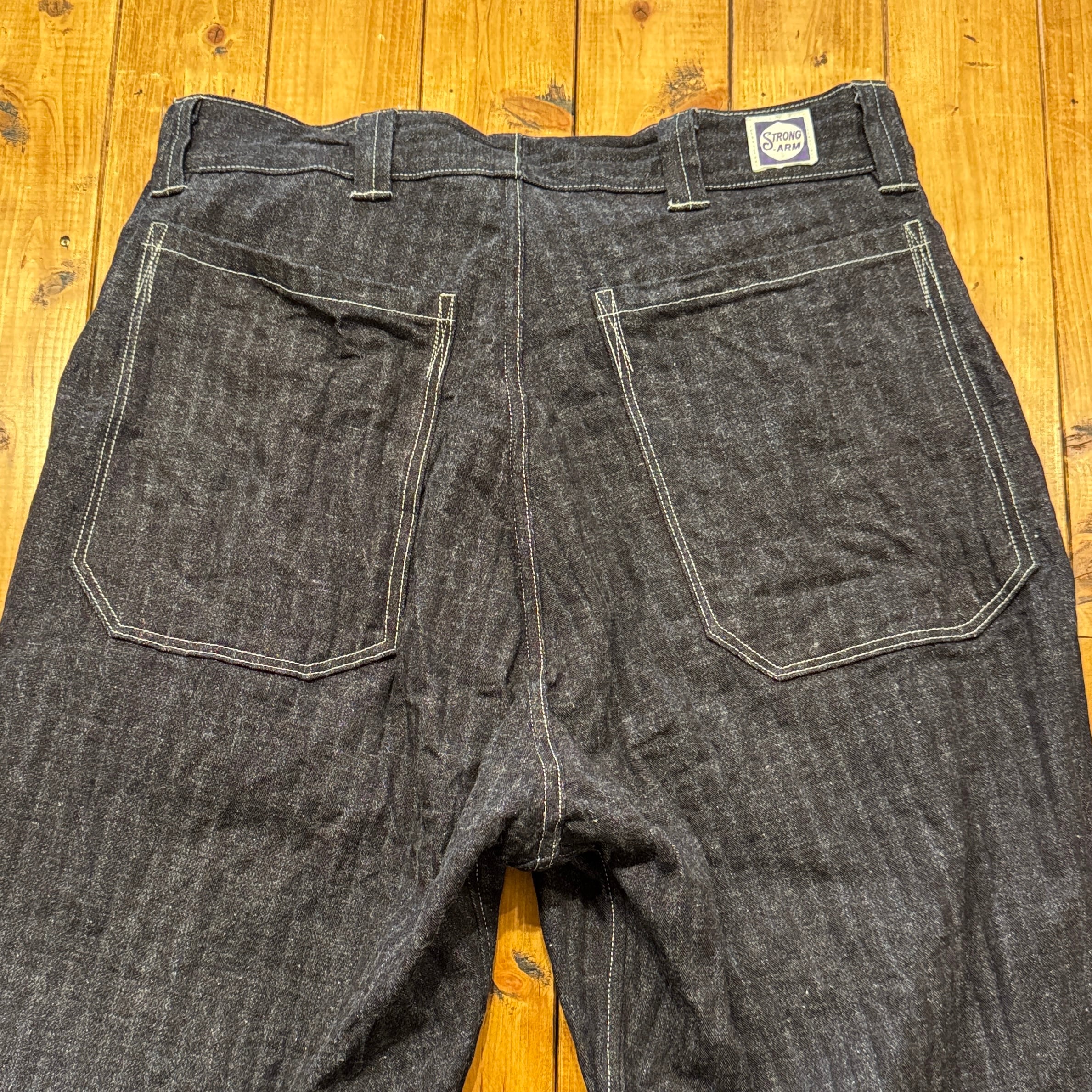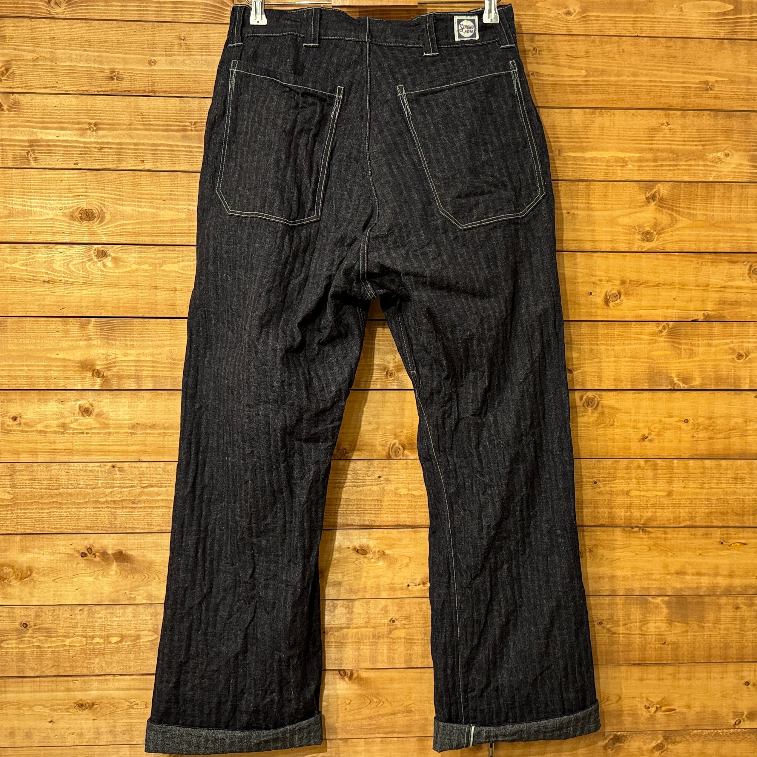 ユニークなデニムのワークパンツ。このメーカーの衣服のデザイン、構造に対する考え方は非常にユニークです。おそらくテントやギアなど、衣服以外のものを本業として作っていたのだと思います。ヒップとフロントのユニークなポケット、オーバーサイズのバックポケット、巻きデニムの脚がとても気に入っています。