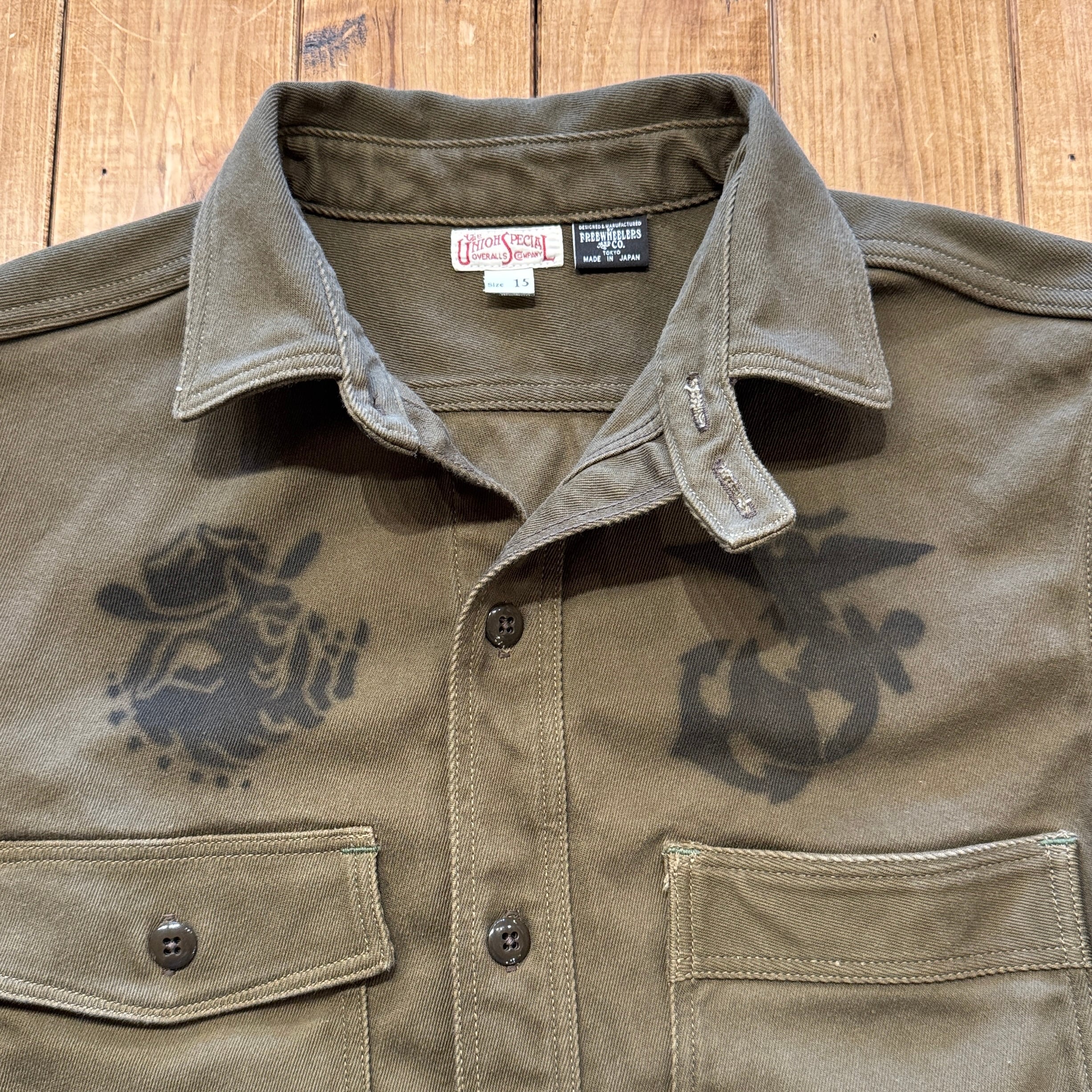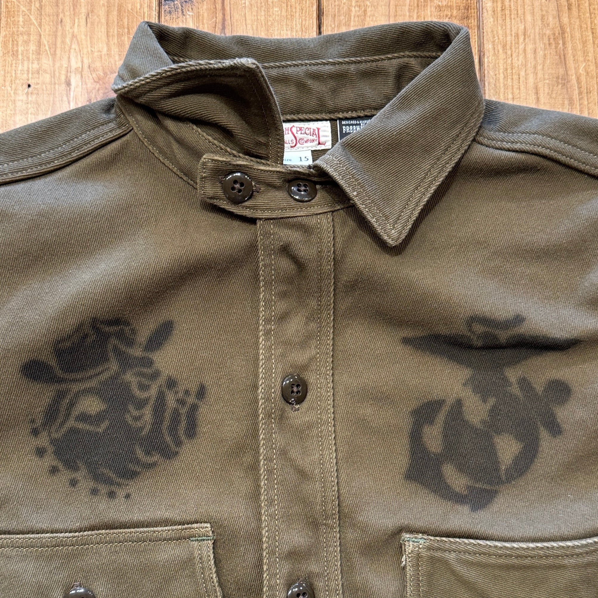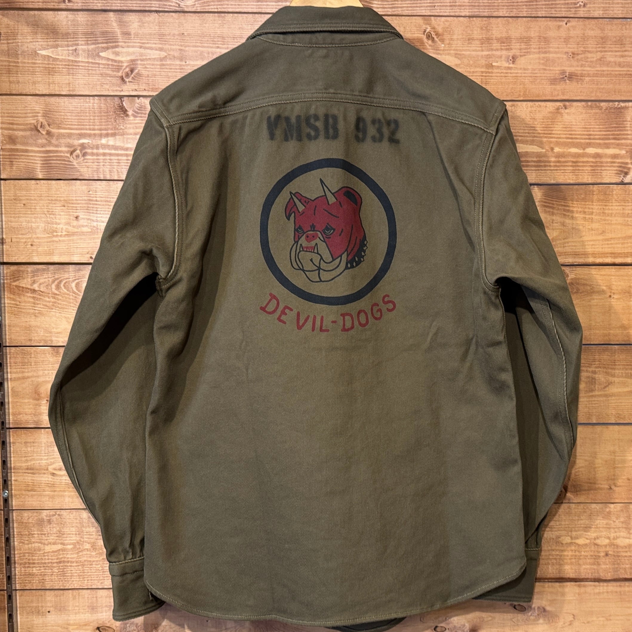 「1944 U.S.M.C. Marien Scout Bombing SQ932 "TEUFELHUND" Gemsa UNION SPECIAL OVERALLS 1940s MILITARY CUSTOM SHIRT」