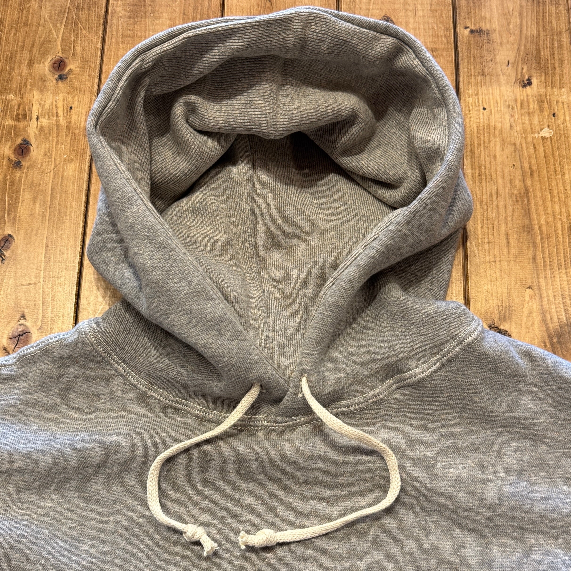 セットインスリーブの二本針タイプのフード付きモデルです。不変的な定番デザインながら、フード裏、ポケット口には特徴的なフライスリブを使用しているため、フードはさらにフィット感を高め、フロントポケットはアクセントだけでなく、補強の役割も果たしています。