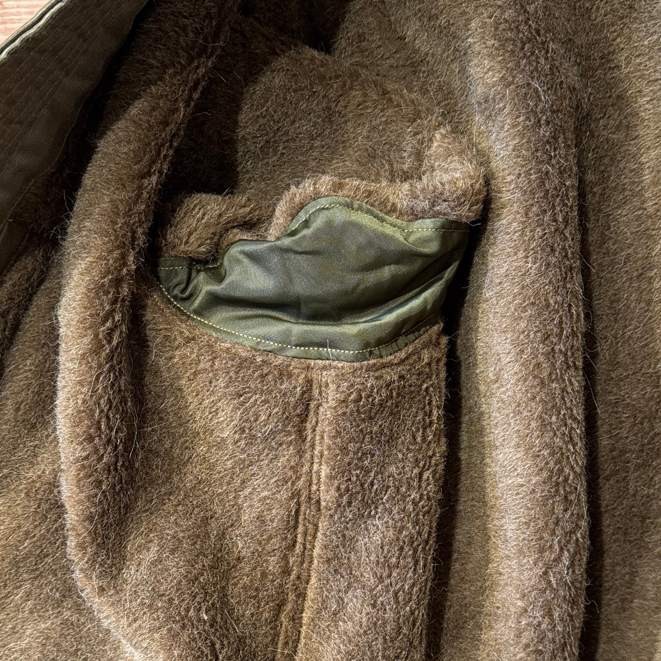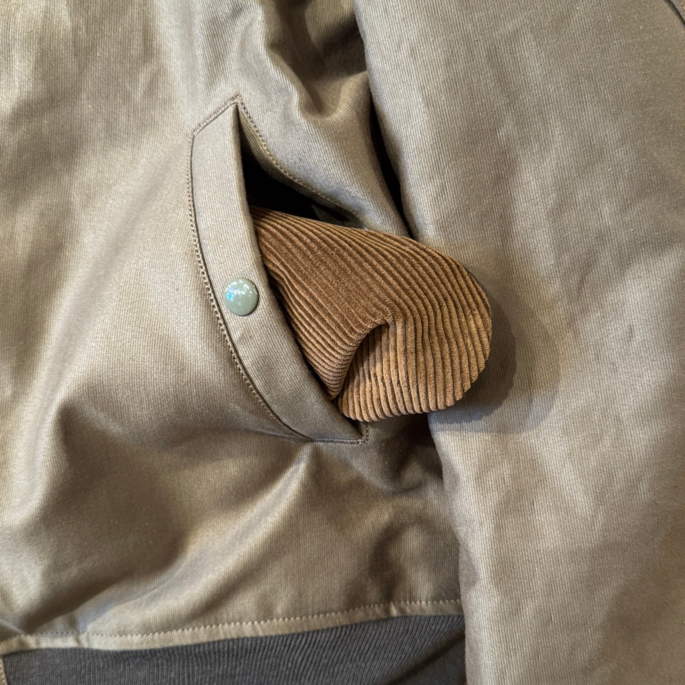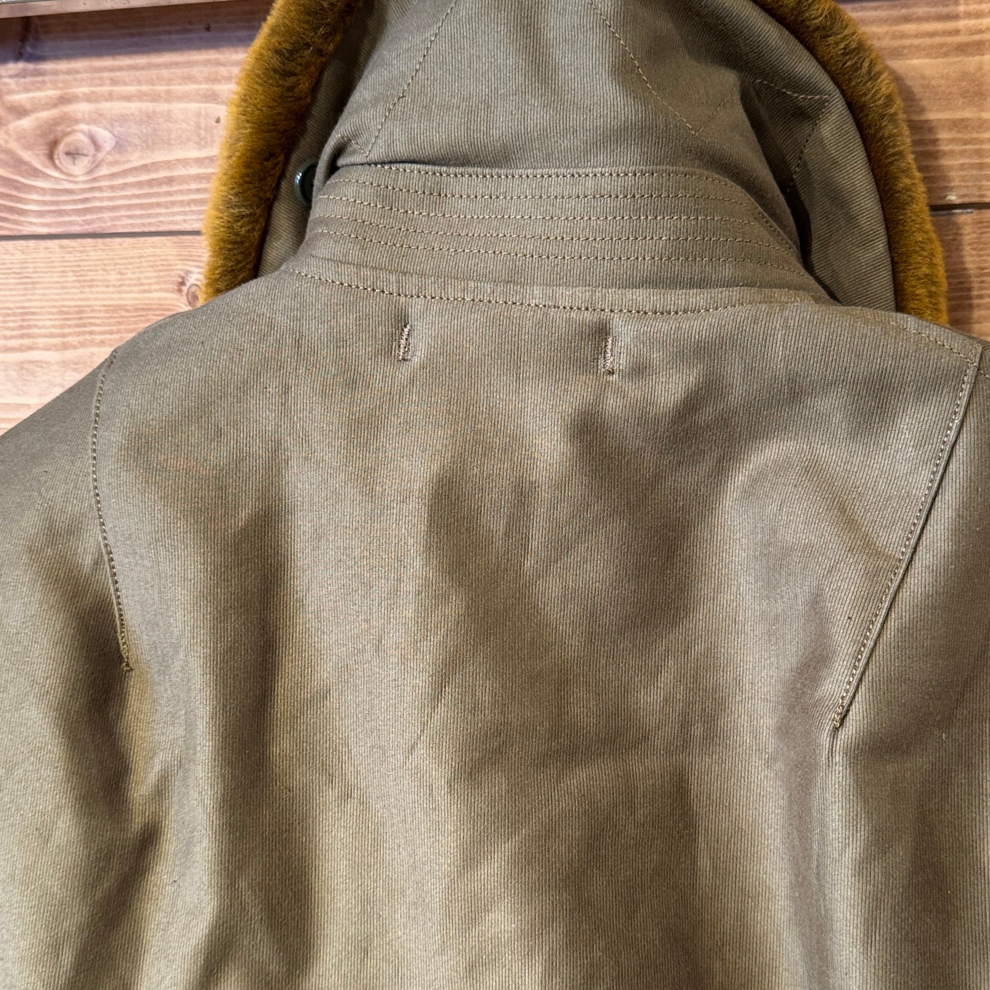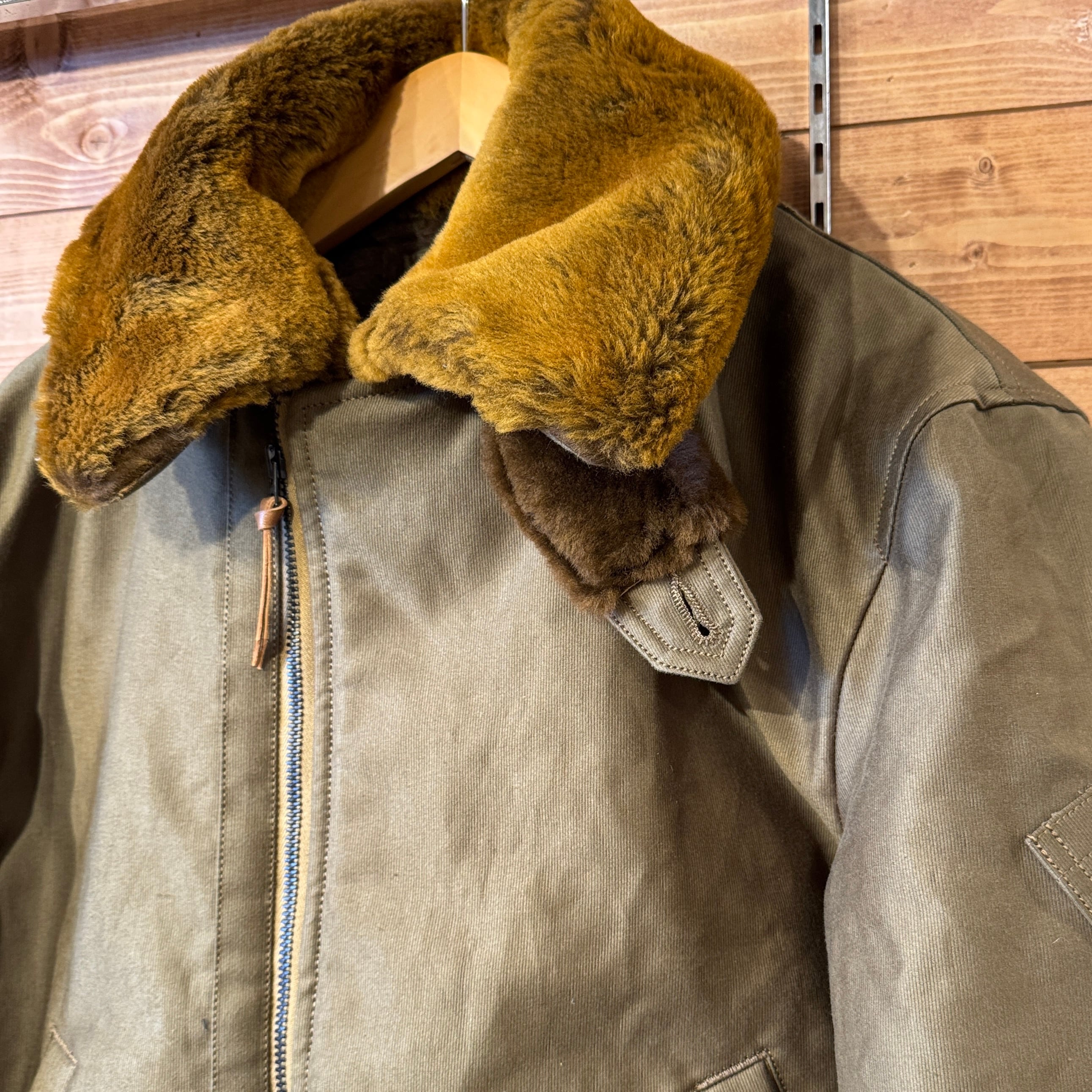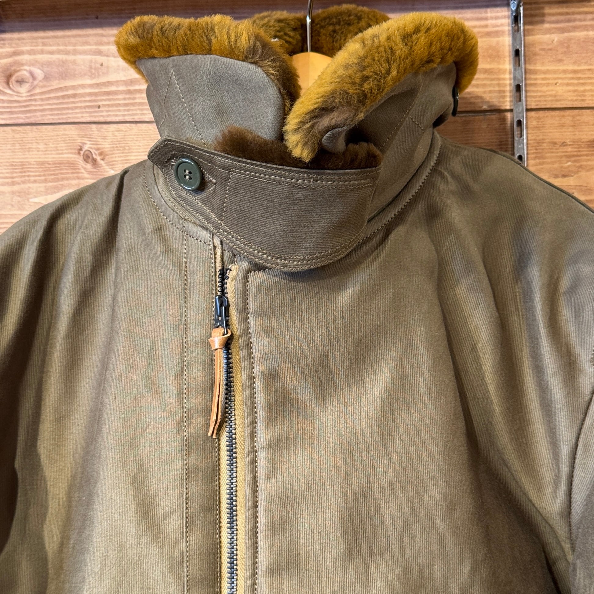 贅沢な襟のムートン、民間仕様で高密度グログランを表地にライニングはアルパカ。フロントポケットの袋はヘビーコーデュロイを使用。ヘビーデューティーな仕様となっております。