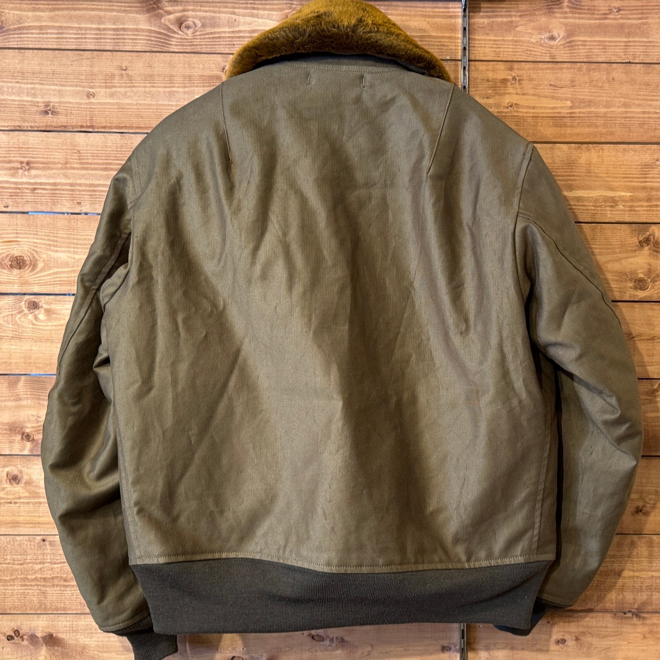 WWⅡ期、軍支給品だけでなく、民間テーラー仕立てを愛用するパイロットも存在。クラシックなB-15を民間バージョンで復刻し、当時の自由な着こなしを再現しtが1着。
