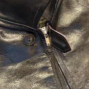 ファスナーは30年代の角型TALONを元にしたオリジナルで、ファスナーテープエンドも実物同様の金属プレートをカシメで止めるタイプを組み合わせ、胸のボールチェーンも実物同様のボールチェーンをオリジナル刻印で製作して取り付けてあります。
