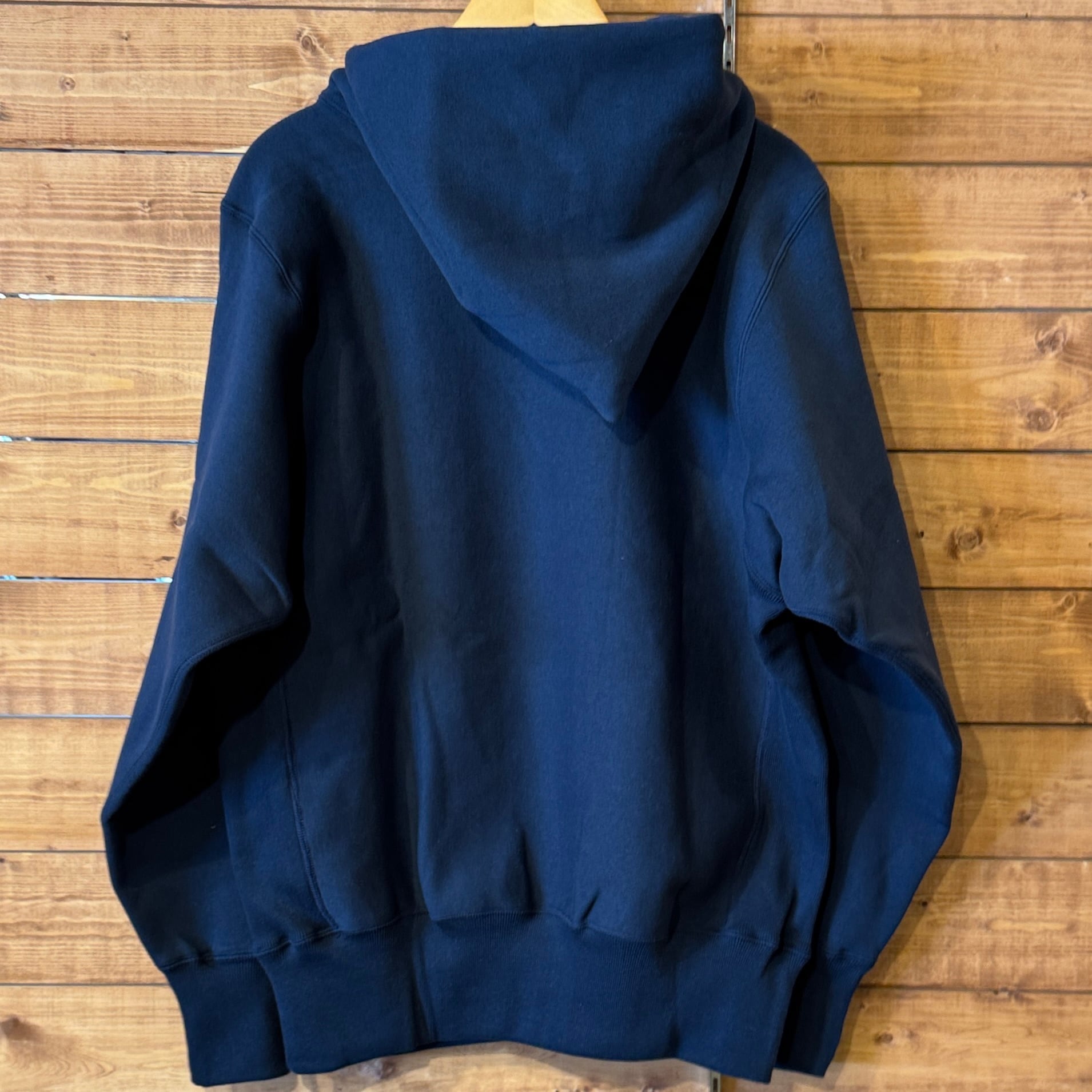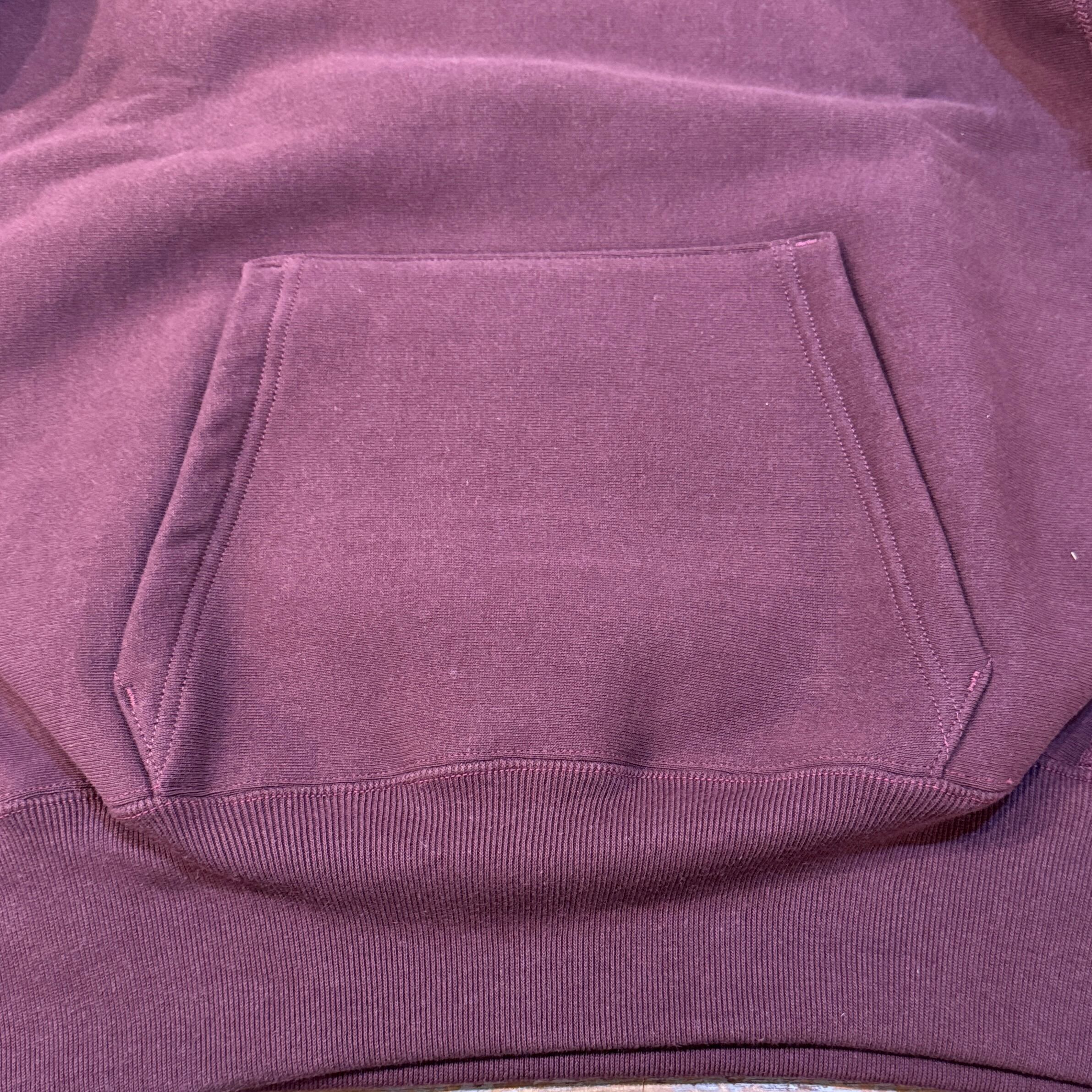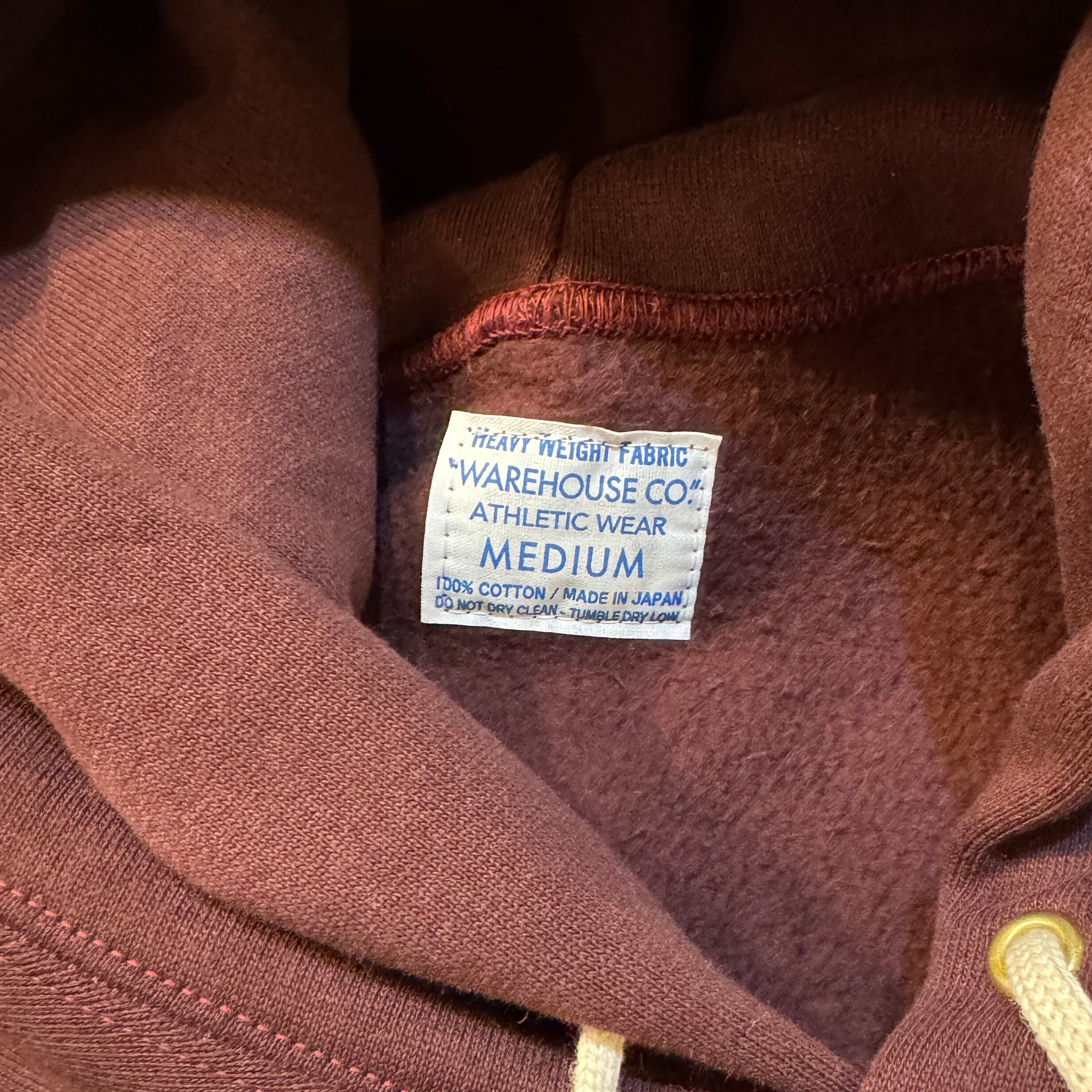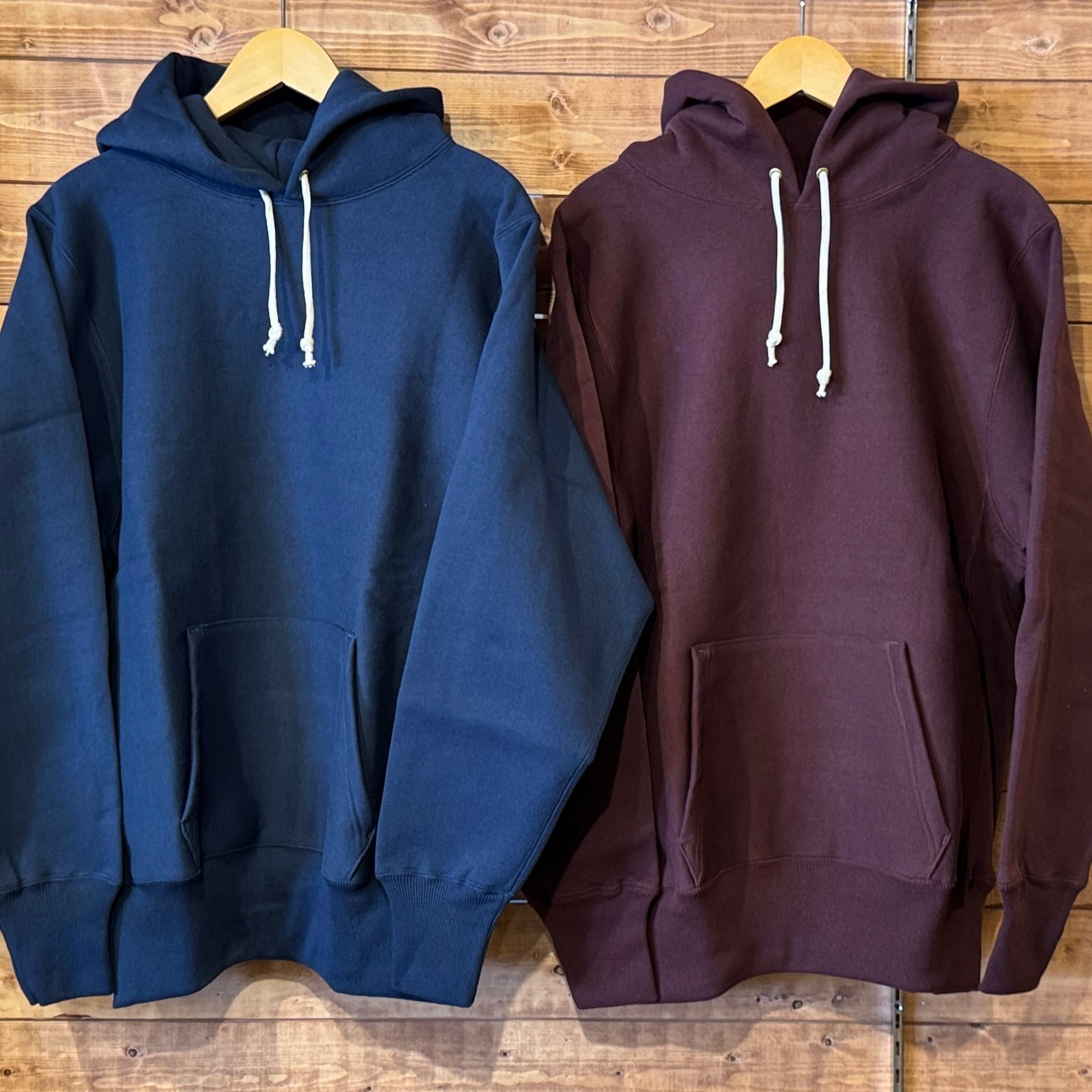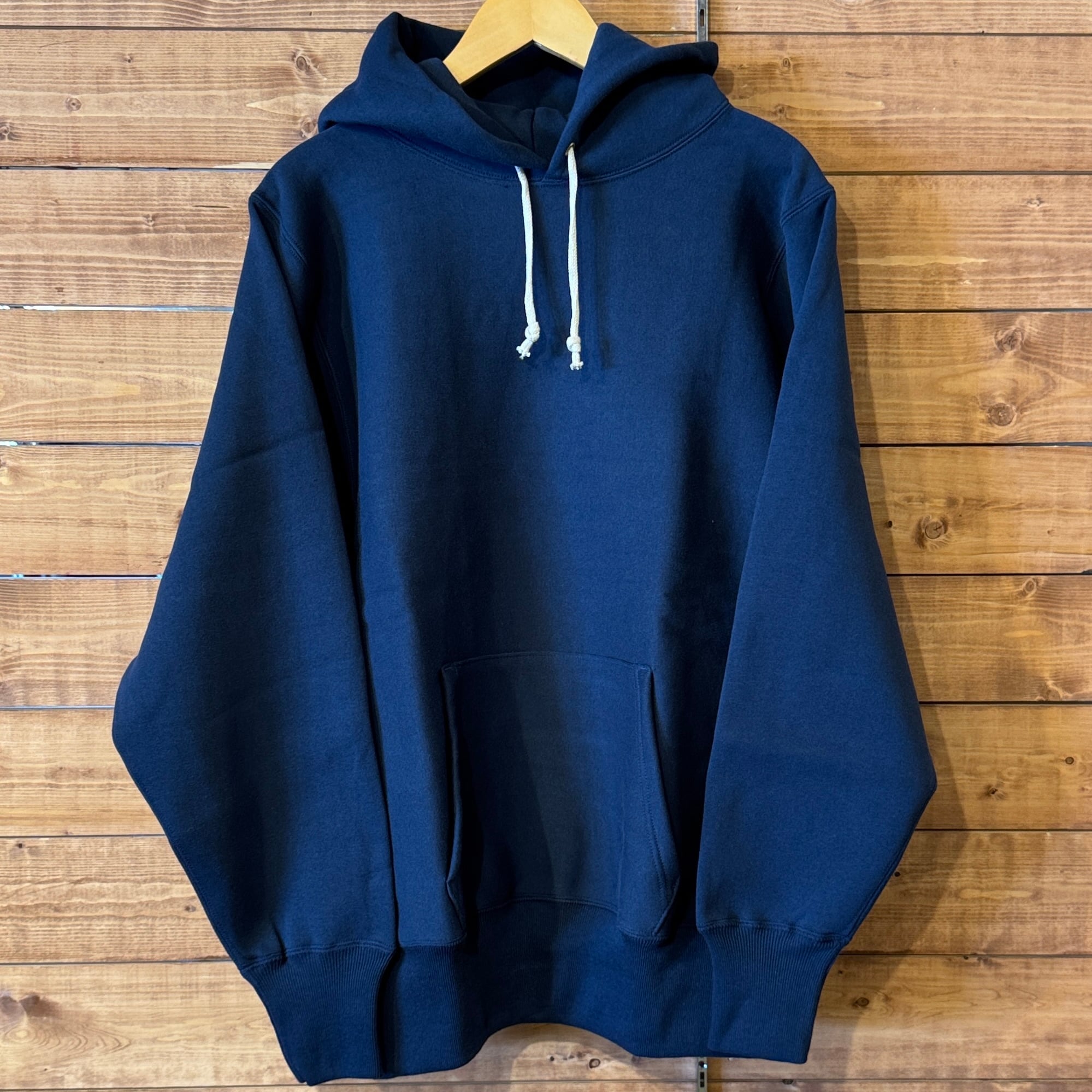 このスウェットシャツを手に取ってみると、まずは、その「重さ」に驚くことでしょう。1960年代のRWタイプを再現するために試行錯誤を繰り返した新開発のスウェットシャツ。縮みを軽減するために生地をヨコ使いした画期的なこのアスレチックスウェットは、サイドのパネル使いなどに目をとられがちであるが、その特性は「糸」にあります。徹底した度詰めで編まれたその生地は、硬いが弾性があり、重いがふわりとした柔らかさがあります。そしてウエアハウスがこだわるのは生地の「目」です。「生地の目が立つ」というのは、通常のスウェットでは、「タテ筋」だが、こちらRWモデルでは「ヨコ筋」です。目を立たせるために、糸の番手はもちろん、度の詰め方など、何度もその組み合わせを変えました。そしてたどり着いたのが、スウェットとしては珍しい「引きそろえ」である。通常はそれぞれ1本の糸を表、中、裏に組み合わせて編むスウェットであるが、引きそろえにすることで度を詰めやすくなりました。さらに吊り編み機の特性により、生地の弾性を保ったまま硬く、表面の目を立たせることができるようになったのです。歴史上、後発に採用されるシンカー編み機では、同じ糸の規格でもってしても、硬くなりすぎてしまい、編上がりの違いは歴然としているといいます。出来上がった生地の「重さ」は、染色の際、また縫製においても熟練の作業を要します。染色の際には通常よりも負荷がかかるし、縫製でも軽いニットウェアのようにはいきません。生地、染色、縫製、すべての工程においての協力による「バトンリレー」が、このRWタイプのスウェットの「重み」なのです。そして、このRWモデルのオリジナルについても後述しておきます。驚くべきことに、「タタキタグ」と通称される60年代のヴィンテージの、生地の破れた部分を解析すると、「引きそろえ」の糸が露出していたというのです。アスレチックウェアとして、牧歌的でありながらも妥協することなく開発を試みた先駆者の精神は、「限りなきディテールの追求」によってこそ発掘されるのです。