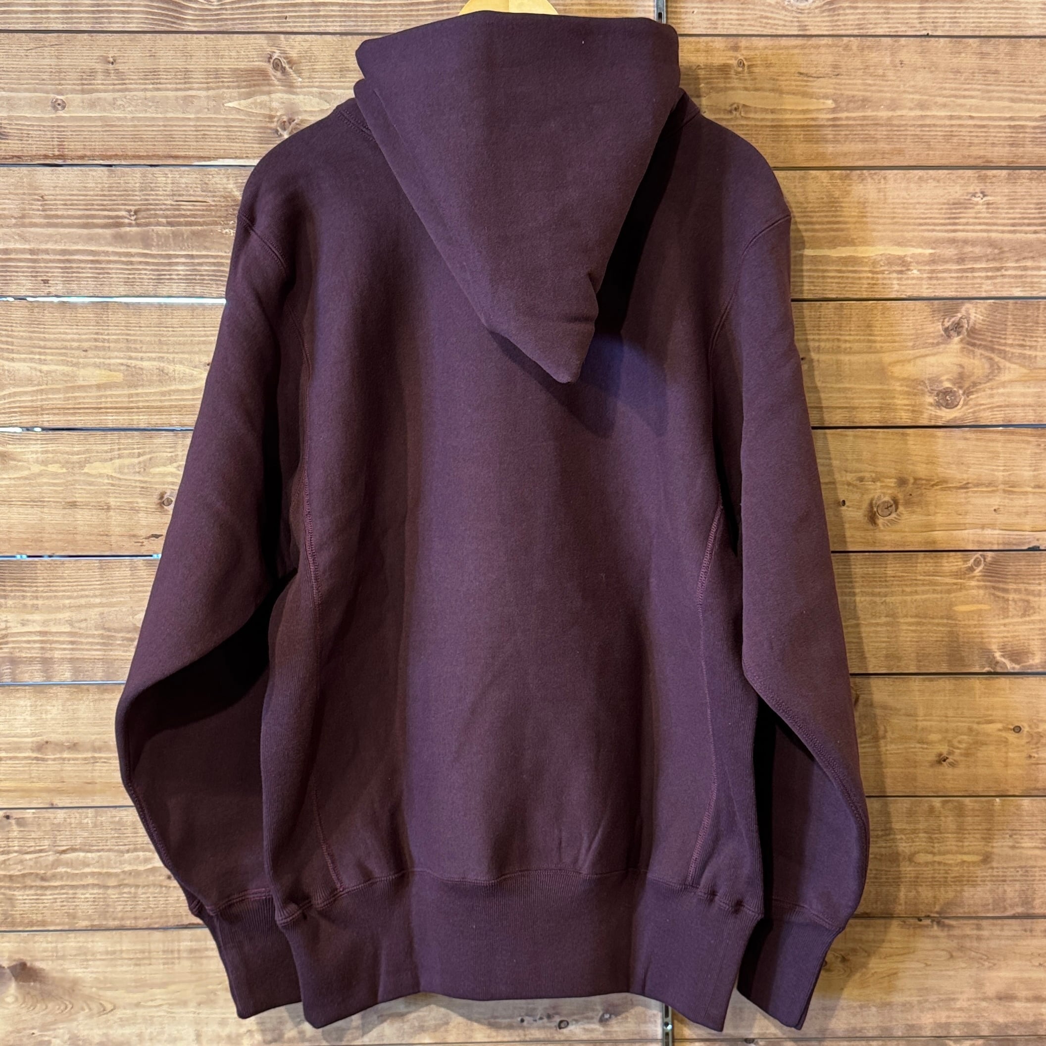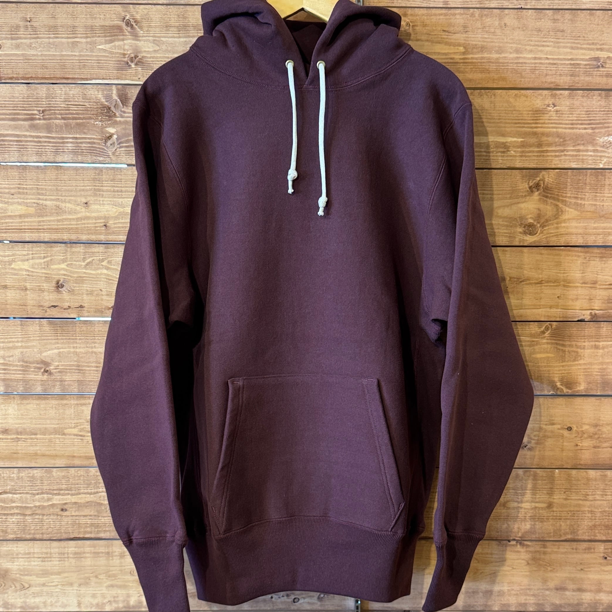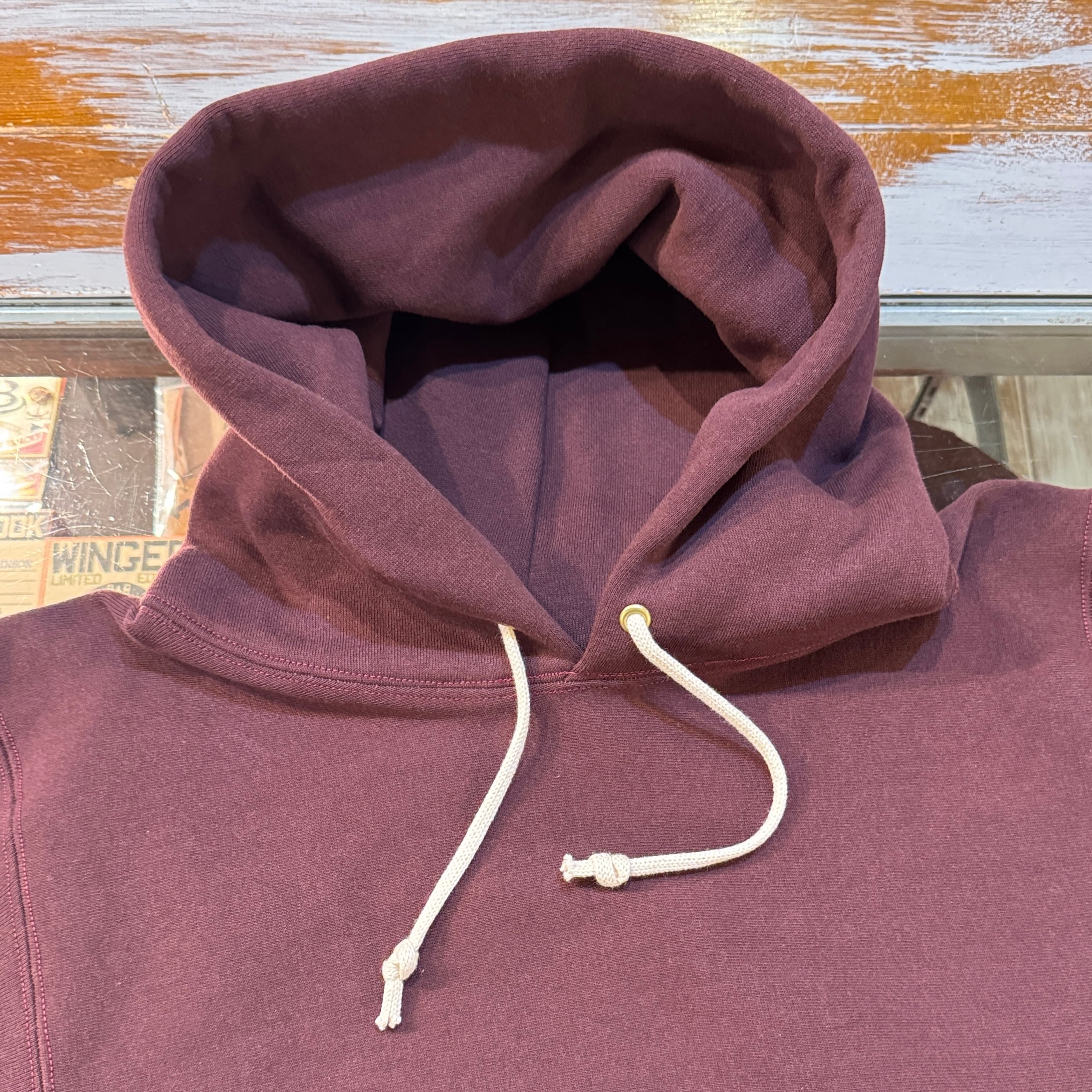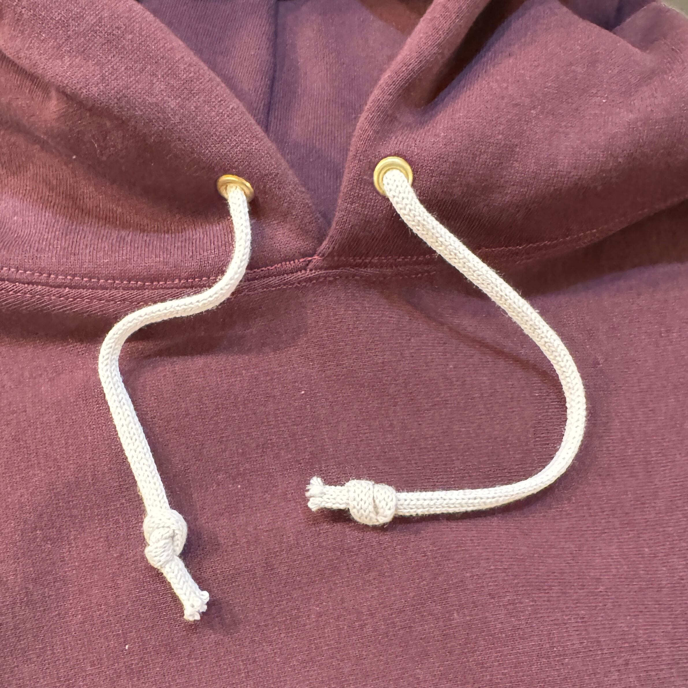 このスウェットシャツを手に取ってみると、まずは、その「重さ」に驚くことでしょう。1960年代のRWタイプを再現するために試行錯誤を繰り返した新開発のスウェットシャツ。縮みを軽減するために生地をヨコ使いした画期的なこのアスレチックスウェットは、サイドのパネル使いなどに目をとられがちであるが、その特性は「糸」にあります。徹底した度詰めで編まれたその生地は、硬いが弾性があり、重いがふわりとした柔らかさがあります。そしてウエアハウスがこだわるのは生地の「目」です。「生地の目が立つ」というのは、通常のスウェットでは、「タテ筋」だが、こちらRWモデルでは「ヨコ筋」です。目を立たせるために、糸の番手はもちろん、度の詰め方など、何度もその組み合わせを変えました。そしてたどり着いたのが、スウェットとしては珍しい「引きそろえ」である。通常はそれぞれ1本の糸を表、中、裏に組み合わせて編むスウェットであるが、引きそろえにすることで度を詰めやすくなりました。さらに吊り編み機の特性により、生地の弾性を保ったまま硬く、表面の目を立たせることができるようになったのです。歴史上、後発に採用されるシンカー編み機では、同じ糸の規格でもってしても、硬くなりすぎてしまい、編上がりの違いは歴然としているといいます。出来上がった生地の「重さ」は、染色の際、また縫製においても熟練の作業を要します。染色の際には通常よりも負荷がかかるし、縫製でも軽いニットウェアのようにはいきません。生地、染色、縫製、すべての工程においての協力による「バトンリレー」が、このRWタイプのスウェットの「重み」なのです。そして、このRWモデルのオリジナルについても後述しておきます。驚くべきことに、「タタキタグ」と通称される60年代のヴィンテージの、生地の破れた部分を解析すると、「引きそろえ」の糸が露出していたというのです。アスレチックウェアとして、牧歌的でありながらも妥協することなく開発を試みた先駆者の精神は、「限りなきディテールの追求」によってこそ発掘されるのです。