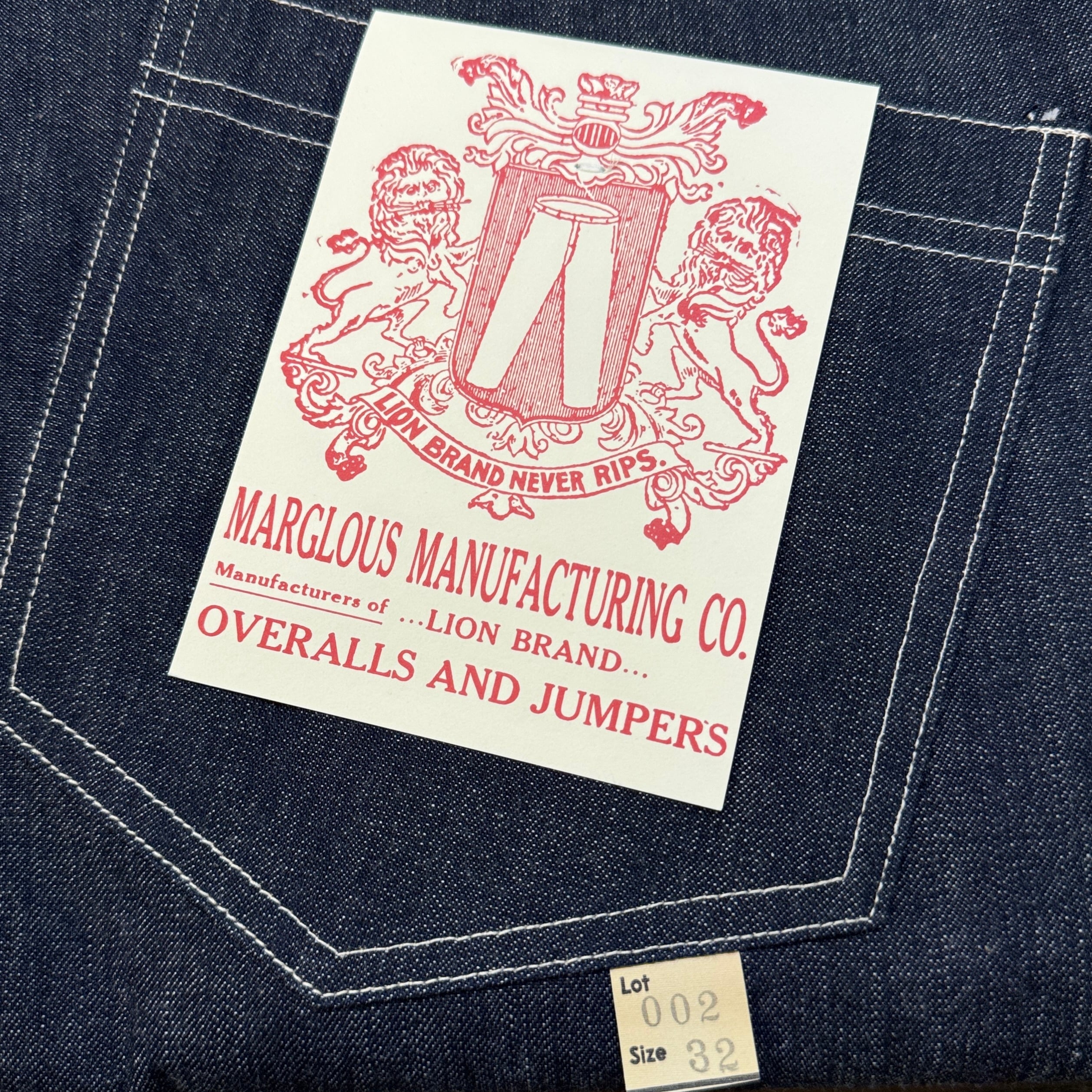 主要縫製:本縫い、折り伏せ縫い(LION BRANDの特徴的な縫製)