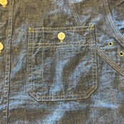フロント、バックの肩周り、エルボーと生地が二重に補強がされたシャンブレーワークシャツ。