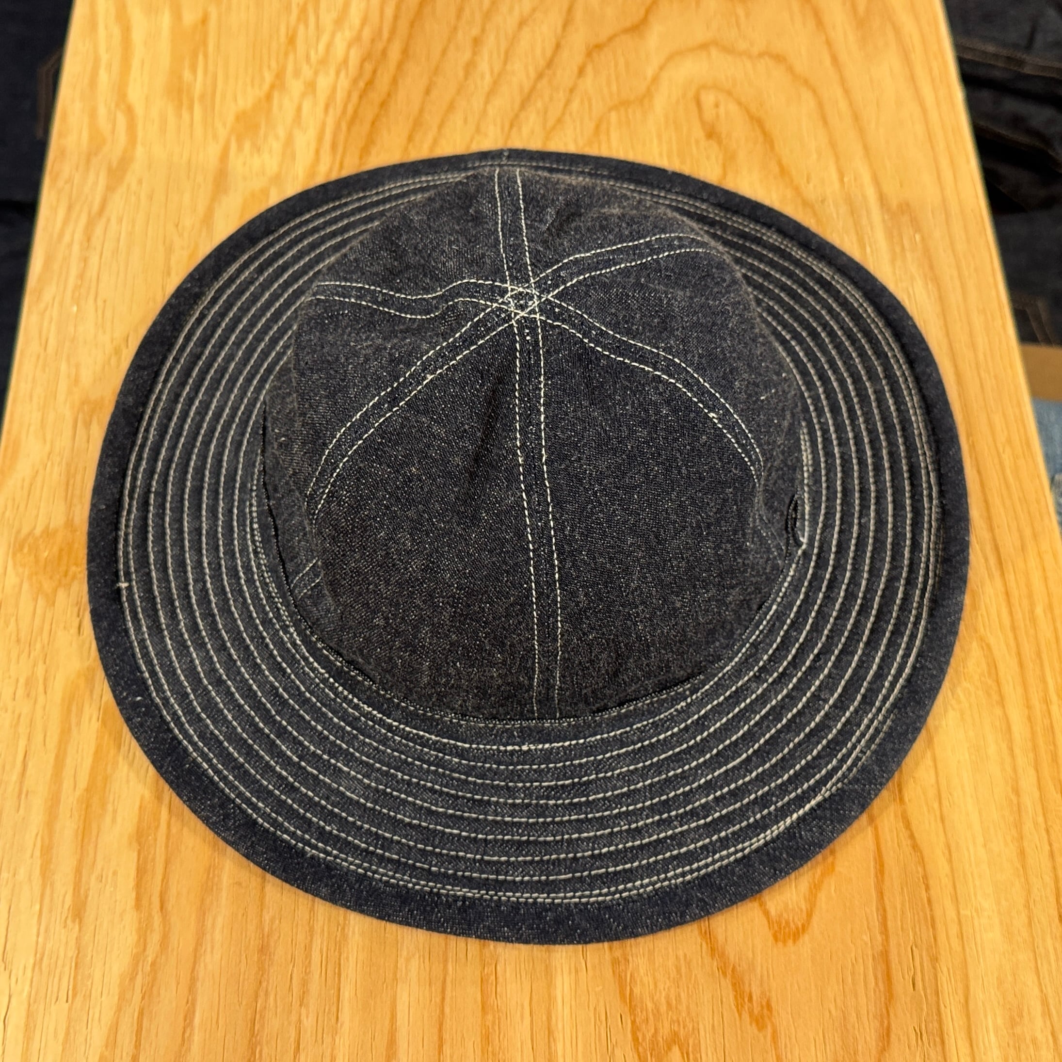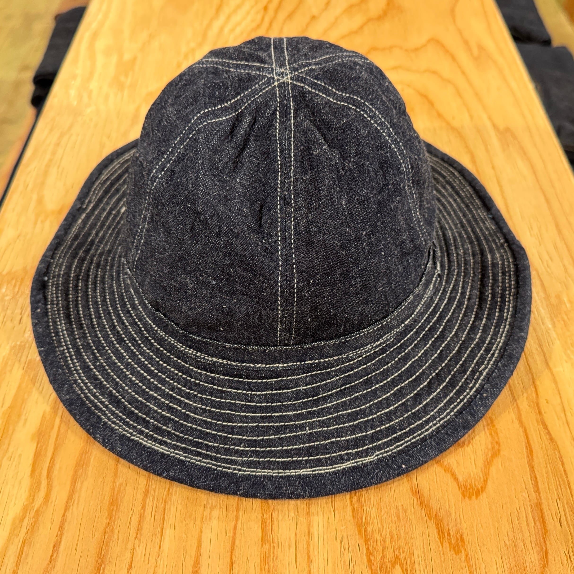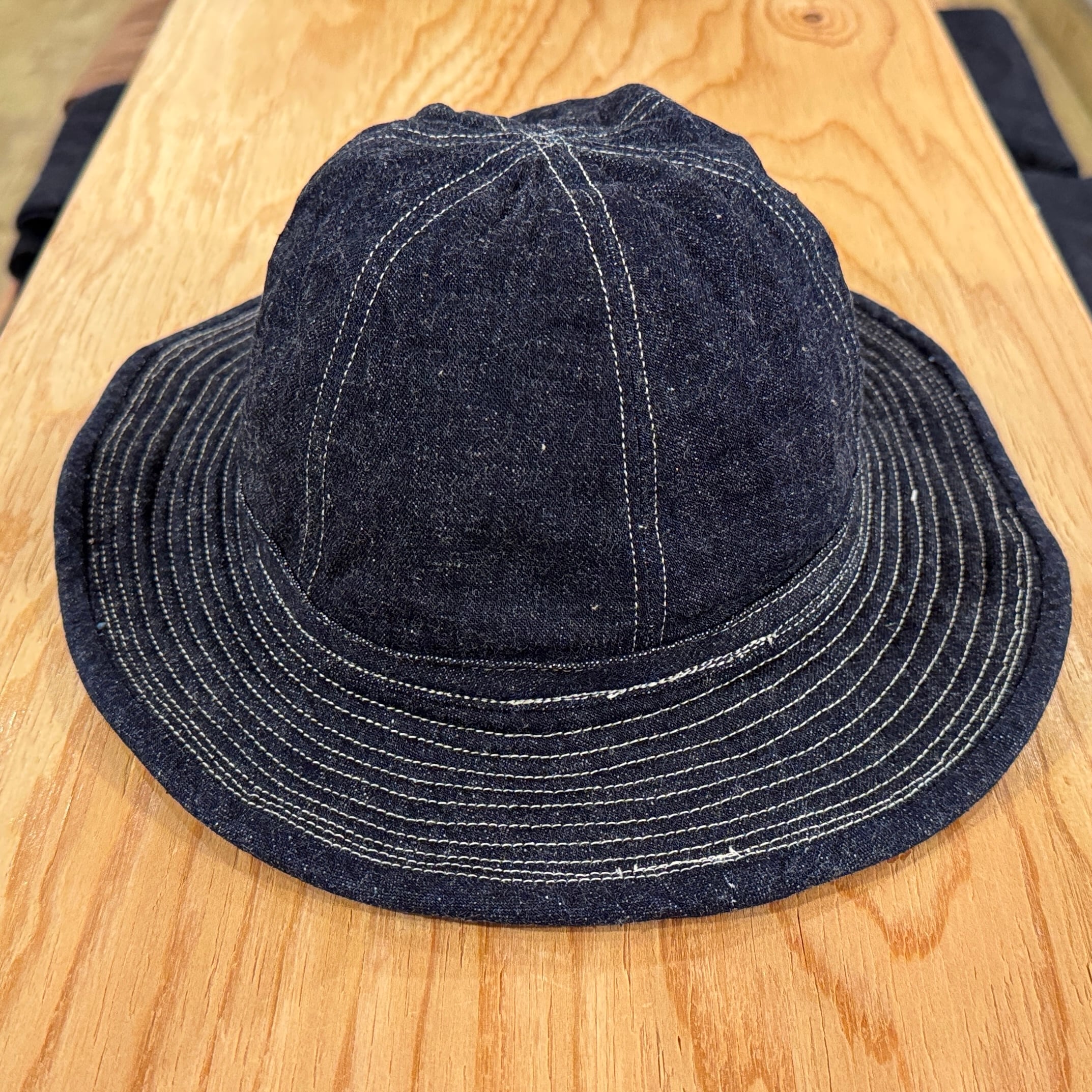 好評の4パネルアーミーハットに加え、濃いめのライトオンスインディゴデニム6パネルアーミーハットも新入荷。