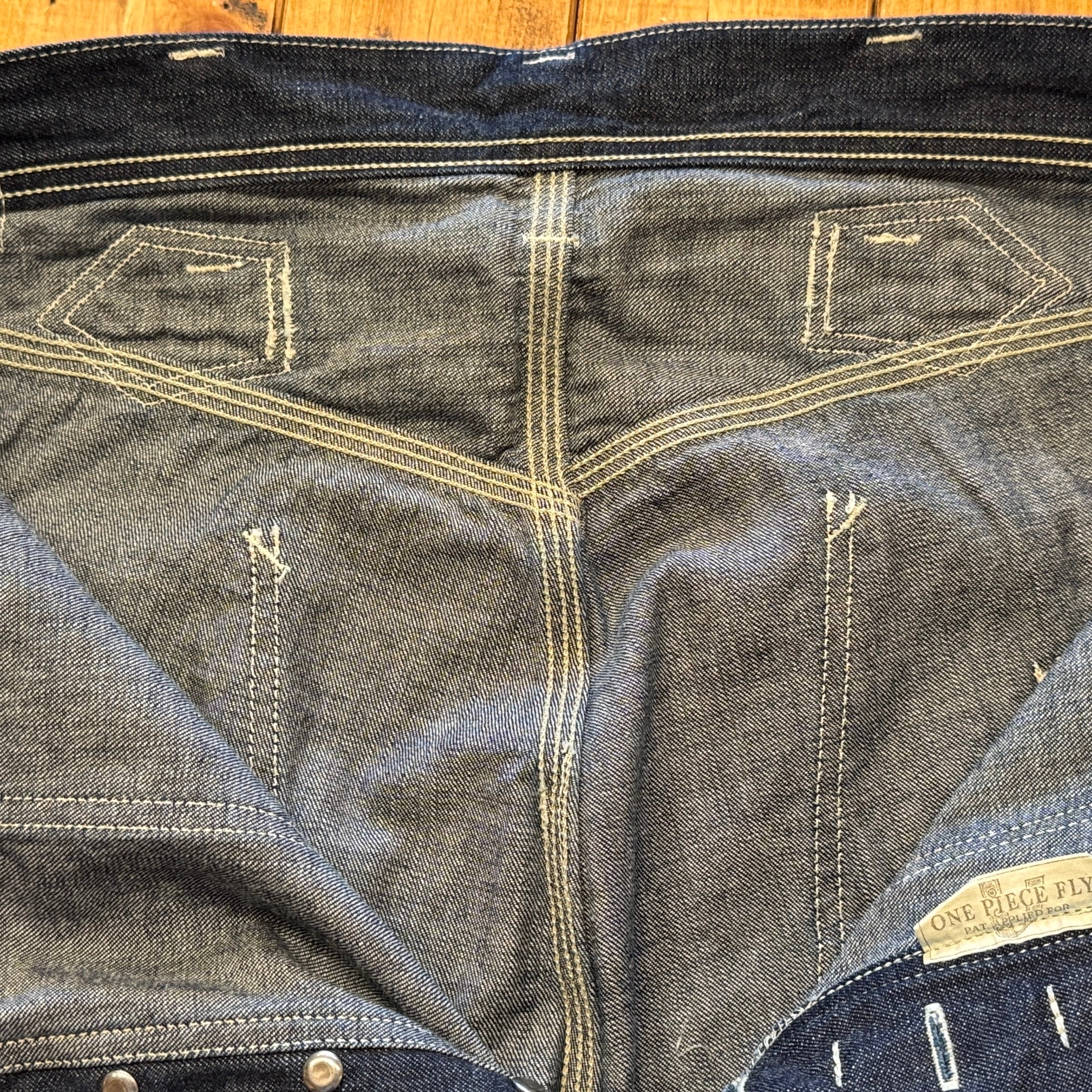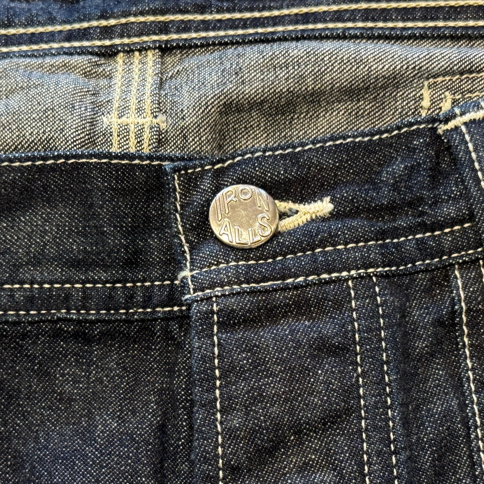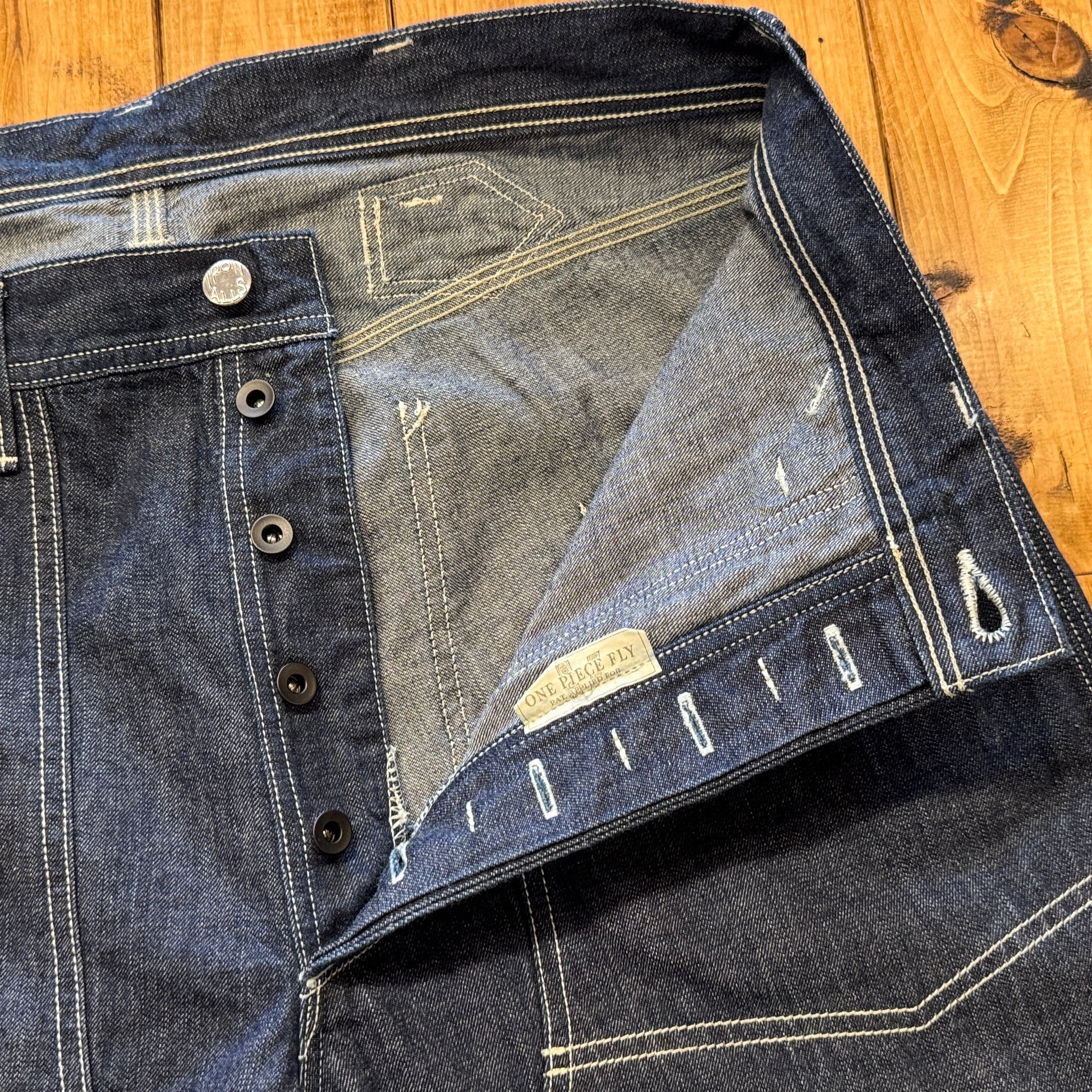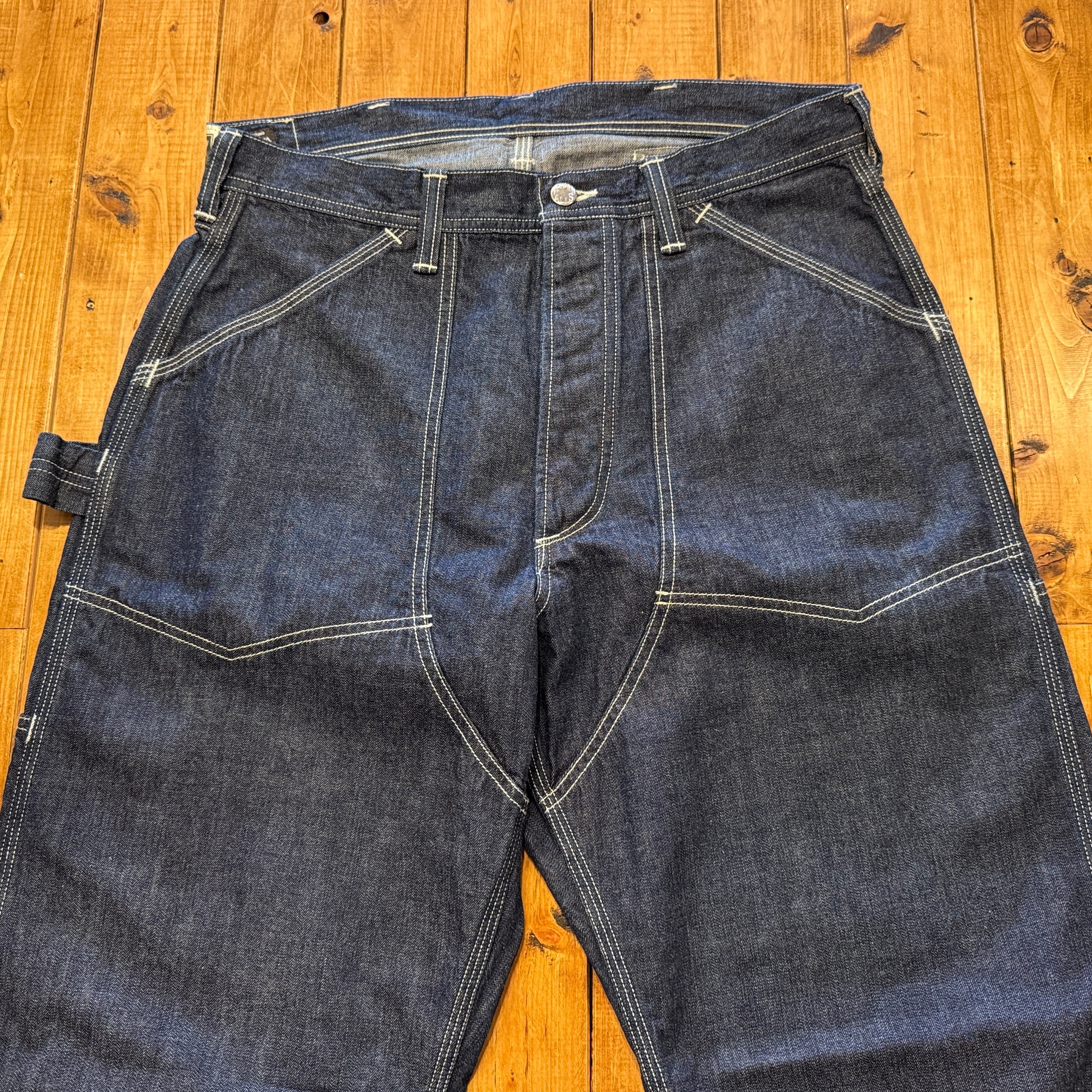 ダブルニー、トリプルステッチ、鉄ボタン、針バックル、両サイドツールポケット、ハンマーループも2箇所設けられたディティールもパーフェクトな1本です。