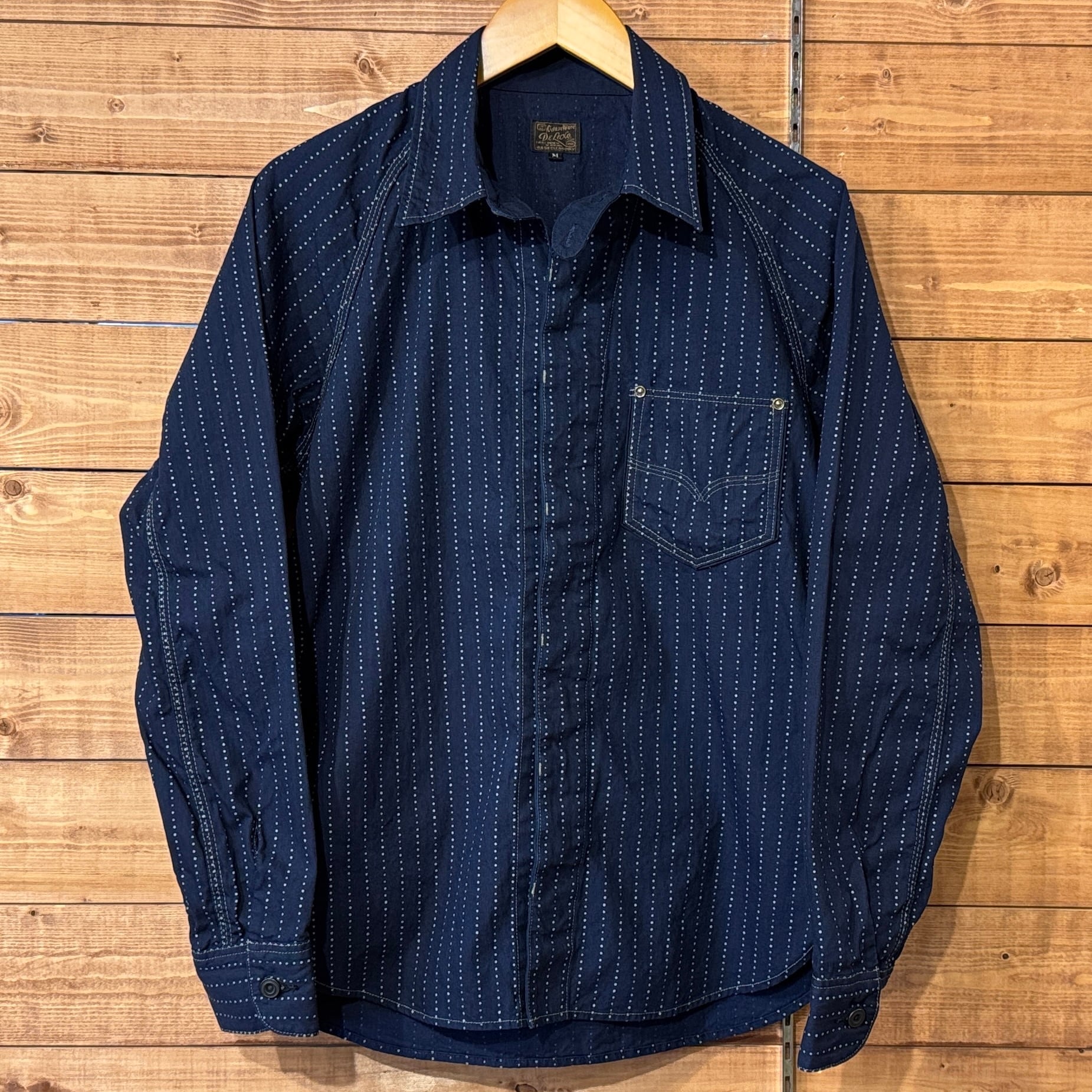 岡山県井原で織り上げたオリジナル9オンスウォバッシュ素材を使用したデラックスウエア人気の7640シャツタイプ。
