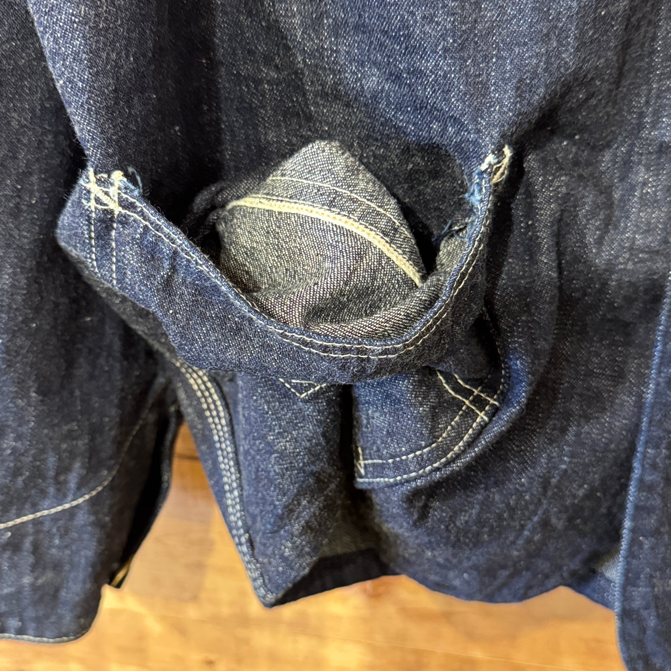 このジャケットは少なくとも20年以上所有しており、常に私のお気に入りのエンジニアです。古いもの、良い生地のもの、そしてもっとクレイジーなディテールのものを持っています。でも、このジャケットの特大で非対称のポケットはいつも私に語りかけてきます。まるで、"マイジャケット"のような感覚です。Ironworkerd Trousersと同様に、このデザインもディテールに現代的な「角張った感じ」があり、私はそれが好きなのです。